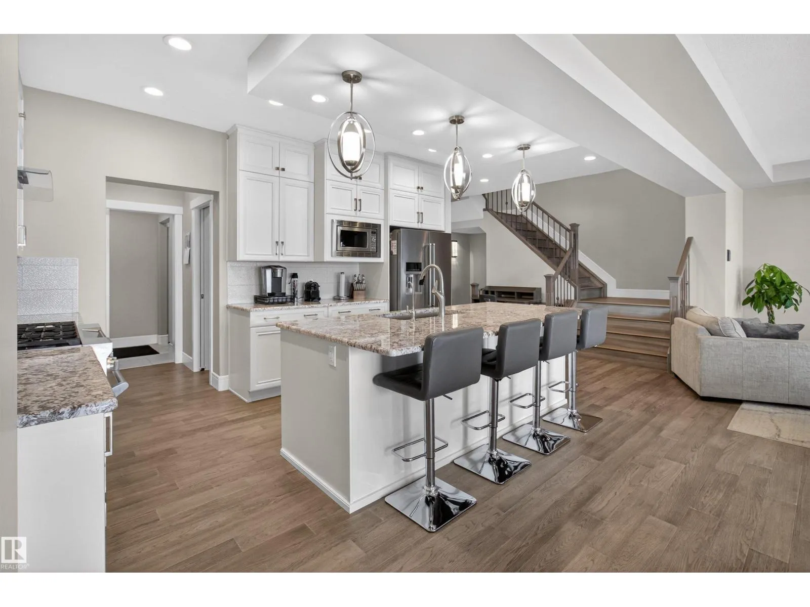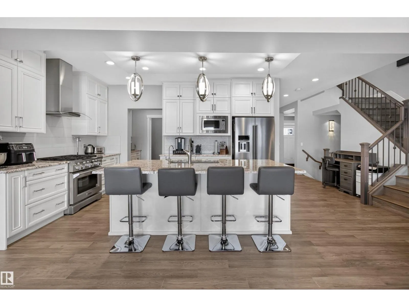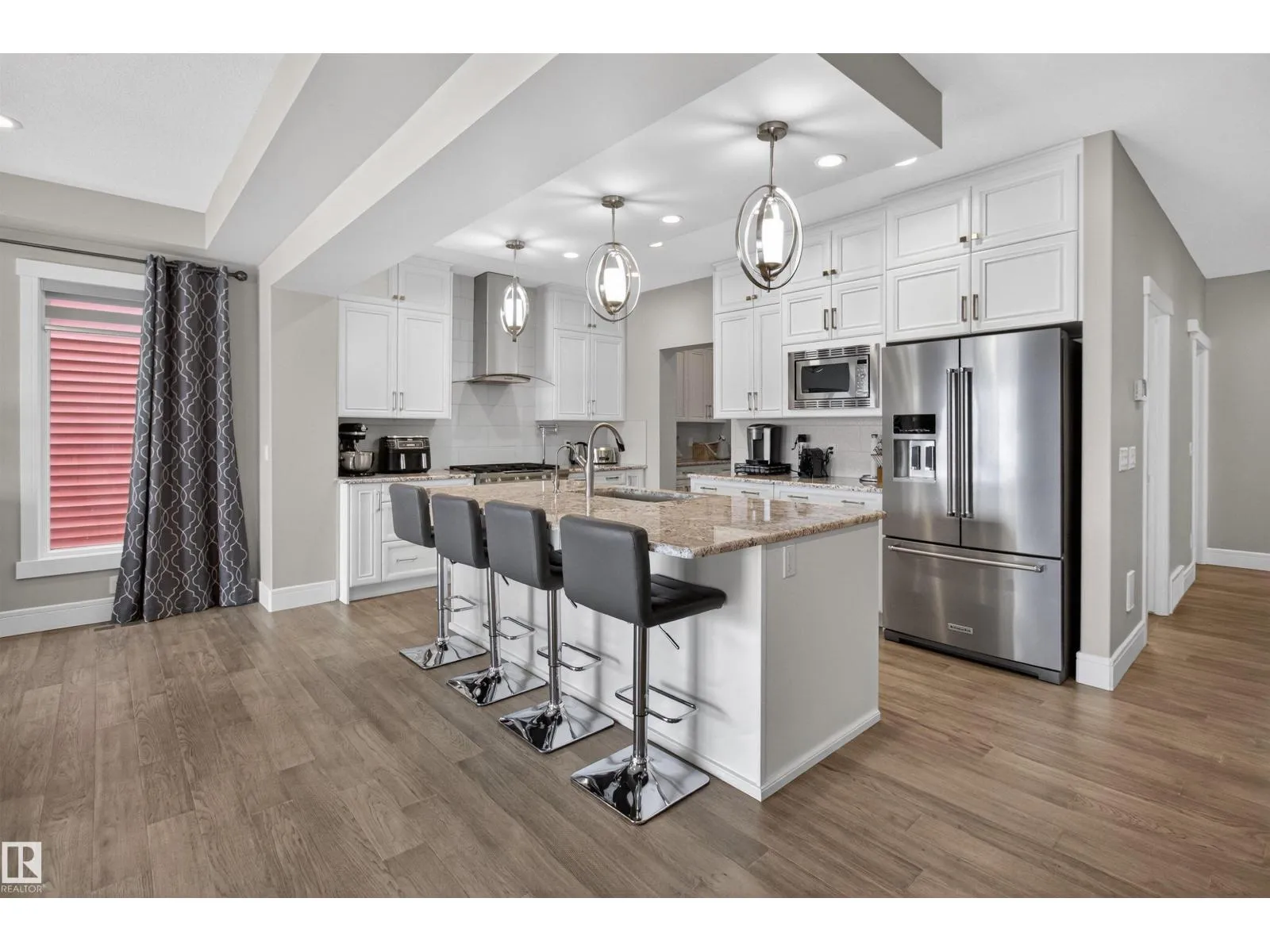 MILLION DOLLAR VIEW! Welcome to this stunning 2 storey home backing onto the lake! Open concept with 2646 square feet plus a fully finished WALKOUT BASEMENT! Gorgeous GOURMET KITCHEN with huge island, pantry, granite countertops, gas stove, and an abundance of beautiful cabinetry. Large living room with gas fireplace and large windows. AWESOME SUNROOM and adjacent deck to enjoy those beautiful views. Upstairs are 3 bedrooms, Bonus room, and laundry area. The Primary Bedroom features a gorgeous 5 piece ensuite with soaker tub, shower, dual sinks, vanity plus 2 walk-in closets. Fabulous basement with massive Rec Room, 4th bedroom, 4 piece bathroom, and utility/storage space. Central A/C, hot water on demand, water softener, reverse osmosis & central vac system. Super low maintenance front & backyard with stone patio & rubber mulch. Double attached HEATED garage. Beautiful curb appeal! Unbeatable location! Close to schools, parks, shopping and more! Visit REALTOR® website for more information. (id:27476)