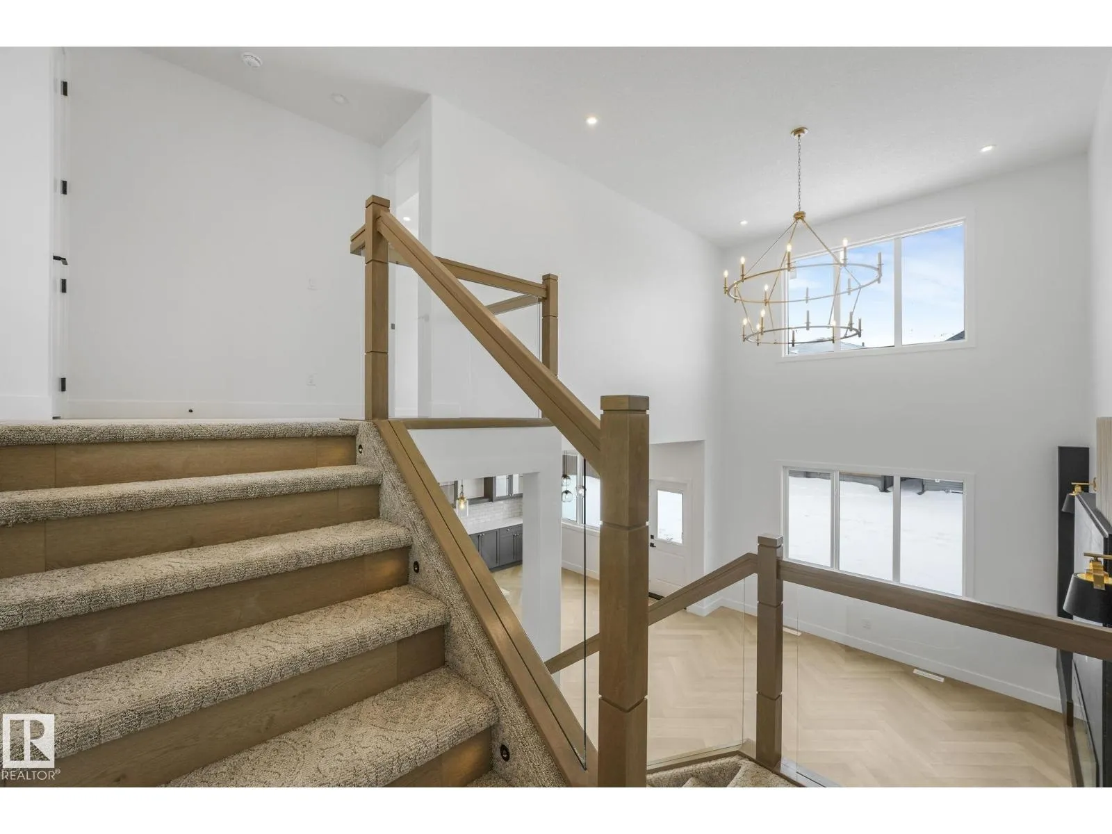 Welcome to this stunning 2,400 sq ft home in CambrianâSherwood Parkâs fastest-growing community. Perfectly situated across from a ravine and park, with walking trails just steps away, this home offers an unbeatable lifestyle location. The bright open-to-below layout floods the space with natural light, while sleek glass railings enhance the modern design. A main floor office or den, full bath, and a convenient side entrance add flexibility and function. The fully upgraded kitchen features quartz countertops and cabinetry finished to the end wall for a seamless, high-end look. Upstairs, enjoy a spacious bonus room ideal for family living. The primary suite is a true retreat, complete with a luxurious 5-piece ensuite. Style, space, and setting all come together beautifully in this home. (id:27476)