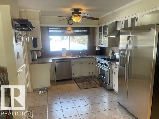 Beautifully upgraded from top to bottom, this exceptional home blends modern finishes with warm inviting spaces - perfect for families, entertainers and anyone seeking room to spread out. The open concept main floor features durable tile flooring throughout, anchored by a stunning great room with a cozy wood stove and seamless flow into the dining and kitchen areas. The chef -inspired kitchen stands out with its Blue Star gas range, ample cabinetry and generous work space. 3 bedrooms are located o n main level including a bright primary suite with a 2 piece ensuite. The upgraded 4 piece main bathroom completes this level. Downstairs the fully developed area offers a massive family room, dedicated games room, spacious laundry area and a 3 piece bathroom create flexibility for recreation and guests. A huge bedroom provides privacy and comfort. Home is set on a huge pie lot, beautifully landscaped, two tiered deck, two gazaebos, firepit, hot tub, an oasis. Garage 22 x 25, heated, Loads of parking (id:27476)