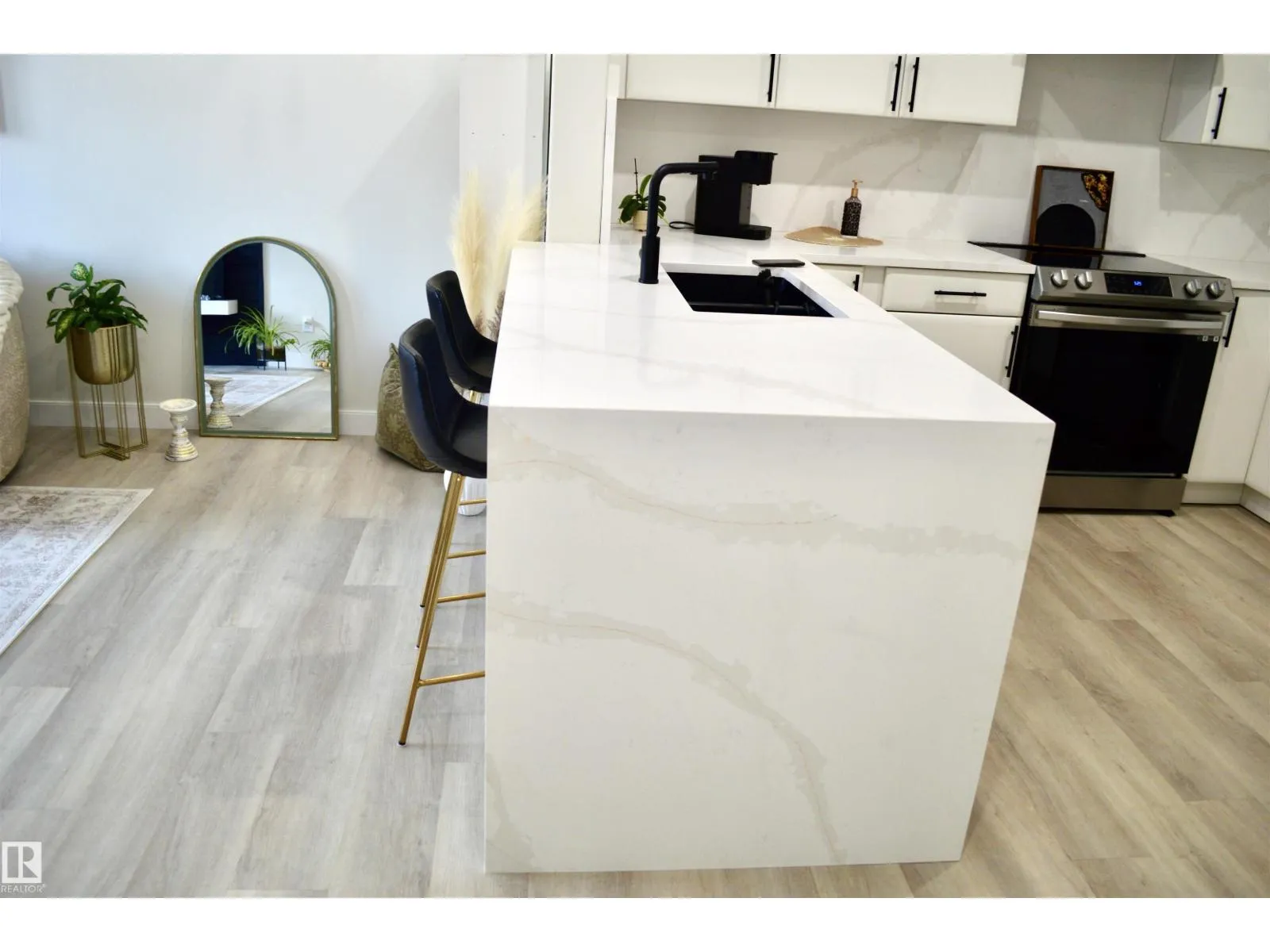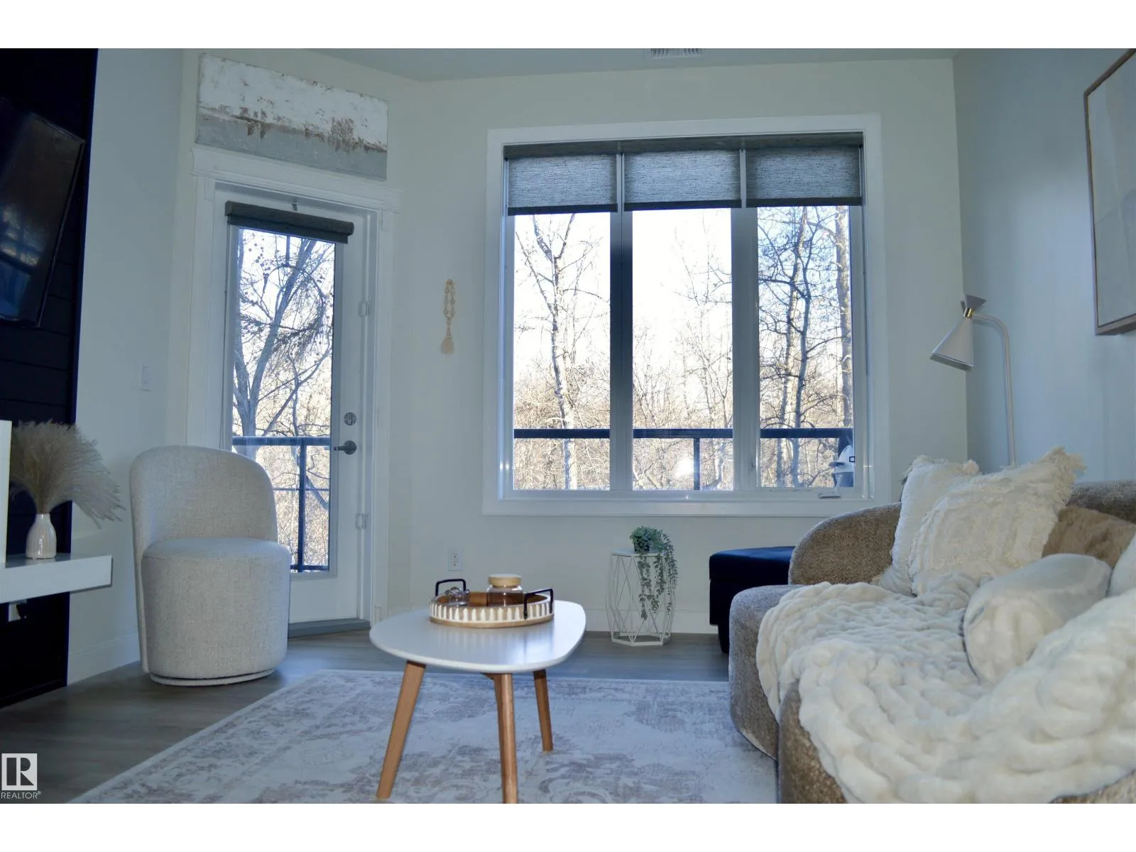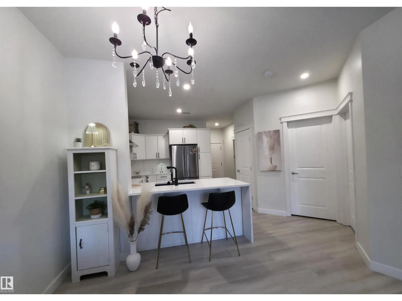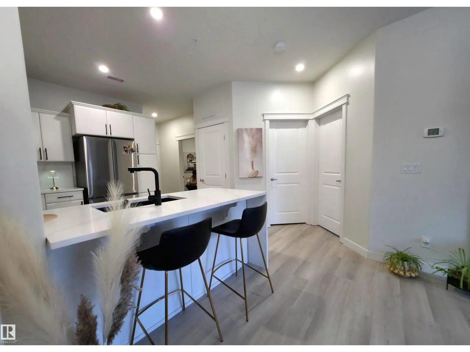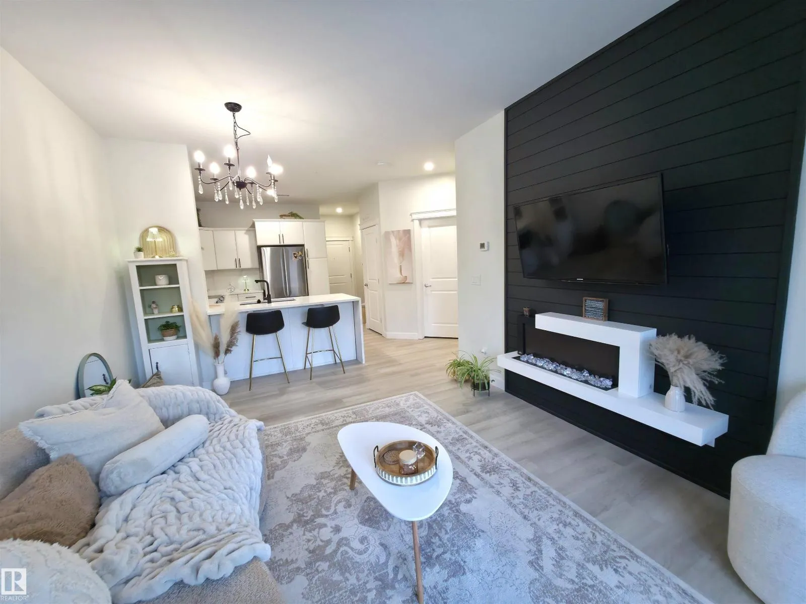 TASTEFULLY RENOVATED, 9' FT CEILING CONDO IN SUMMERWOOD AREA, Where modern living meets a unique natural setting. This beautifully 1-bedroom + den condo backs directly onto walking trails and a tranquil urban forest, offering privacy and scenic views. Step inside to a bright, open-concept layout filled with natural light. The kitchen features quartz countertops, a waterfall island, sleek cabinetry and updated stainless steel appliances. The spacious living area is anchored by a electric fireplace and access to a private balcony where you can relax and enjoy the sounds of nature, including birds and surrounding wildlife. The versatile den is ideal for a home office, guest, or extra storage. Upgrades: vinyl plank flooring, fresh paint, new appliances and modern finishes throughout. Enjoy the comfort of A/C, in-suite laundry, a titled heated underground parking + outdoor stall. Perfect for retirees, professionals, first time buyers or anyone looking for peaceful, low-maintenance and convenient lifestyle. (id:27476)