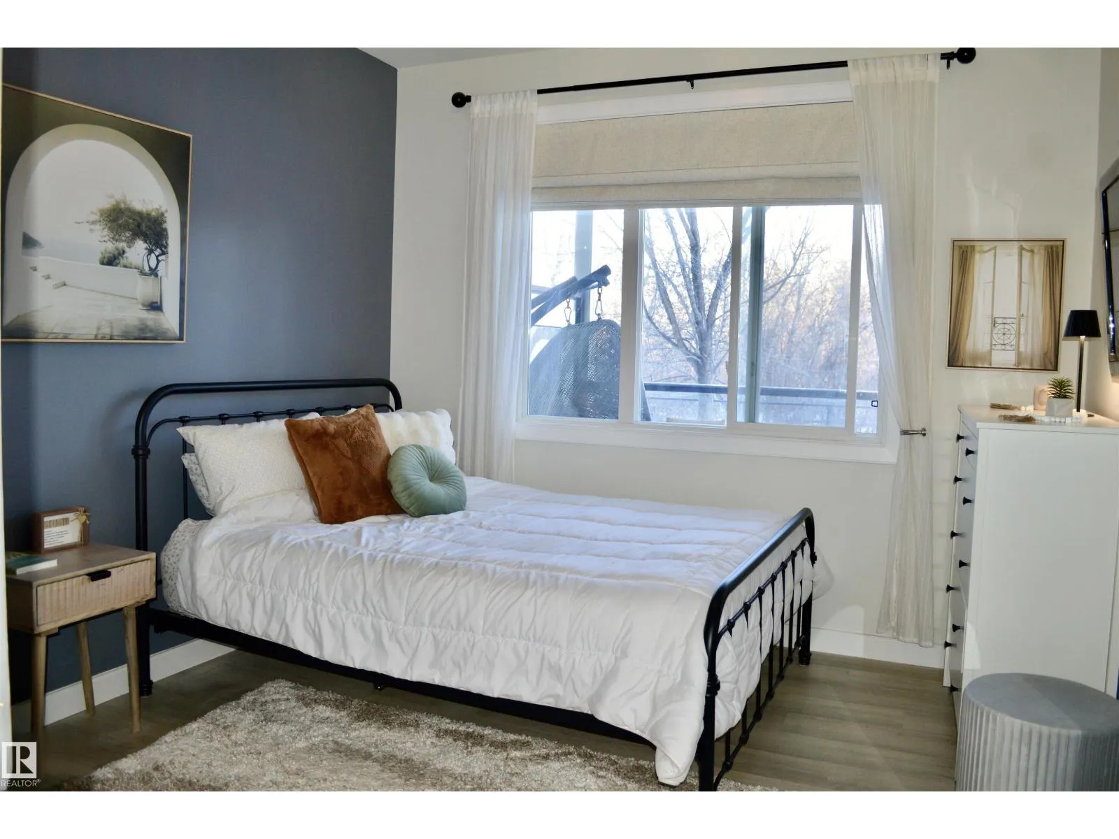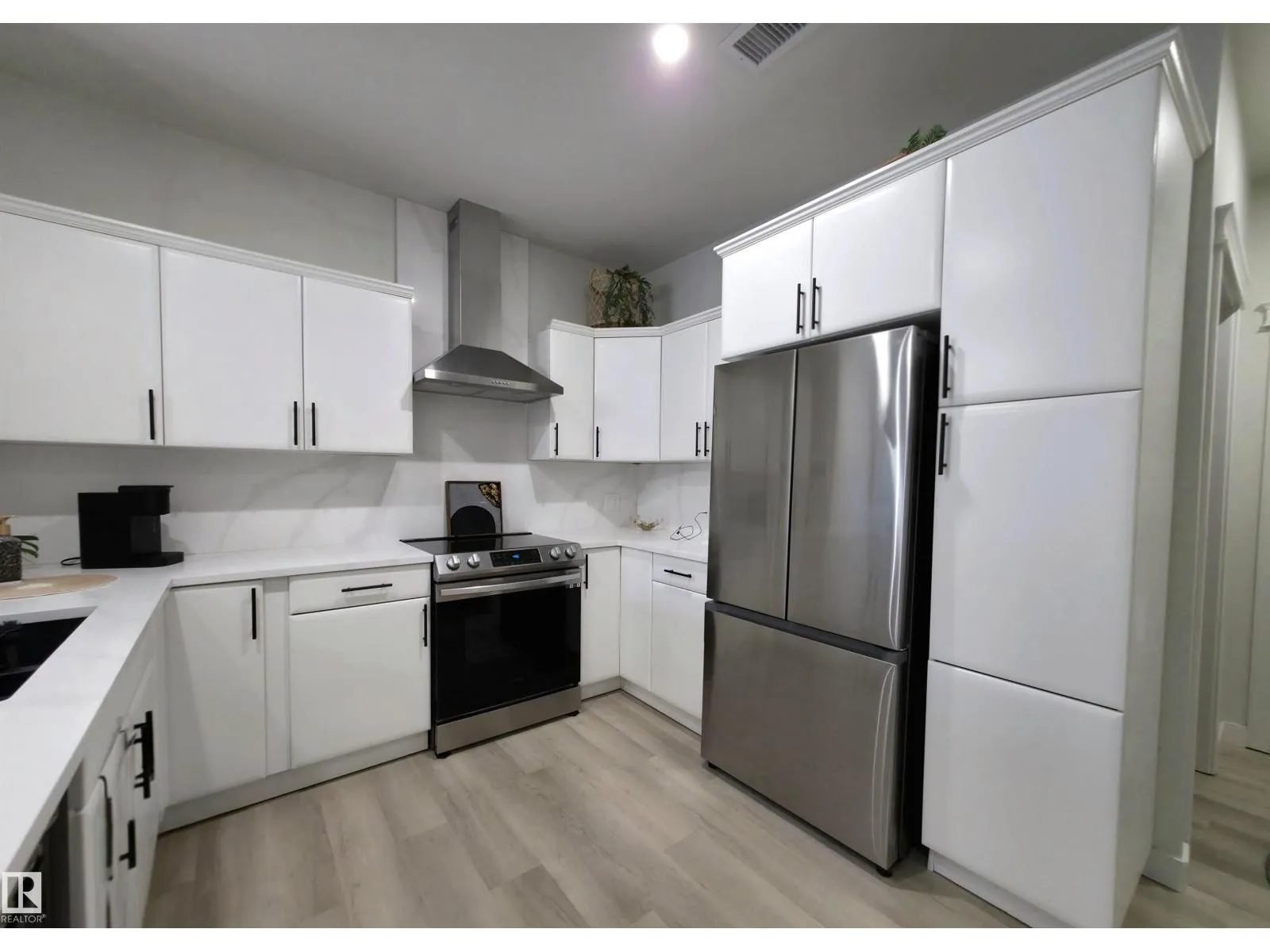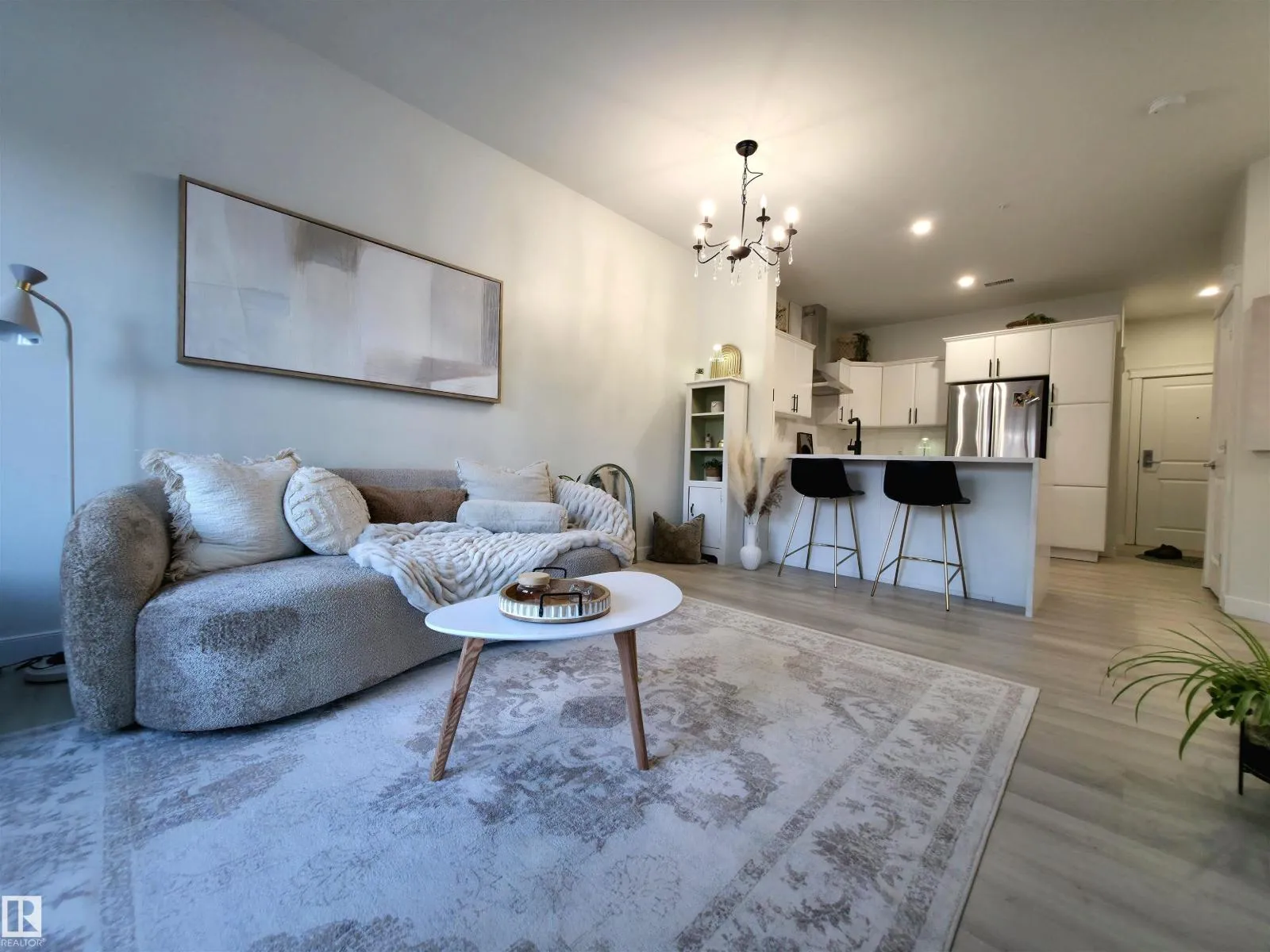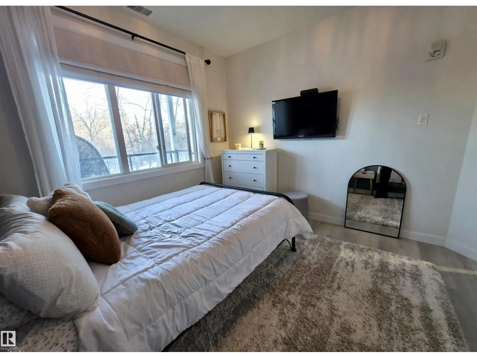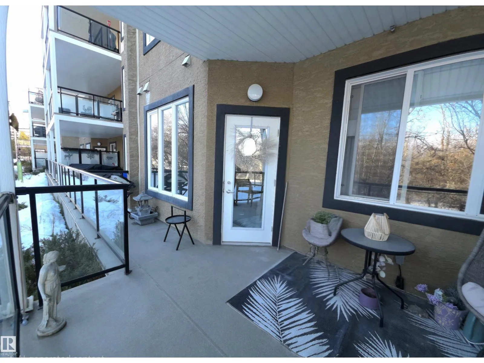 TASTEFULLY RENOVATED, 9' FT CEILING CONDO IN SUMMERWOOD AREA, Where modern living meets a unique natural setting. This beautifully 1-bedroom + den condo backs directly onto walking trails and a tranquil urban forest, offering privacy and scenic views. Step inside to a bright, open-concept layout filled with natural light. The kitchen features quartz countertops, a waterfall island, sleek cabinetry and updated stainless steel appliances. The spacious living area is anchored by a electric fireplace and access to a private balcony where you can relax and enjoy the sounds of nature, including birds and surrounding wildlife. The versatile den is ideal for a home office, guest, or extra storage. Upgrades: vinyl plank flooring, fresh paint, new appliances and modern finishes throughout. Enjoy the comfort of A/C, in-suite laundry, a titled heated underground parking + outdoor stall. Perfect for retirees, professionals, first time buyers or anyone looking for peaceful, low-maintenance and convenient lifestyle. (id:27476)