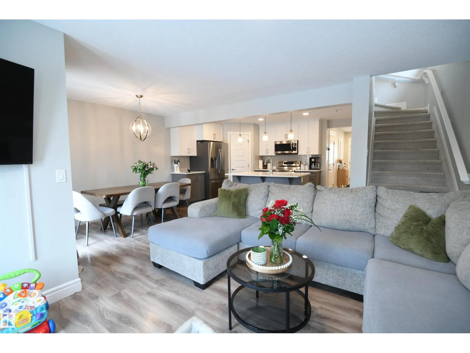 This stunning Rohit home is ready and waiting for you, with immediate possession available. Fully open main floor layout with great natural light thanks to ample tall windows and patio doors to the private rear yard and deck. The heart of the home is the stunning island kitchen with casual seating at the breakfast bar, a huge corner pantry, quartz counter tops, and a great stainless appliance package. A family sized dining table area is conveniently set steps out of the kitchen. 3 great bedrooms plus a bonus / flex room on the second level. The master suite enjoys a full 4 piece ensuite, walk in closet, and easily supports king sized furniture. Generously sized 2nd and 3rd bedrooms are found at the front of the house, also with great natural light. Fully insulated and drywalled attached garage with a full length driveway is great for an active family, and all of their toys. Tall, 8 foot basement ceiling height. Truly, this is a home that is a pleasure to spend time in, and is move in ready. (id:27476)