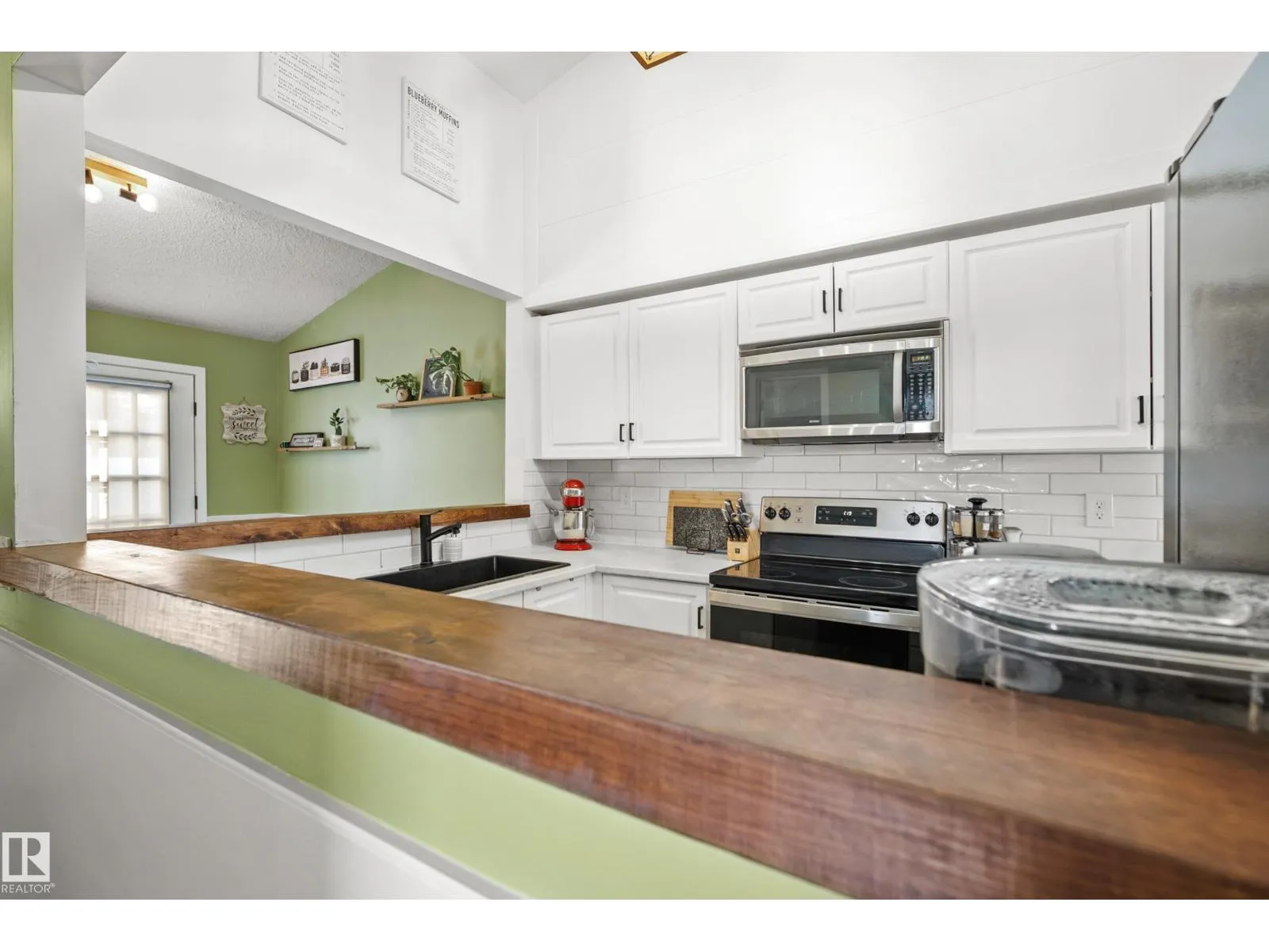 Beautifully updated END UNIT condo in the heart of Sherwood Parkâs sought-after Summa Glen complex. This bright and welcoming home features 2 bedrooms and 1.5 baths with a spacious open design and stylish updates throughout. The modernized kitchen showcases crisp white cabinetry, stainless steel appliances, updated counters and subway tile backsplash, all overlooking the dining area and living space. The family sized living room offers vaulted ceilings, large windows for incredible natural light, a cozy fireplace feature wall, and access to a very private patio. The lower level features a generous primary bedroom with patio access, a second bedroom and a 4-piece bathroom. Additional upgrades include updated flooring, refreshed paint tones, all appliances including washer & dryer. Enjoy the convenience of 2 parking stalls directly out front plus an unbeatable location just steps from Broadmoor Park, Festival Place, the library, trails and Sherwood Park Mall. (id:27476)