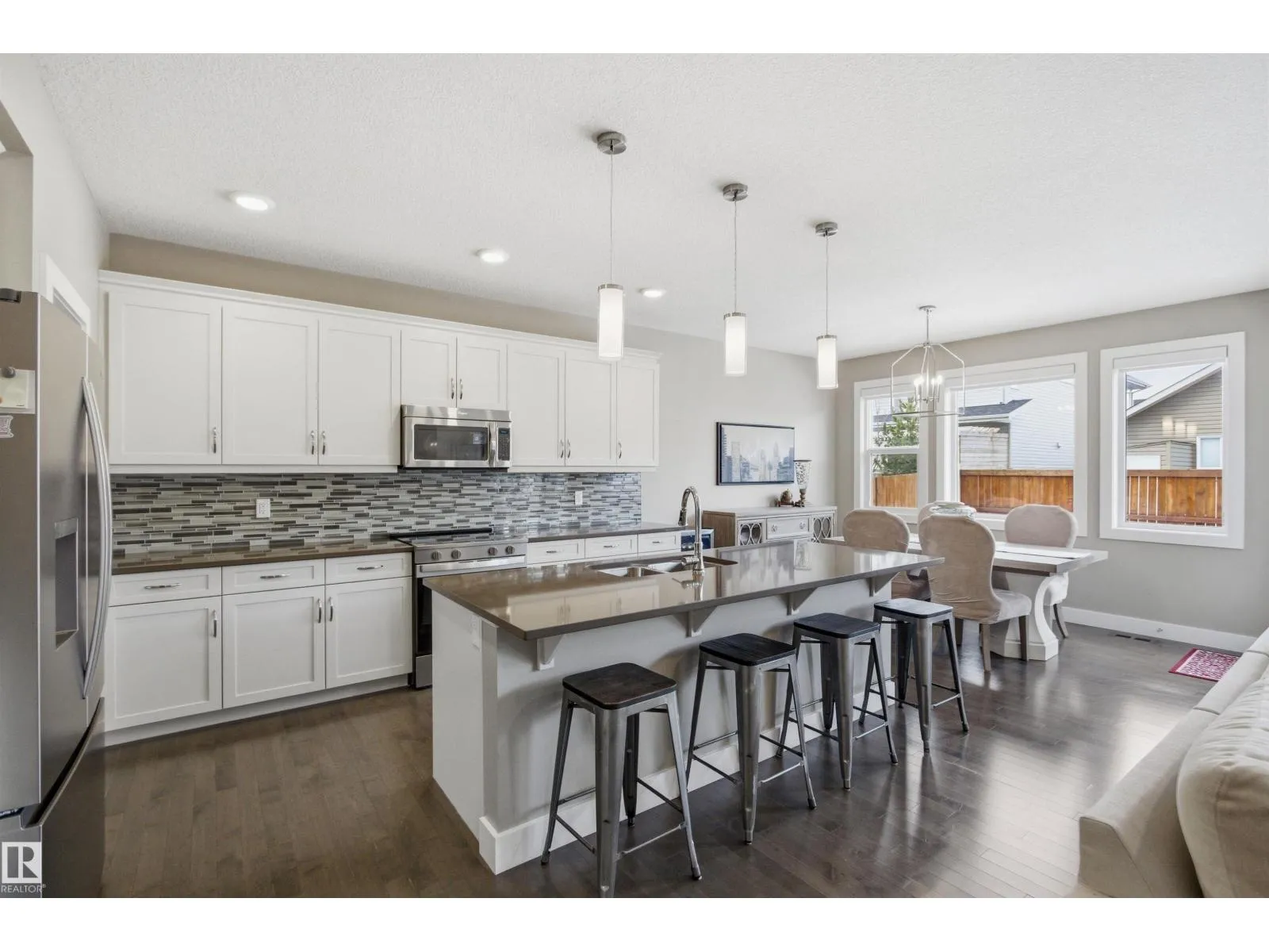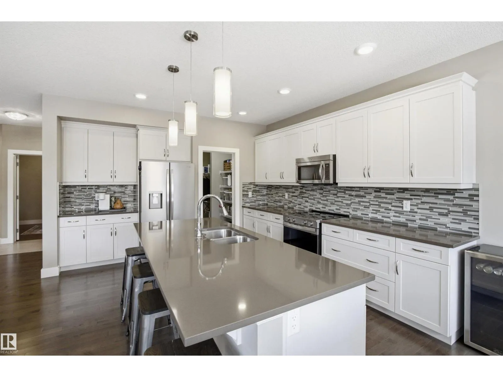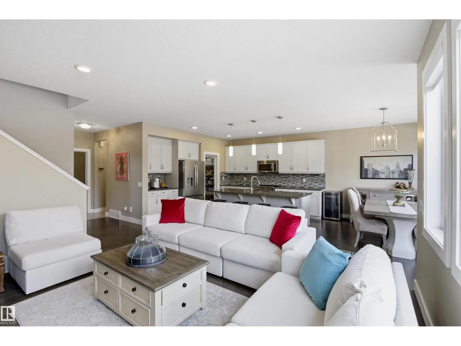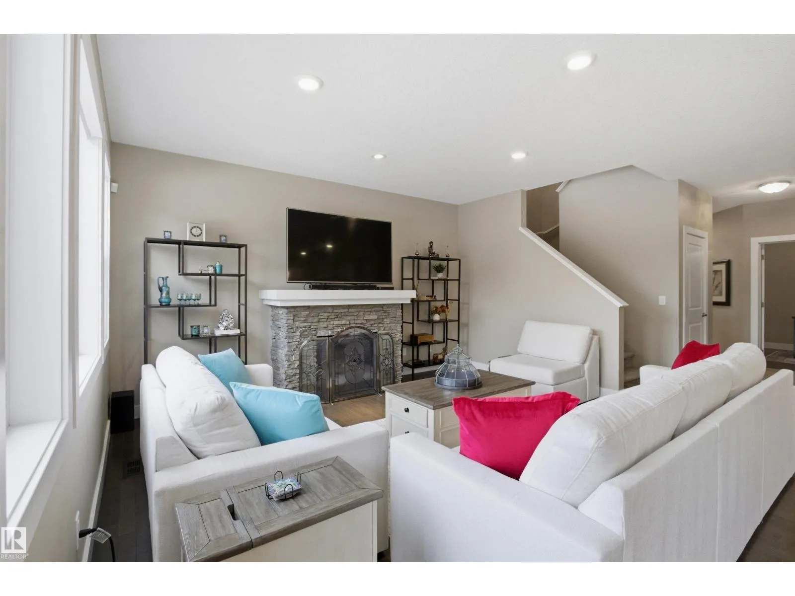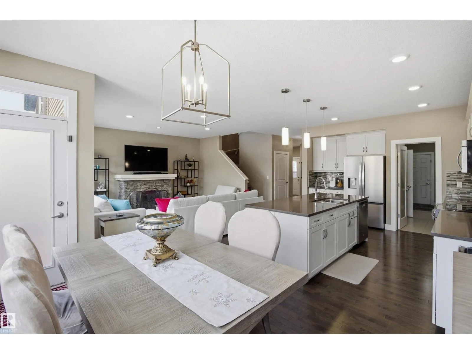 This exceptional family home delivers the perfect blend of style, space, and upscale comfort. The gourmet kitchen is a chefâs dream with white cabinetry, quartz countertops, a large island with breakfast bar, NEW stainless steel appliances, and a walk-through pantry with direct garage access. The main floor features a bright dining area with deck access, an inviting living room with stone-faced gas fireplace, private den, powder room, and mudroom off the double attached heated garage. Upstairs offers a spacious bonus room, laundry, full bath, and three bedrooms. The luxurious primary suite impresses with two walk-in closets and a spa-inspired 5-pc ensuite with dual vanities, makeup station, soaker tub, and separate shower. The fully finished basement adds two more bedrooms, a large rec room, storage, and a 4-pc bath with heated floors. Additional upgrades: NEW light fixtures, air conditioning, hardwood and tile flooring, built-in vacuum, and updated blinds â an ideal home for growing families (id:27476)