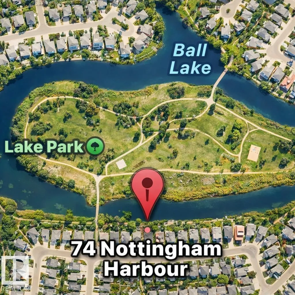 Welcome to this beautiful 2-storey home located in the highly sought-after community of Nottingham in Sherwood Park. Built in 2002 and offering over 2,100 sq ft above grade, this 3 bedroom, 2.5 bathroom home features a functional layout perfect for families and entertaining. The main floor includes a bright living room, dining area, spacious kitchen with Hunter Douglas Blinds, cozy family room, and convenient flex room. Upstairs youâll find a generous primary bedroom with ensuite, walk-in closet, along with two additional bedrooms and full bath. The unfinished basement provides excellent potential for future development. Enjoy the landscaped yard, deck, and patio backing onto a peaceful setting with PARK AND LAKE ACCESS. A rare opportunity to own a home that offers a WALK-OUT ONTO BALL LAKE, allowing you to enjoy scenic views and nearby walking paths year-round. Additional features include forced air heating, attached garage, and convenient access to schools, parks, playgrounds, and shopping. (id:27476)