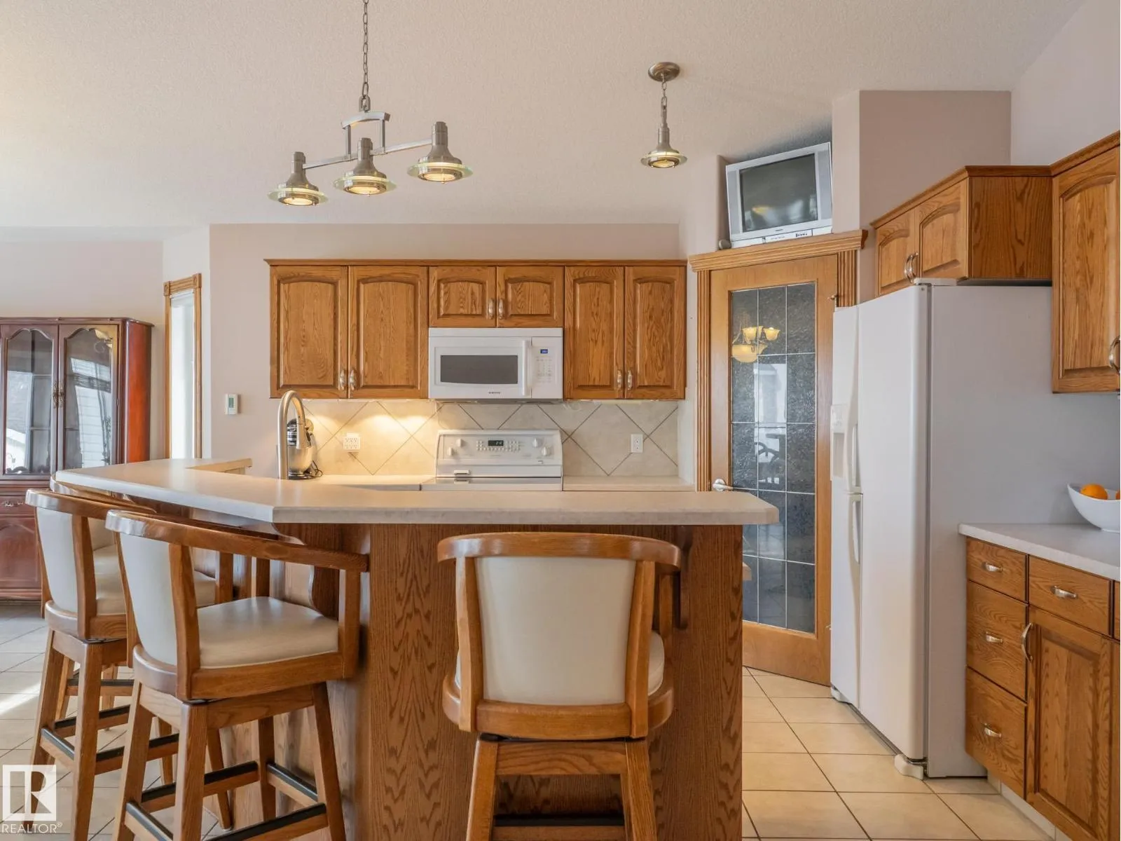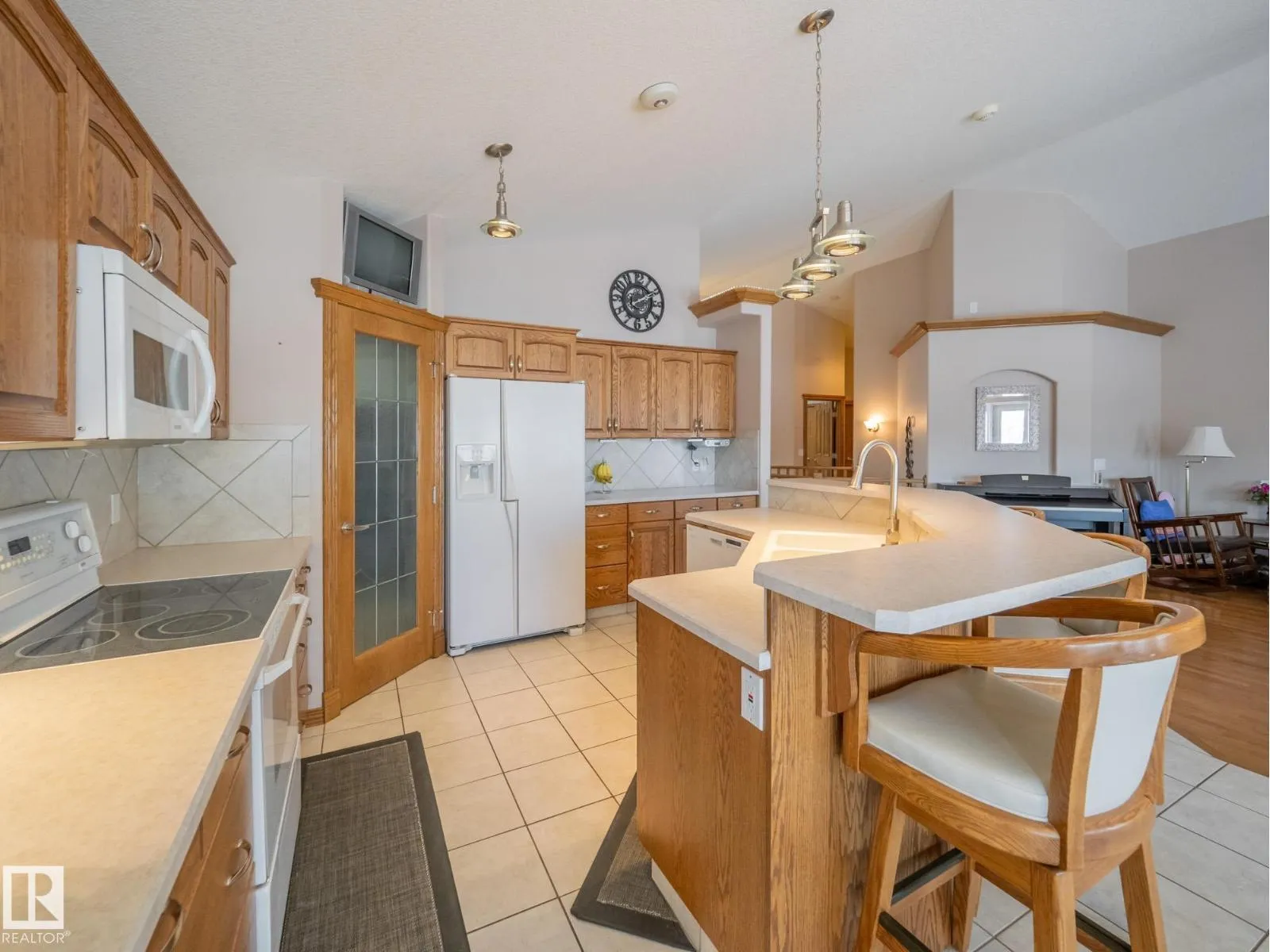 Everything in this home tells you how much it is loved and cared for! This large unique bungalow features AC, HEATED OVERSIZED GARAGE, 3 BDRMS, 3.5 BATHS AND SO MUCH MORE! You'll love the vaulted ceiling throughout the main floor and 9' ceilings in basement! The kitchen features plenty of cabinets and counter space, a HUGE WALKIN Pantry and the island overlooks the dining room and living room with cozy fireplace as well as overlooking the back yard. The king size primary suite is massive with walk in closet and 4 piece bathroom with soaker tub and separate shower. With 2 more spacious bedrooms with one having a cheater door to the other 4 piece bath and don't forget the guest bath, this house has it all! Downstairs there is a spacious family and rec room with wet bar and 2 huge bedrooms with tons of storage. Enjoy this fenced and and landscaped yard with maintenance free deck and fencing and irrigation. ALL STEPS AWAY FROM THE WETLANDS, PARKS AND SCHOOLS! (id:27476)