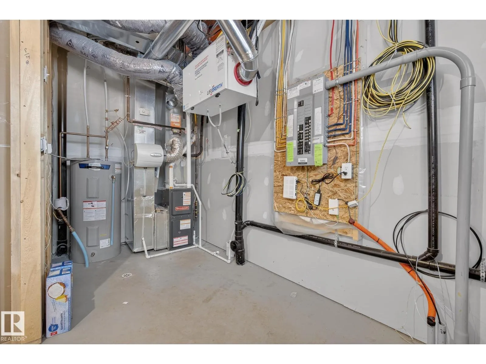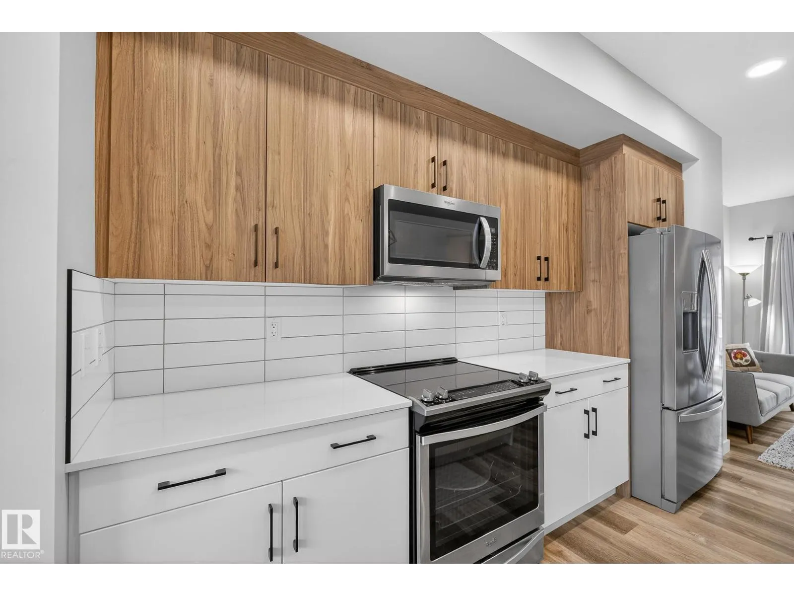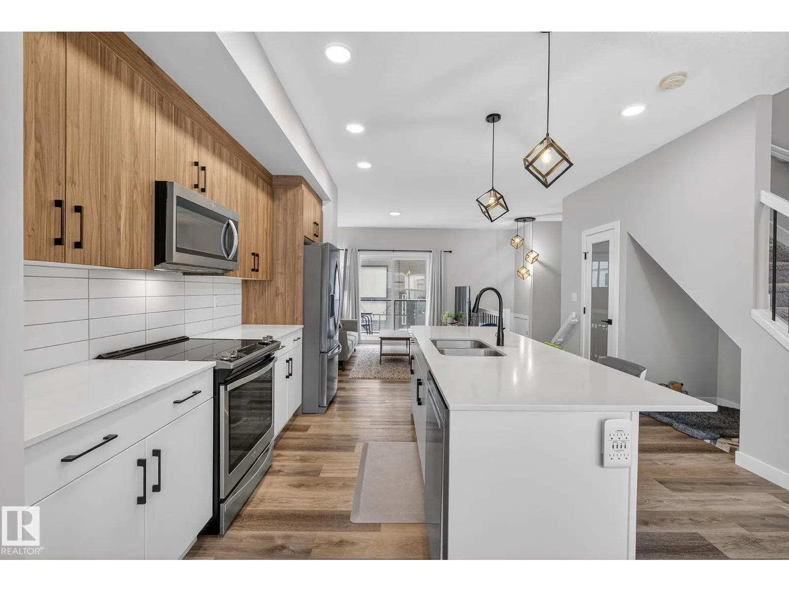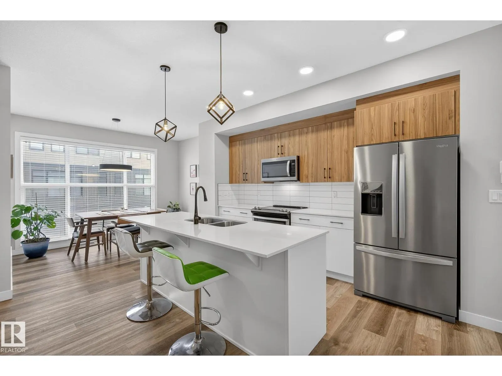 Modern and stylish townhome located in the highly desirable community of Emerald Hills, offering the perfect blend of comfort, functionality, and convenience. This bright and inviting home features a double attached garage plus an additional assigned parking stall, ideal for families or guests. Inside, youâll find sleek contemporary finishes, durable laminate flooring, and a beautifully designed kitchen complete with quartz countertops, stainless steel appliances, and ample cabinetry. Large windows throughout the open-concept main floor fill the space with natural light, while a convenient half bathroom completes this level. Upstairs offers 2 spacious bedrooms, a versatile bonus room perfect for a home office or flex space, 2 full bathrooms, and the added convenience of upper-level laundry. Central air conditioning ensures year-round comfort, and additional basement storage provides practical extra space. Located just minutes from Emerald Hills shopping, dining, transit, parks, and schools. (id:27476)