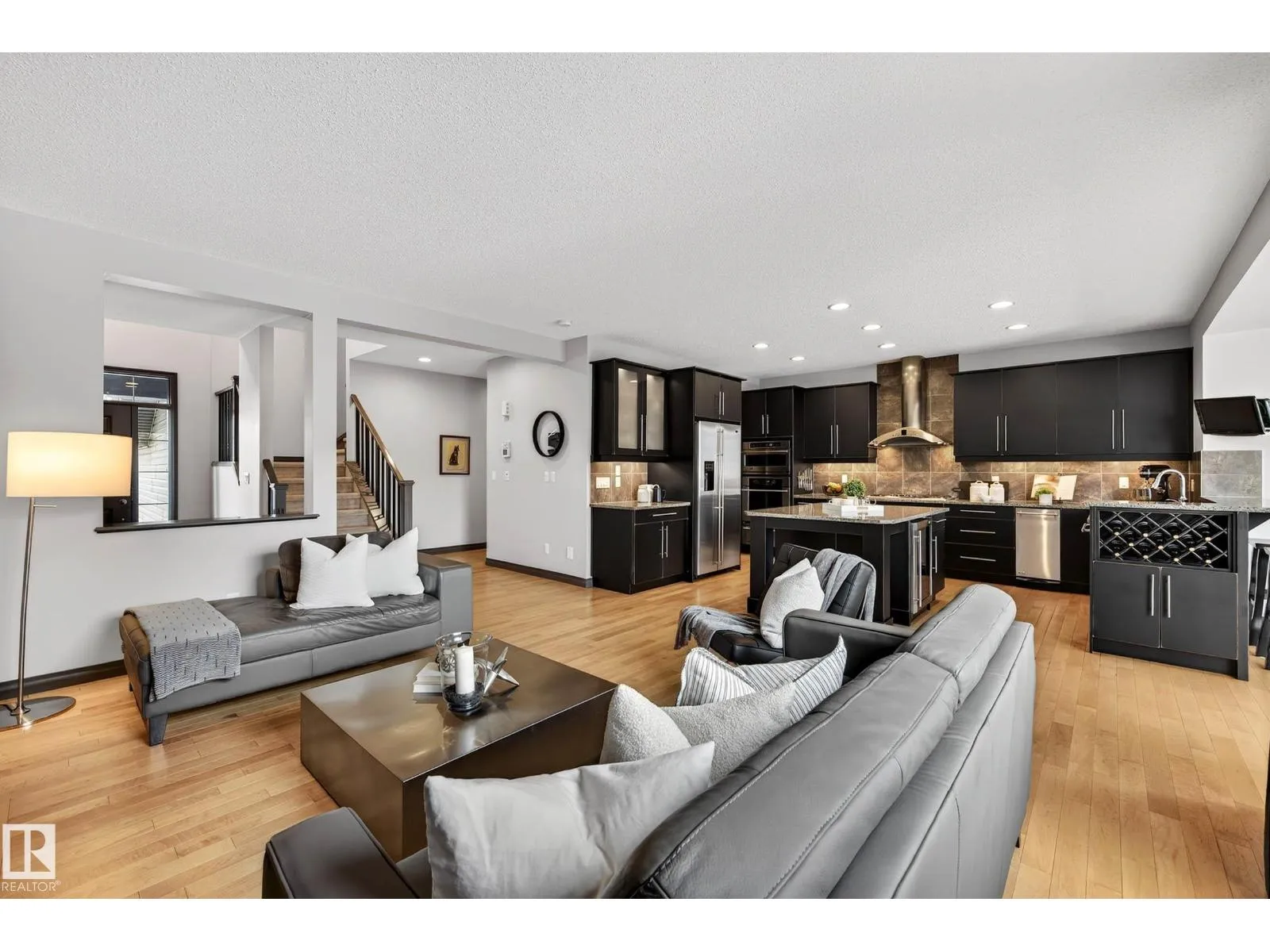 STUNNING 2 storey home, meticulously maintained in sought-after Summerwood sits quietly in a cul-de-sac steps from parks, trails, schools & shopping. Open-concept main floor is enhanced w/engineered hardwood & spacious dining area overlooking a private west-facing backyard. Great Room invites you to unwind by cozy gas F/P, while added main floor storage keeps everything organized. Showpiece kitchen is designed for both everyday living & effortless entertaining. Rich tones & elevated finishes set the stage, highlighted by quartz island w/beverage fridge, built-in wine storage, perfect for morning coffee rituals or evening espresso martinis. Chef-inspired space features a gas cooktop, built-in oven/microwave & sleek cabinetry that blends style w/function. Upstairs, enjoy a sunken bonus room & convenience of upper-level laundry. Primary suite is a true retreat w/elegant 4pc ensuite. Two addâl bdrms offer dble-door closets & 4pc bath. Mint condition delivers blend of comfort, style & location. Furnace 2023. (id:27476)