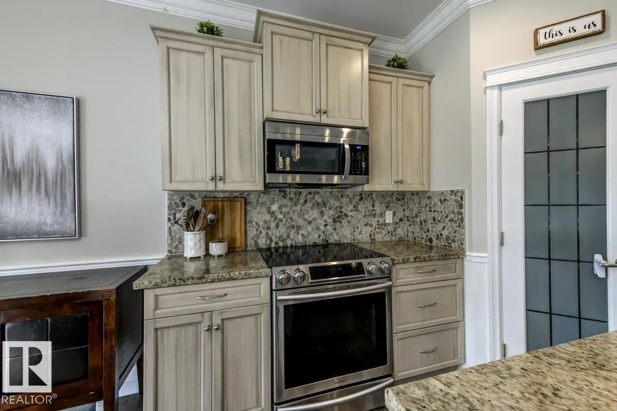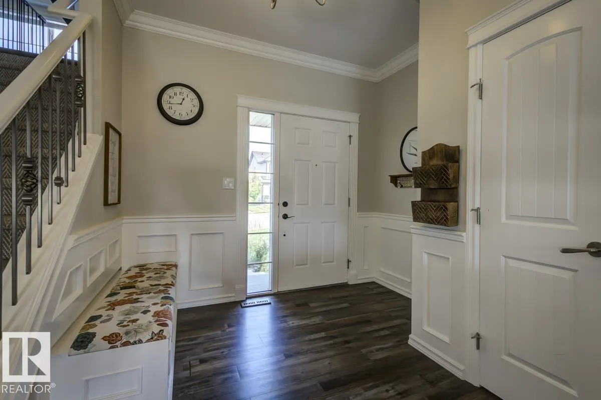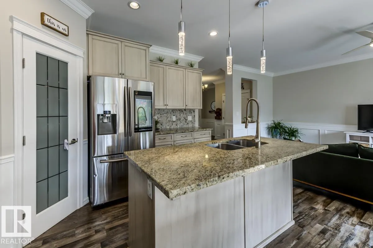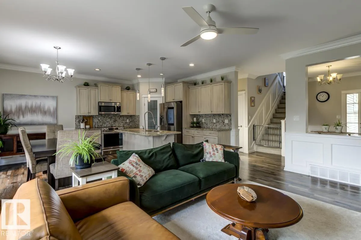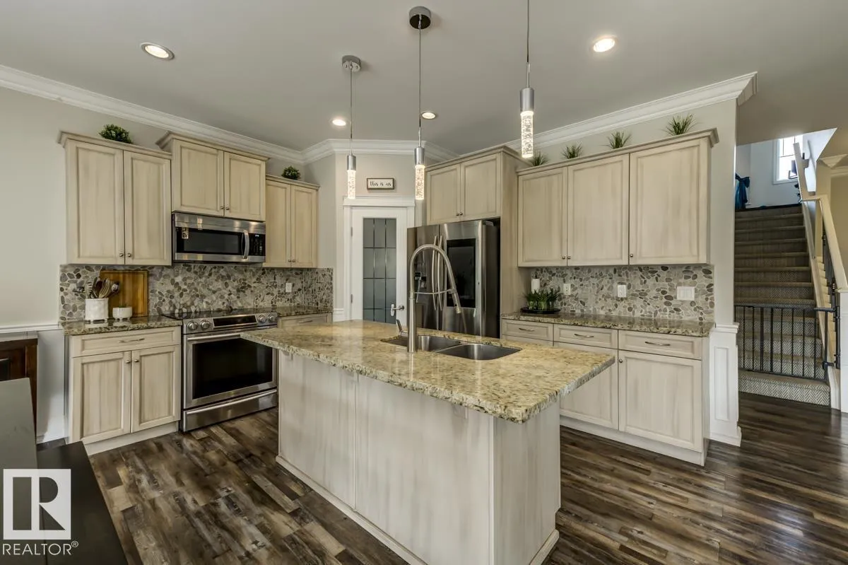 Welcome to Lakeland Ridge! This stunning Landmark-built 2,030 sqft 2-storey is the perfect blend of modern style, comfort, and functionalityâbacking directly onto a serene walking trail. From the moment you step into the bright foyer with soaring 9â ceilings, youâll feel right at home. The gourmet kitchen is a showstopper w/ granite countertops, stainless steel appliances, a large island, & an inviting dining area. The sunlit living room flows seamlessly to a maintenance-free deck & sunny south-facing backyard, ideal for entertaining. A powder room & smart laundry/mudroom complete the main floor. Upstairs, enjoy a spacious bonus rm w/a cozy gas fireplace, 4 bdrms, a sleek 4pc bath, & a luxurious primary retreat with spa-inspired 5pc ensuite & walk-in closet. The fully finished basement offers even more living space with a rec room, 5th bdrm, & 3pc bath. A heated, finished dbl garage tops off this move-in ready gem. This is your chance to own a beautifully finished home in a a prime locationâdonât miss it! (id:27476)