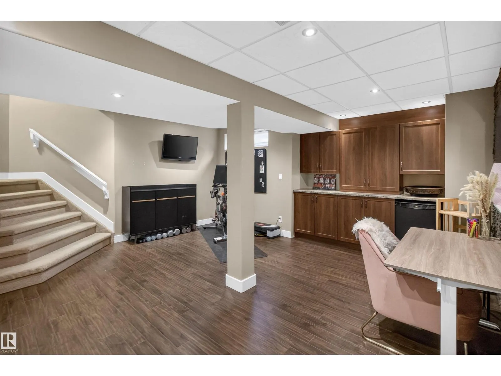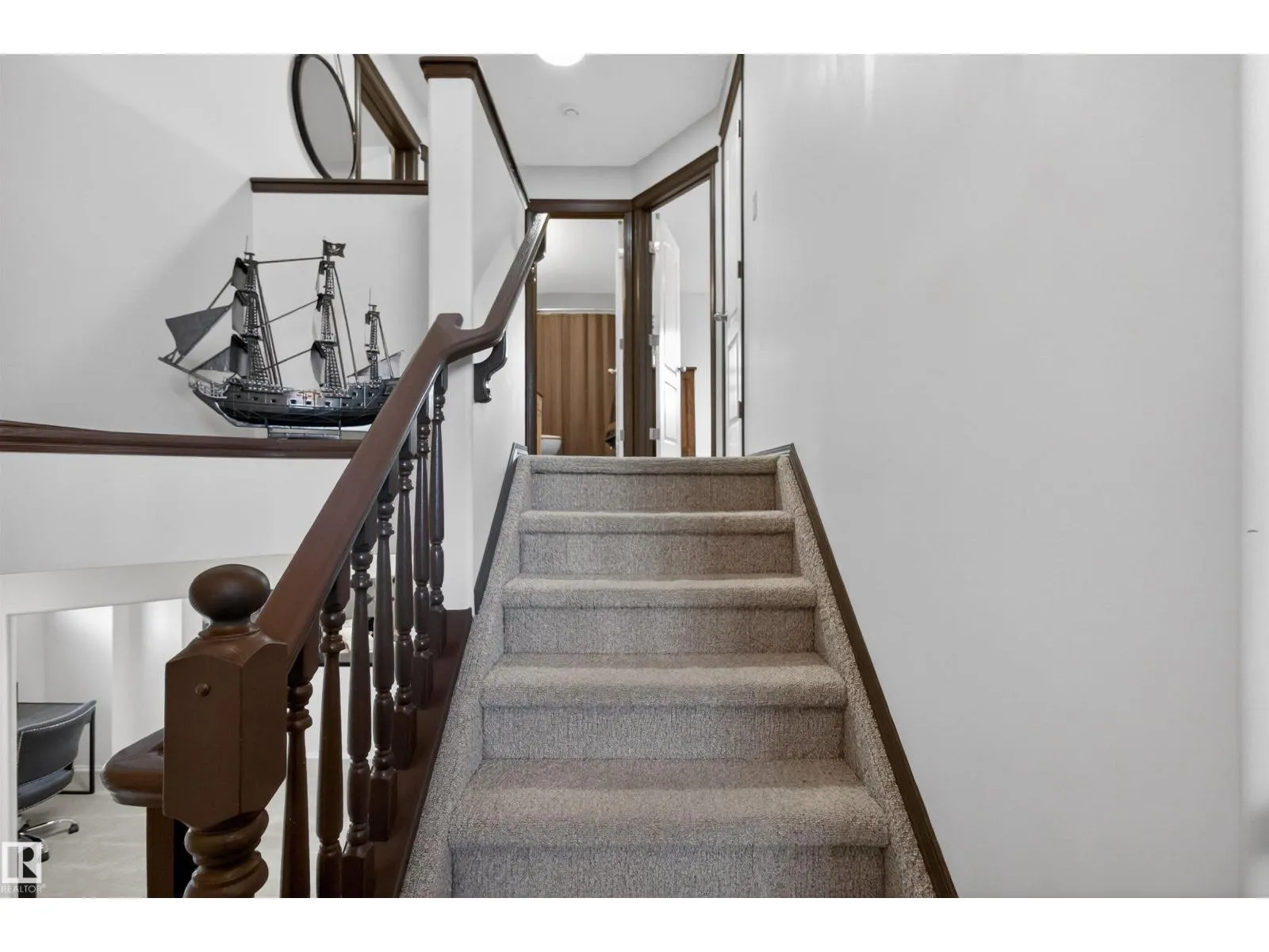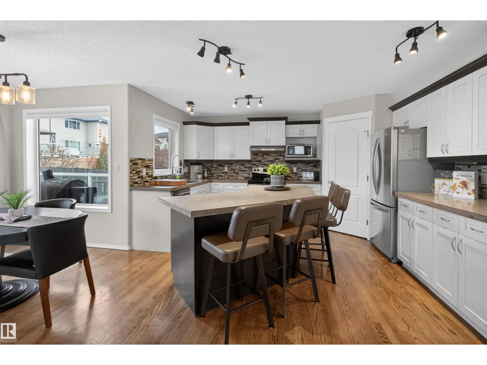 Welcome to the family favourite community of Clarkdale! This warm & beautiful 2100 sq ft 2-storey home is situated on a quiet cul-de-sac right next to Clarkdale Meadows Pond. The main floor features a bright living area and a den/office, offering space for the whole family. You will love the open-concept kitchen with SS appliances and concrete countertops, connecting to the eating nook and living room with convenient access to the large backyard. A 2-pc bath completes the main level. The upper floor offers a large bonus room with vaulted ceilings, two good-sized bedrooms, and a 4-pc main bath. The primary bedroom includes a WIC, 5-pc ensuite with a soaker tub and separate walk-in shower. The fully developed basement adds a rec room with bar, 4th bedroom, and 4-pc bath. Enjoy a heated attached garage and low-maintenance yard with durable decking and interlocking patio. (id:27476)