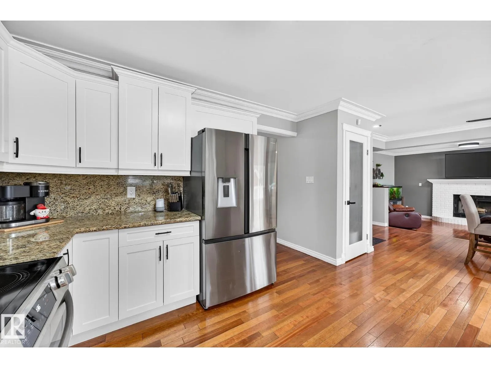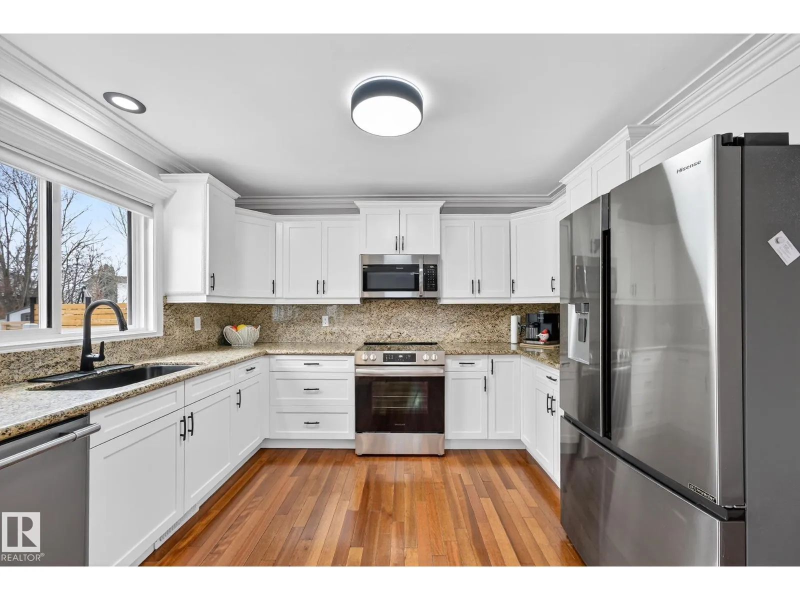 Beautifully updated 2-storey in the highly desirable community of Nottingham in Sherwood Park, offering 5 bedrooms & 3.5 bathroomsâperfect for growing families. Extensively upgraded, this home features new windows & doors, new front siding & garage door, upgraded plumbing & electrical, new hot water tank, fresh paint, modern lighting w/updated fixtures throughout. The renovated kitchen showcases soft-close cabinetry, new appliances w/a functional layout ideal for everyday living & entertaining. The main floor offers a spacious living area, formal dining room & a warm inviting family room complete with a cozy wood-burning fireplace. Upstairs features generous bedrooms including a primary retreat, while the fully finished basement adds additional living space & bedroom. Enjoy the oversized backyard with large deck, perfect for outdoor gatherings, along w/the convenience of a double attached garage. Located close to parks, schools & amenities, this home combines quality updates, space and a prime location. (id:27476)