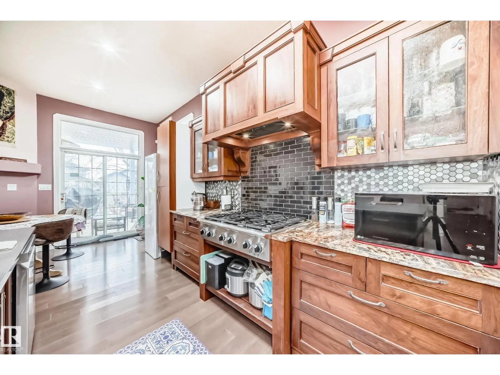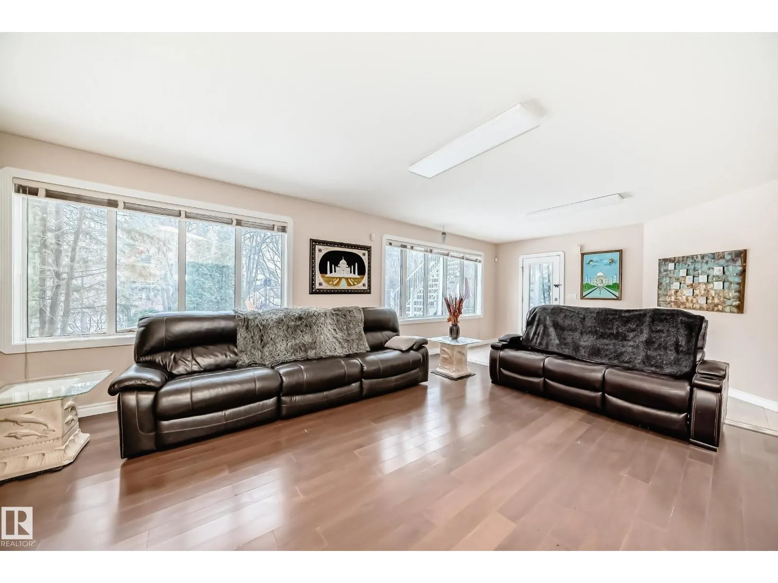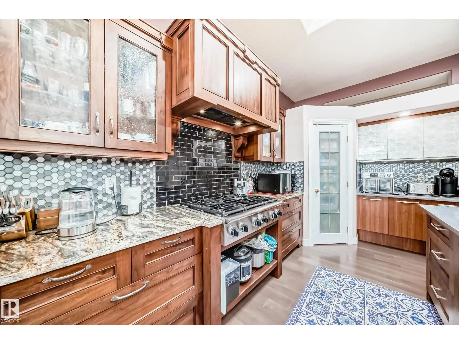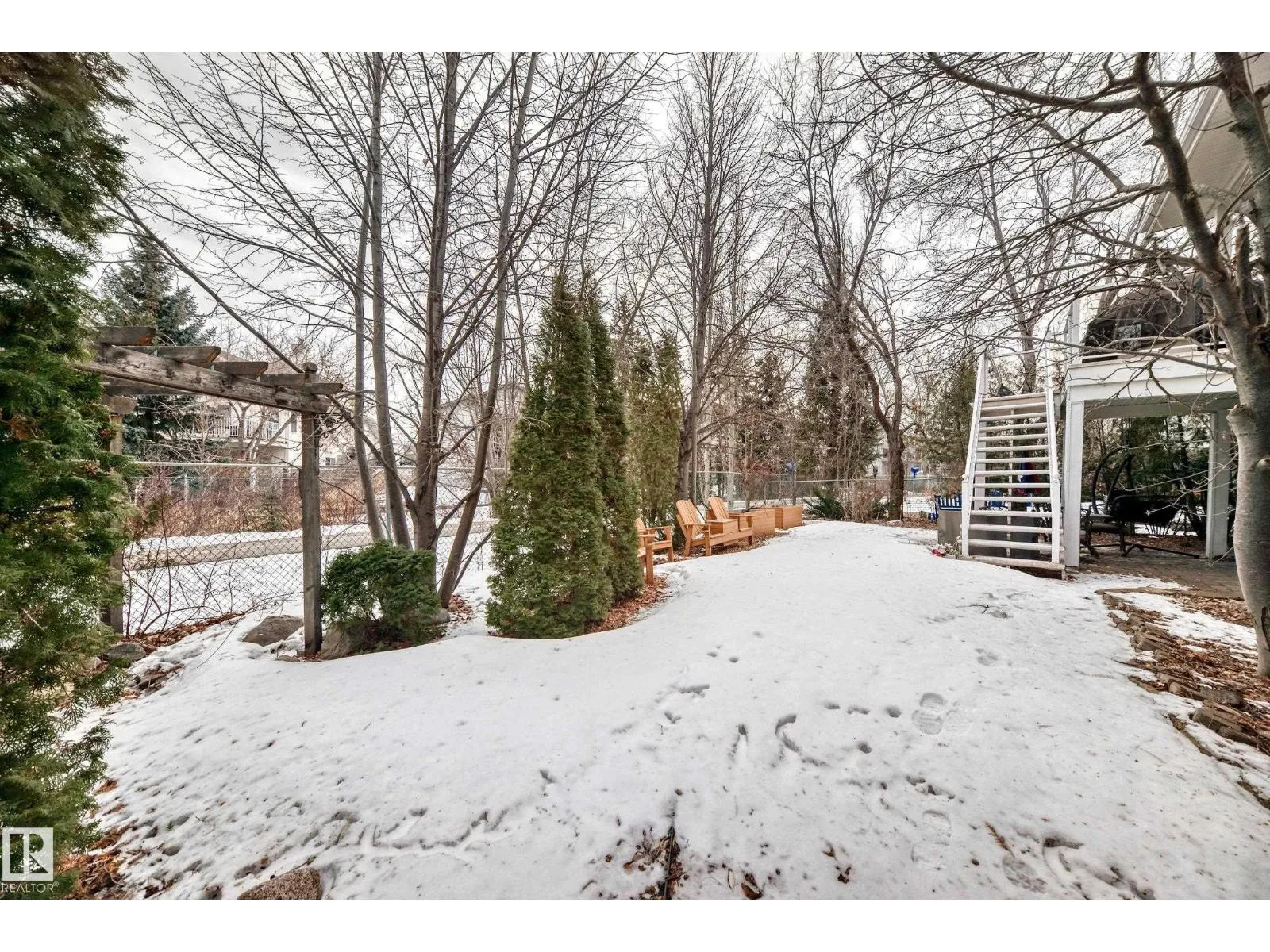 BACKING WALKWAY TO PARK AND LAKE! This GORGEOUS 5 Bdrm 3 Full Bath Walk-Out Bungalow is RENOVATED to include: Numerous Upgrades, New Baths, New A/C, New Flooring, New Furnace, New Water Softener & RO filter water system, New Tankless Hotwater, New H.E.P.A. Air Purifier, Newer Shingles 2022, The main floor presents: A Chef's kitchen featuring two tone maple cabinetry, 3 top of the line appliances to include the gas countertop stove, granite island overlooking the L/R accented by a 3 Sided Gas F/P & a covered deck just off the kitchen nook. You'll also find a formal DR/den, the king-sized Primary retreat that boasts a walk-in closet & luxurious 5 PC ensuite & completing the main level is the second bedroom, main floor laundry & guest bath. The lower level boasts large family-sized rec room, gas F/P, 3 generous bdrms, 4-piece bath, 2nd laundry & walk-out to the parklike setting w/a fish pond and gate access. Double HEATED & Insulated Garage w/water & drain & underground sprinkles. (id:27476)