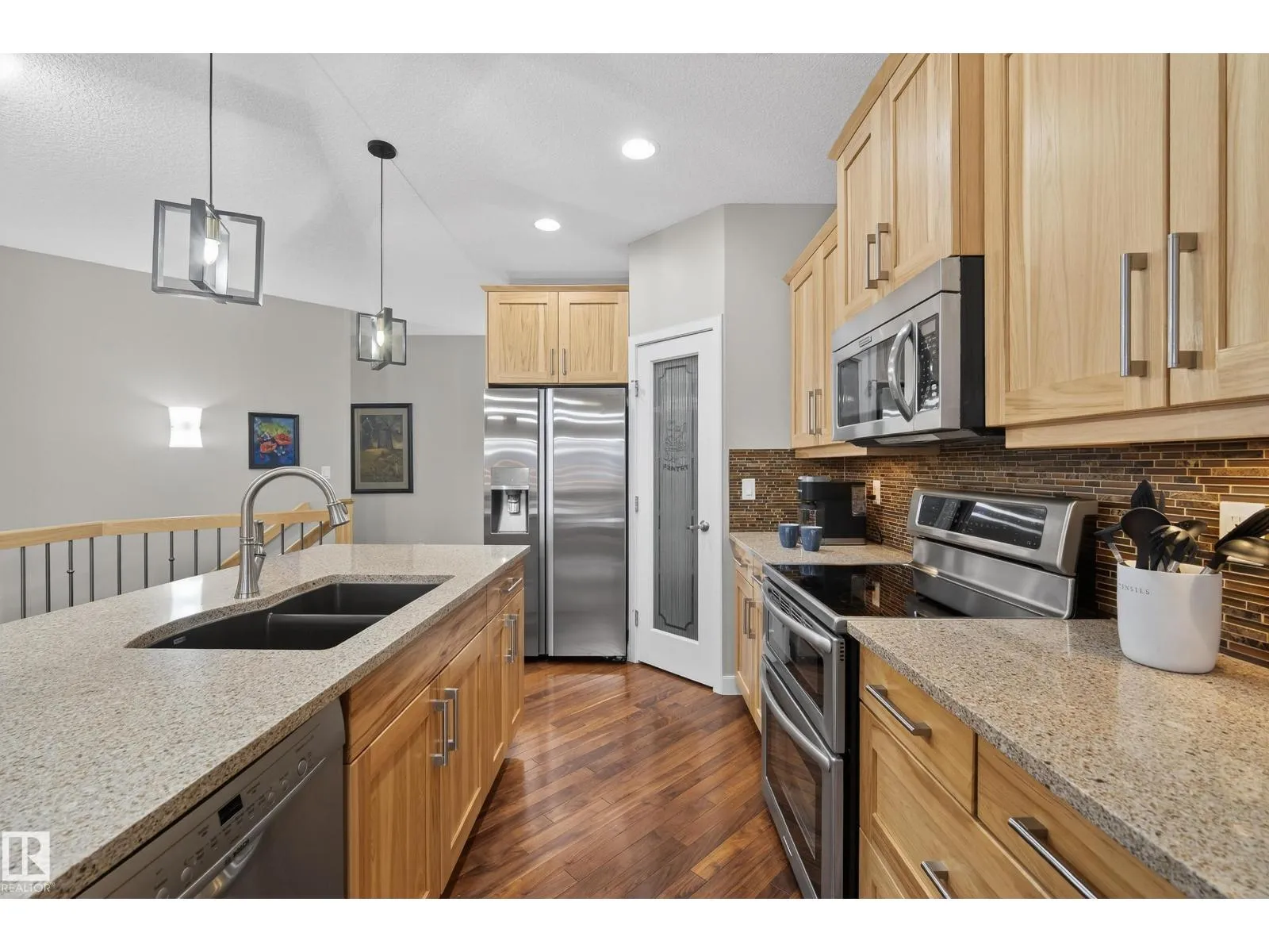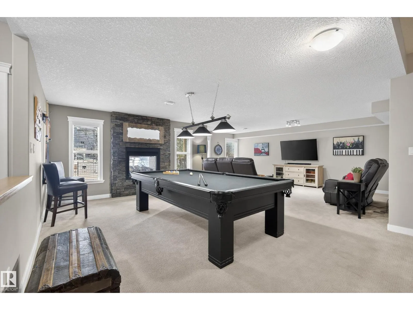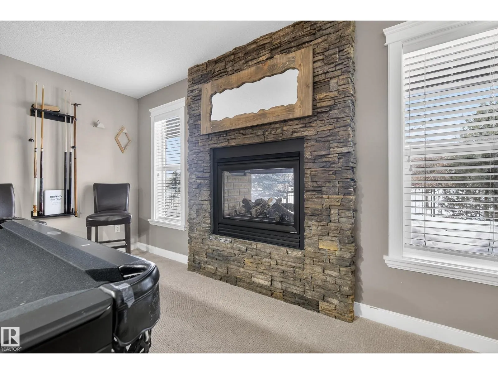 Welcome to this impressive walkout bungalow, backing walking trails and nestled on a quiet cul-de-sac in desirable Lakeland Ridge. Offering 1,617 sq ft, A/C, 4 bedrooms and 3 full baths, this meticulously maintained home showcases soaring ceilings, black walnut hardwood and quality finishes throughout. The gourmet kitchen features hickory cabinetry, quartz counters, new stainless steel appliances, and overlooks the dining area and sunken living room with fireplace. The spacious primary retreat offers a walk-in closet, luxurious ensuite and access to the upper deck. A beautiful office/flex room completes the main floor. The fully finished walkout basement with in-floor heat and 9â ceilings is designed for entertaining, offering a large rec room with a two-sided fireplace, 2 bedrooms, a full bath, pool table and abundant storage. The laundry room is a dream come true. Enjoy the beautifully landscaped yard backing greenspace and trails. An oversized heated double garage completes this exceptional home. (id:27476)