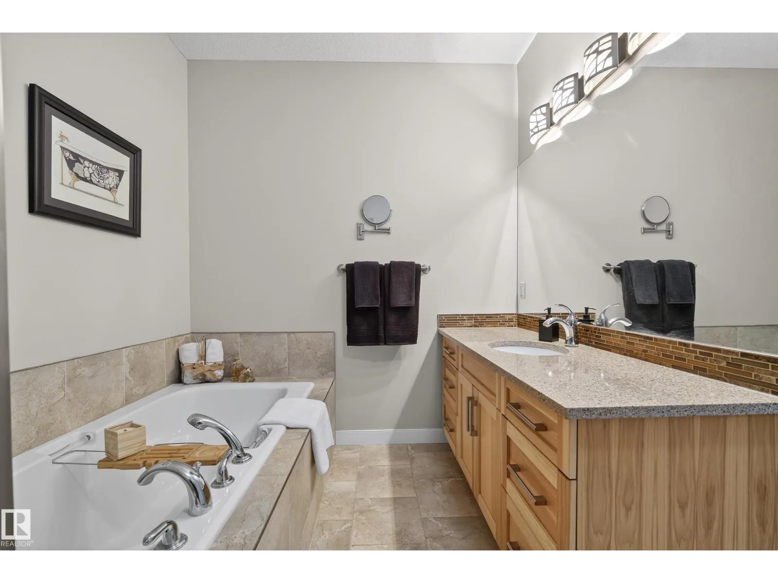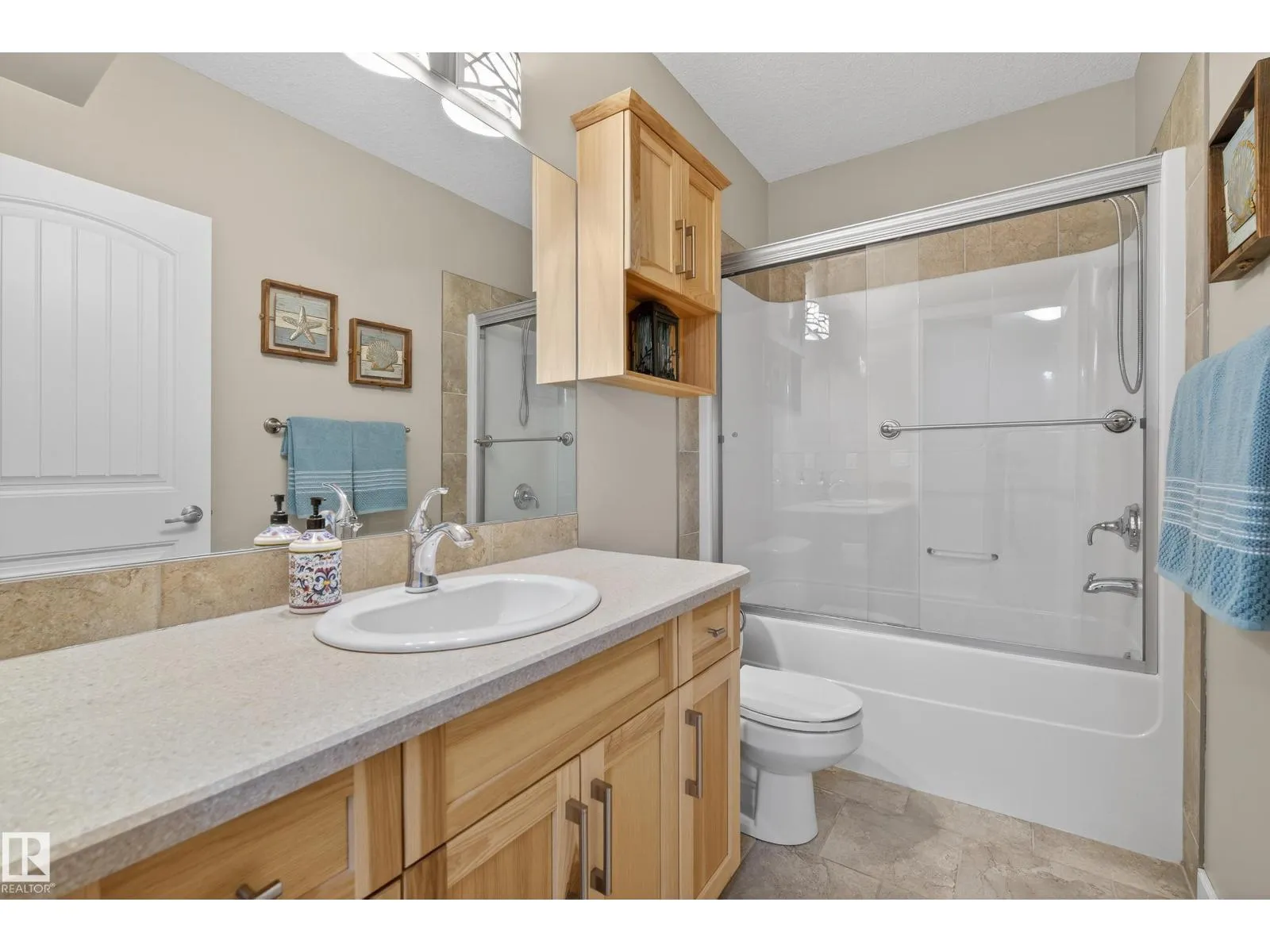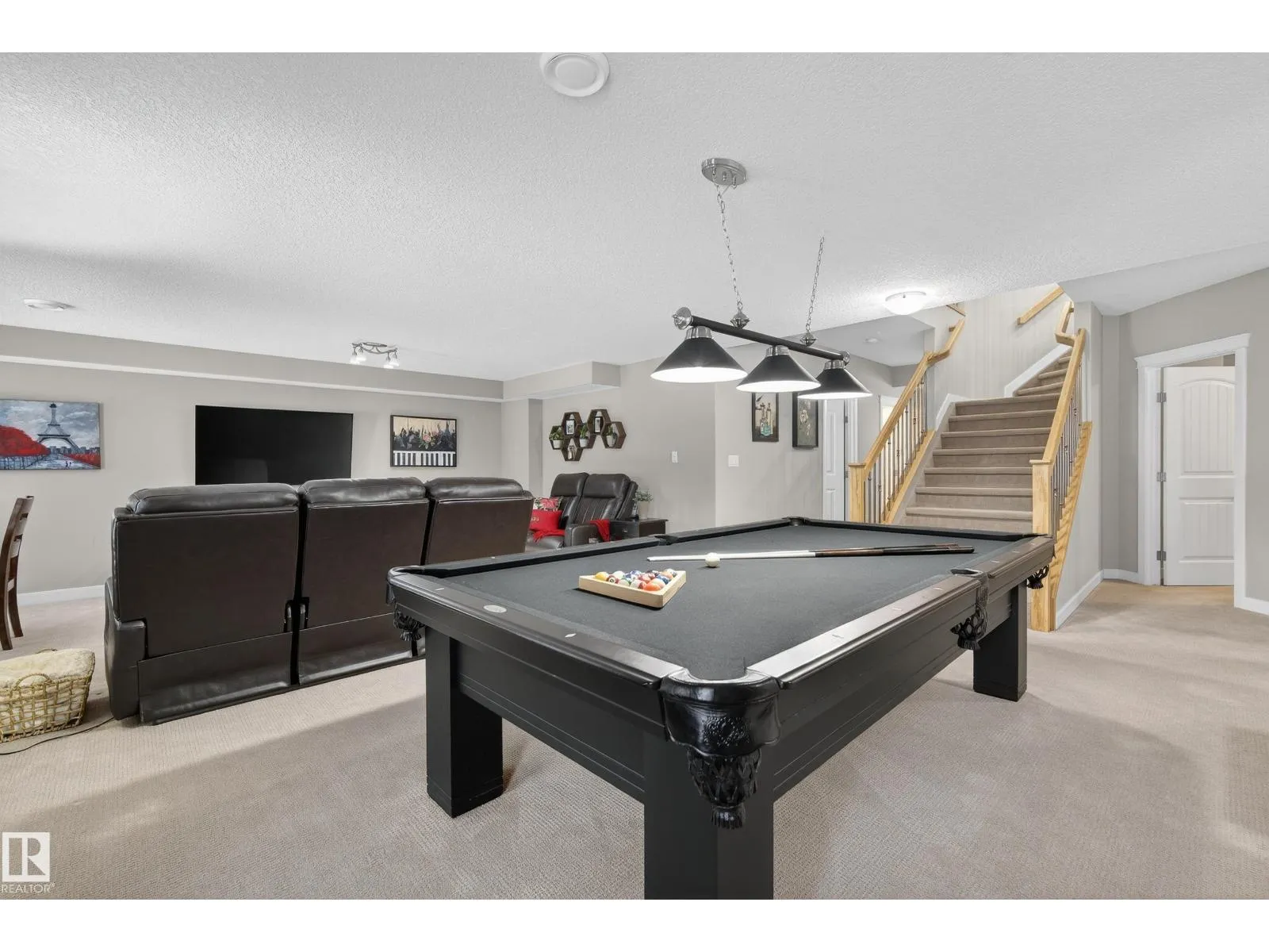 Welcome to this impressive walkout bungalow, backing walking trails and nestled on a quiet cul-de-sac in desirable Lakeland Ridge. Offering 1,617 sq ft, A/C, 4 bedrooms and 3 full baths, this meticulously maintained home showcases soaring ceilings, black walnut hardwood and quality finishes throughout. The gourmet kitchen features hickory cabinetry, quartz counters, new stainless steel appliances, and overlooks the dining area and sunken living room with fireplace. The spacious primary retreat offers a walk-in closet, luxurious ensuite and access to the upper deck. A beautiful office/flex room completes the main floor. The fully finished walkout basement with in-floor heat and 9â ceilings is designed for entertaining, offering a large rec room with a two-sided fireplace, 2 bedrooms, a full bath, pool table and abundant storage. The laundry room is a dream come true. Enjoy the beautifully landscaped yard backing greenspace and trails. An oversized heated double garage completes this exceptional home. (id:27476)