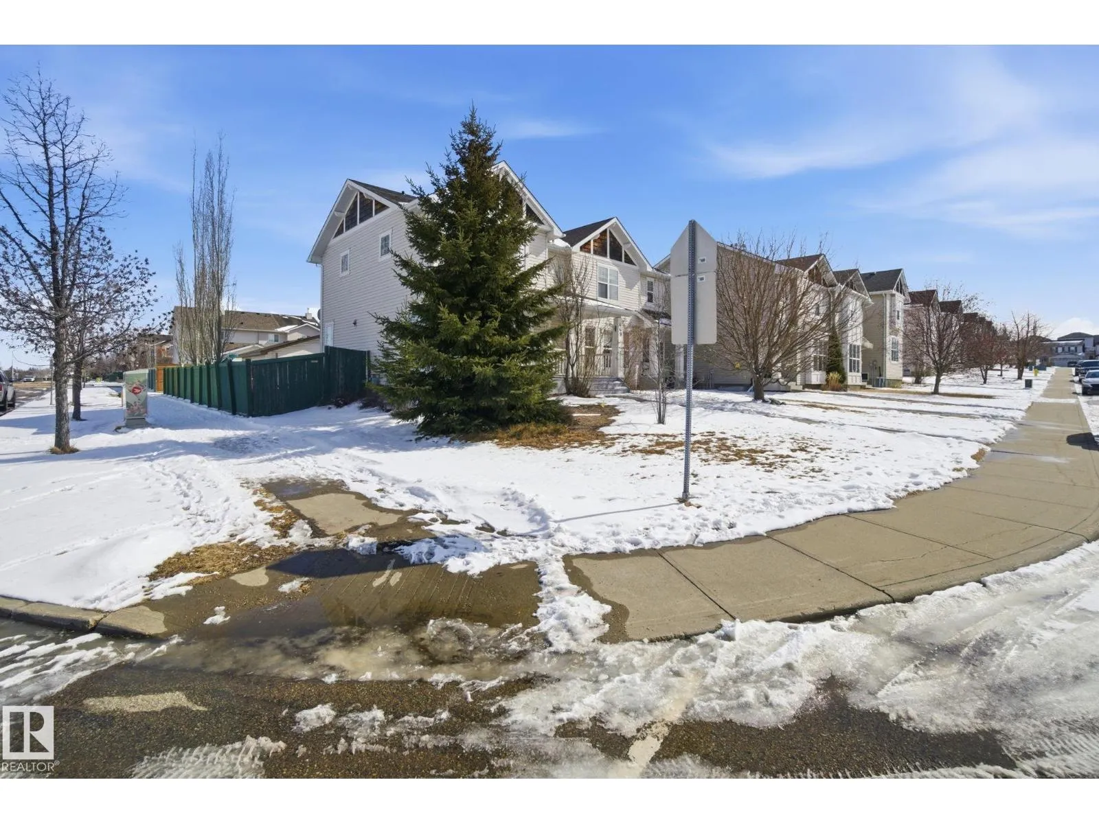 Perfect First Home, lcoated on a corner lot next to Trillium School, in Lakeland Ridge! Fully finished 2-storey half-duplex in a family-friendly neighborhood. Bright and inviting with a smart floor plan featuring a spacious living room with corner gas fireplace, adjoining dining nook, laminate flooring.The modern kitchen includes stainless steel appliances, glass tile backsplash, and island with an eating bar. Garden doors open to a two-tiered deck and private backyardâperfect for relaxing or entertaining. Main floor flex room ideal for a home office, plus a convenient 2-piece bathroom. Upstairs, find three bedrooms, a full 4-piece bath, and a primary suite with 4-piece ensuite. The basement adds a rec room, den ( with potential for 4th bedroom) 3-piece bathroom, laundry, and plenty of storage. Complete with double detached garage, extra parking pad, landscaped, and charming front verandah. Fantastic location, steps from Lakeland Ridge School, parks, playgrounds, shopping, and transit. (id:27476)