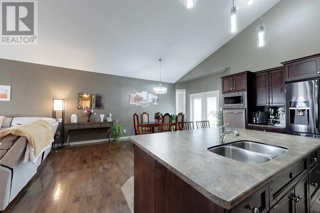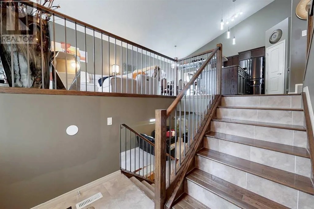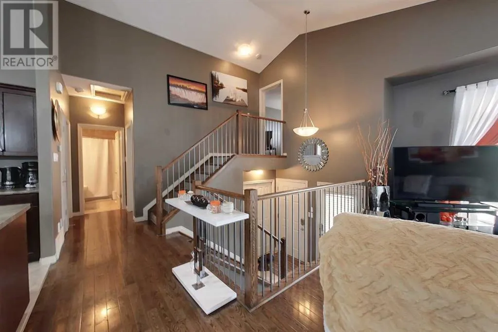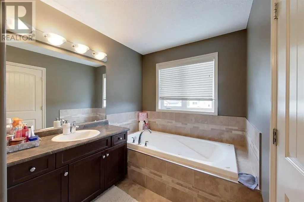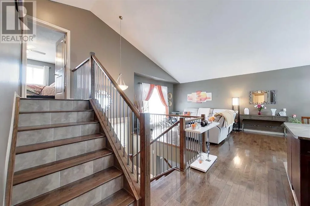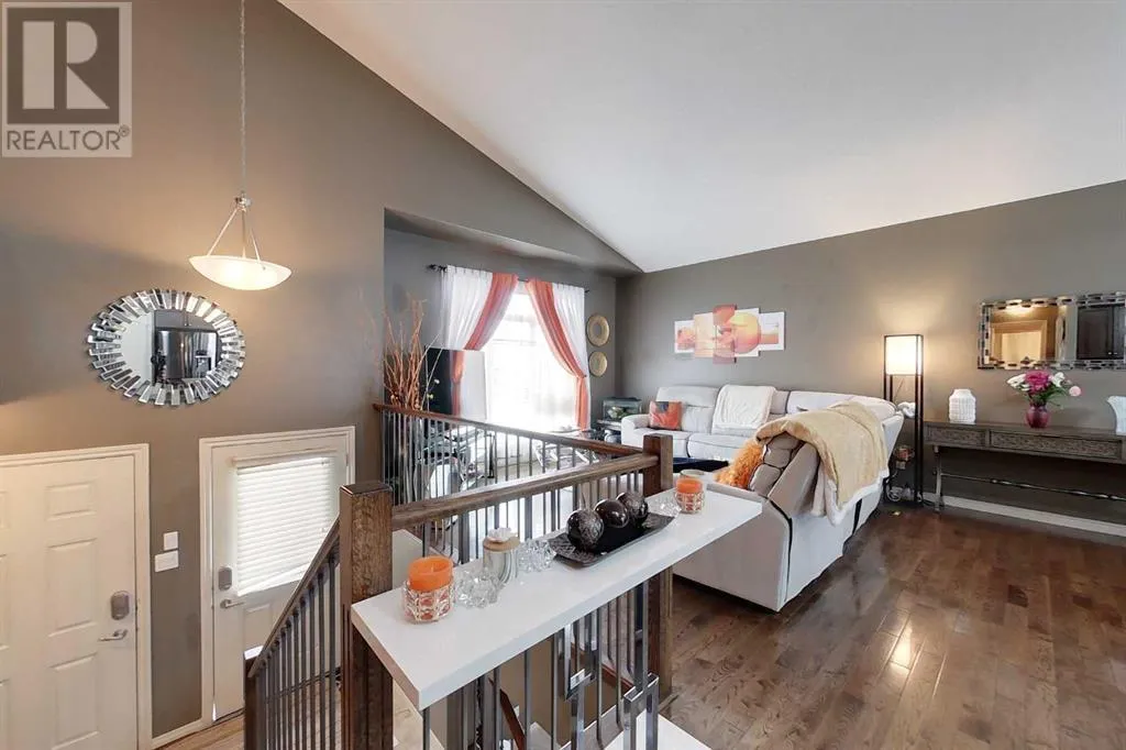 Built in 2012, this beautiful family sized modified bi-level home is a must see! 5 bedrooms and 3 bathrooms with 1544 square feet of living space. The kitchen features hardwood flooring, stainless steel appliances, lots of cabinetry, large sink-in island, and large dining space fit with a walk-out to the backyard deck. This multi-level design features high ceilings, bright spaces, and an open floor plan with a large rec room in the fully finished basement level boasting a gas fireplace for those cold Alberta nights. Backyard is fully fenced in a quiet family oriented SE community. Additional features include central air conditioning, central vac and attachments, Master Bedroom retreat on the second level with a walk in closet and 4pc ensuite fit with a separate tub and shower. This home has so much to offer! (id:27476)