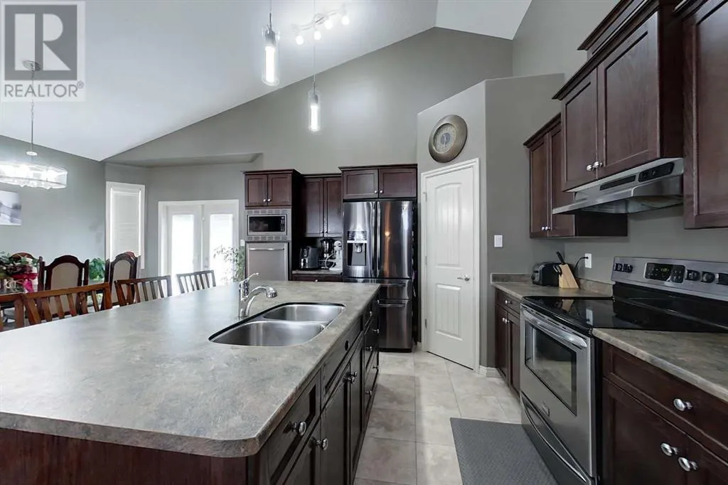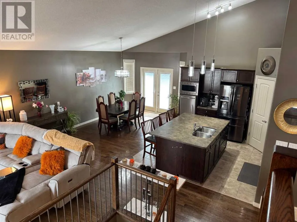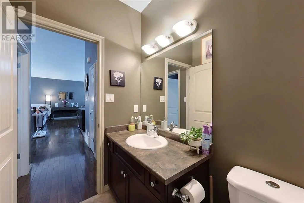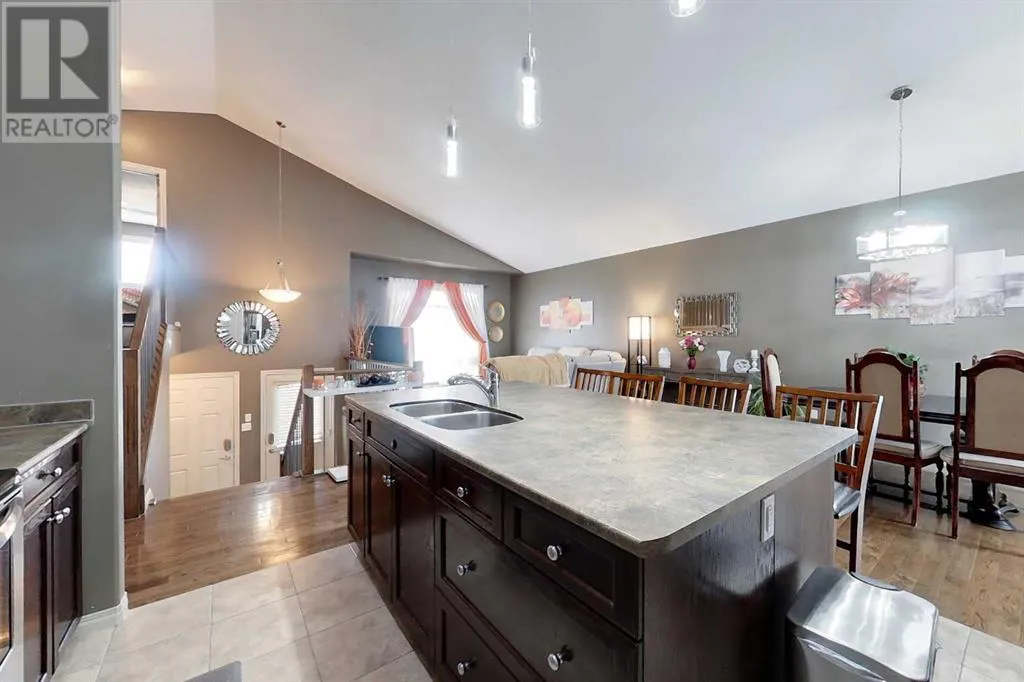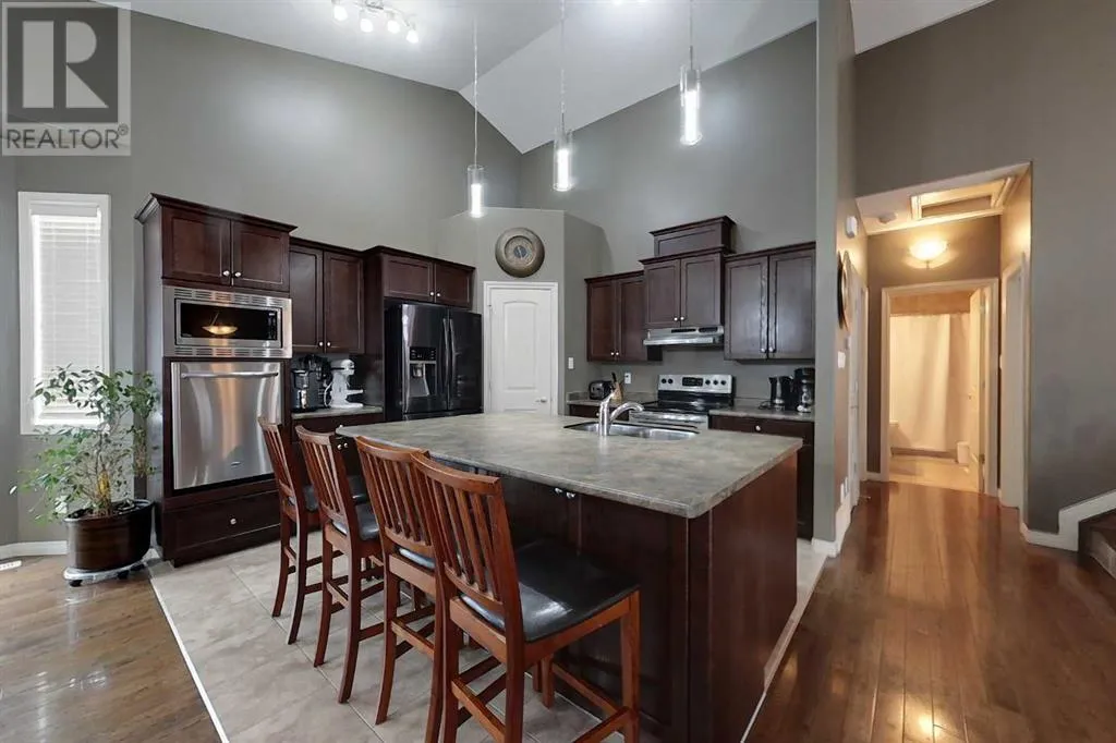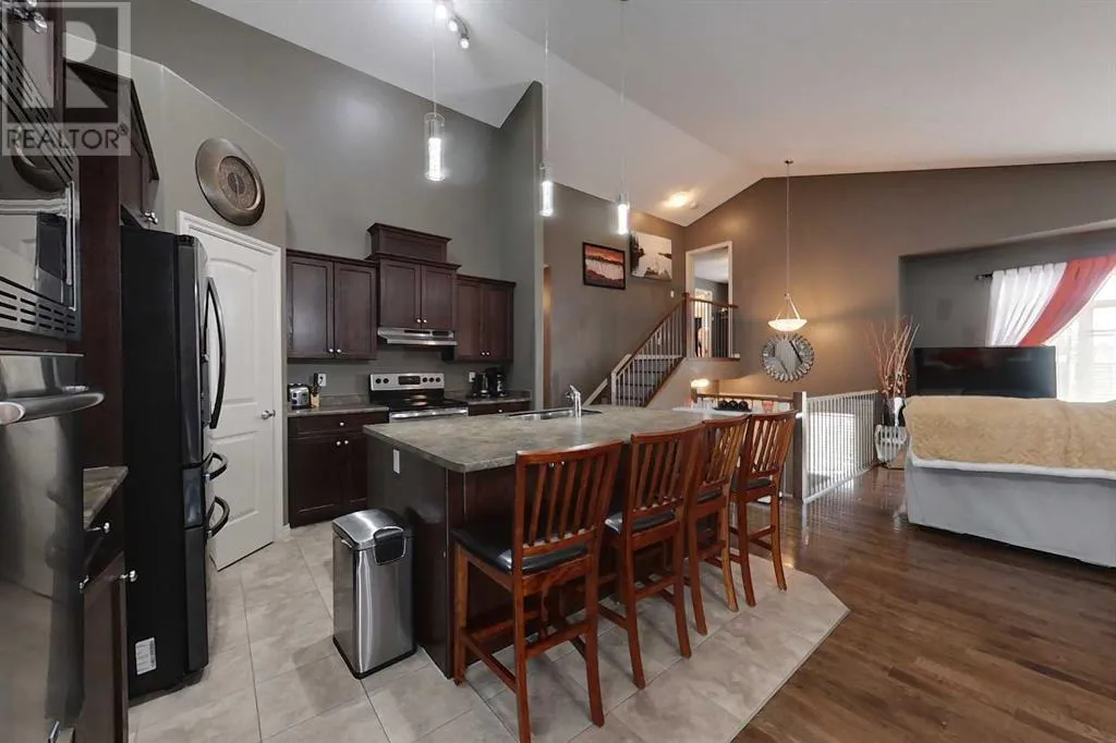 Built in 2012, this beautiful family sized modified bi-level home is a must see! 5 bedrooms and 3 bathrooms with 1544 square feet of living space. The kitchen features hardwood flooring, stainless steel appliances, lots of cabinetry, large sink-in island, and large dining space fit with a walk-out to the backyard deck. This multi-level design features high ceilings, bright spaces, and an open floor plan with a large rec room in the fully finished basement level boasting a gas fireplace for those cold Alberta nights. Backyard is fully fenced in a quiet family oriented SE community. Additional features include central air conditioning, central vac and attachments, Master Bedroom retreat on the second level with a walk in closet and 4pc ensuite fit with a separate tub and shower. This home has so much to offer! (id:27476)