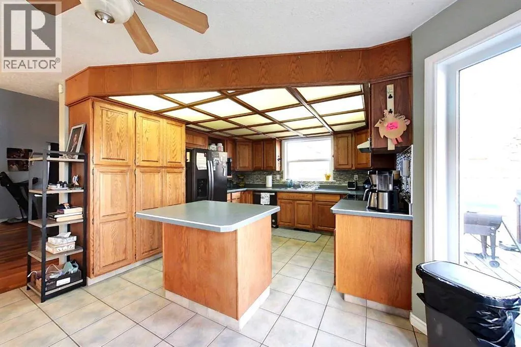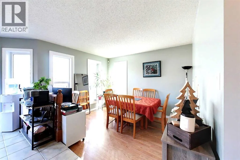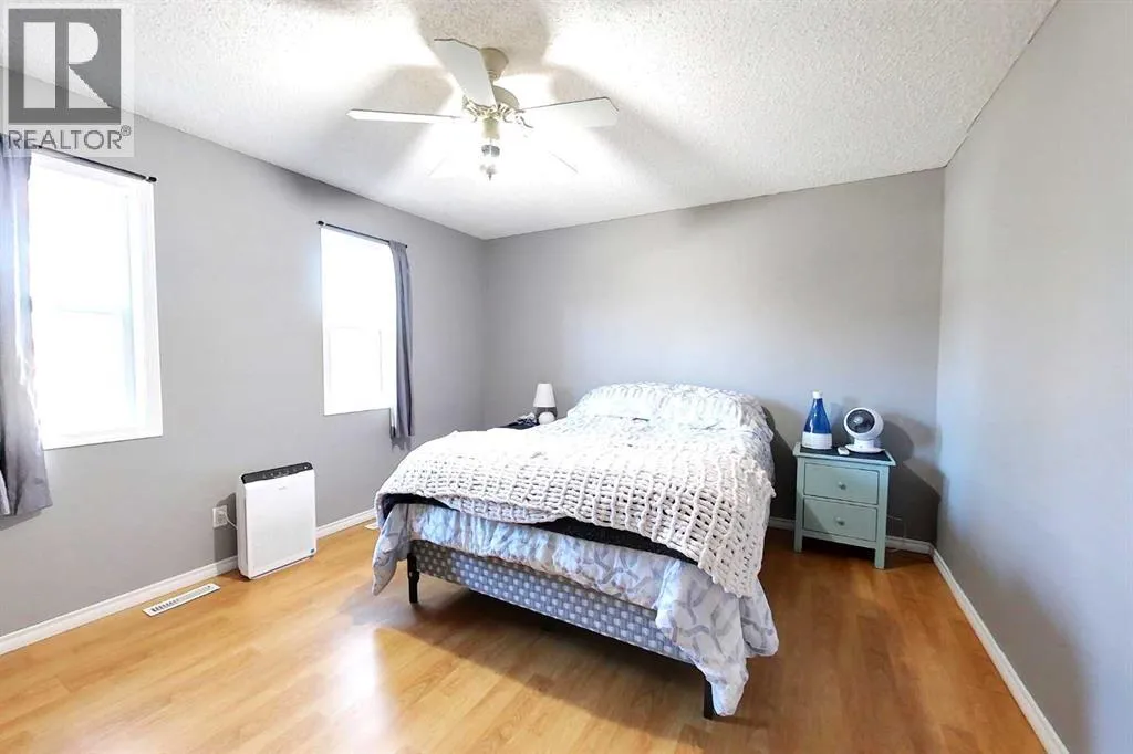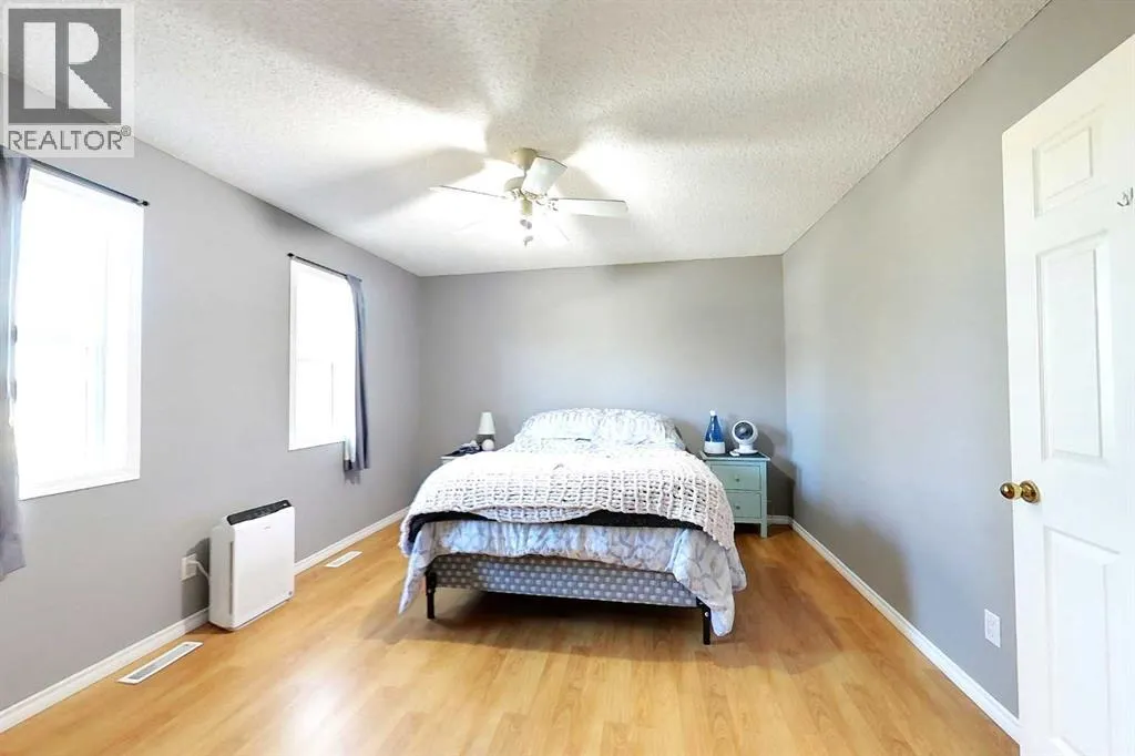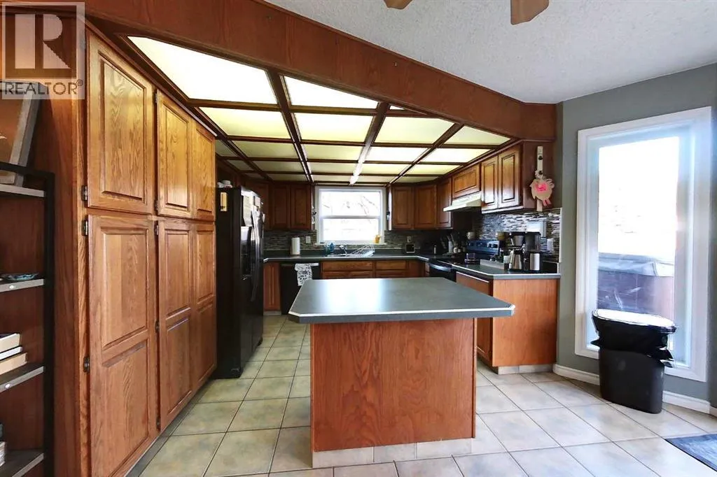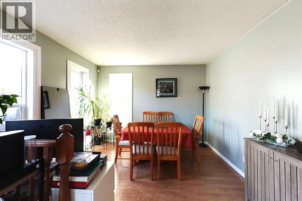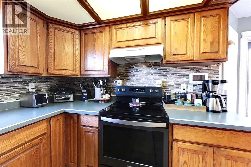 This upgraded family home has so much to offer including a GREAT location. Sitting on a corner lot that backs onto Hilda Eben Park, this 4 bedroom home is close to the new splash park, skateboard park, ice rink and sliding hill....also steps away from the Allarie Trail system that goes all through town! The home has great curb appeal with updated siding and roofing (2017). Stepping inside the nice -sized foyer with coat closet and access to the heated double garage (has access to backyard, and tonnes of storage shelves!). The livingroom features a wood burning fireplace and staircase with lofting hall to the bedrooms and bathroom on the upper floor. The open kitchen dining room is stocked with timeless oak cabinetry, a "Floating" island, updated appliances and a kitchen sink overlooking the side yard. This is a large space, where you could have a breakfast nook! The Sunken dining room could also be used for a small cozy family room...choice is yours! Out through the patio doors to the back yard, you'll enjoy approx 30" private deck, firepit area and some landscaping features. There is a cement pad and access to the garage around the east side. Rounding out the home is a lower level, with two good sized bedrooms, or use as one bedroom & family room, and utility/laundry room (washer & dryer new in Nov 2024 )with pocket door. This family home with a very pleasing floor plan combined with a dream private backyard, makes the perfect choice to settle in SE Slave Lake! (id:27476)
