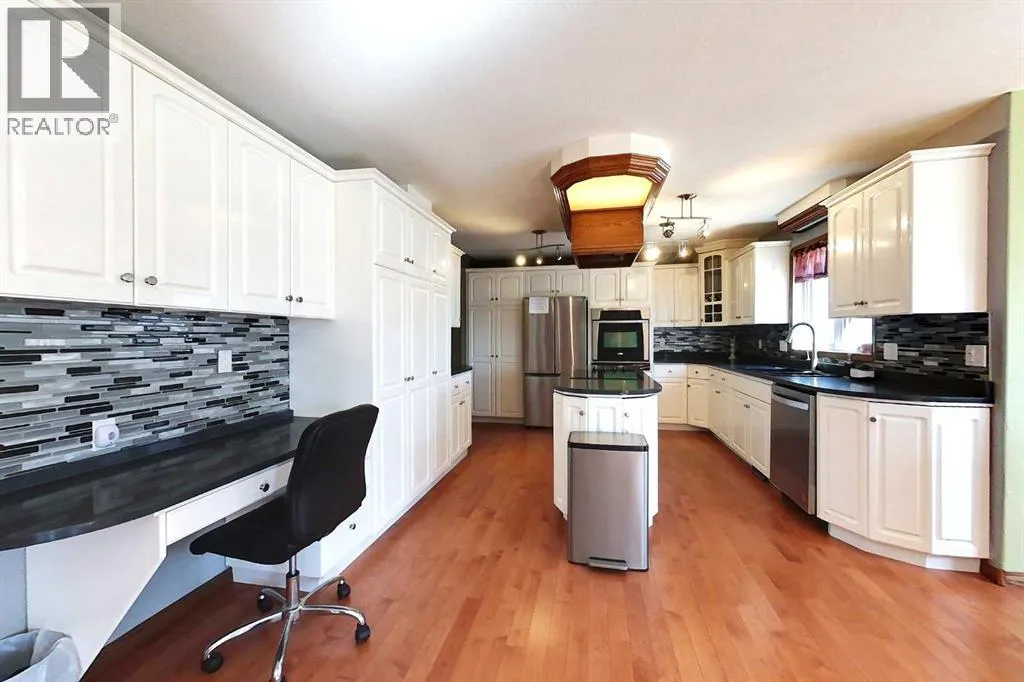 FANTASTIC SUBDIVISION for this executive 2 storey home, backing onto the Creek. Home is 2,591.89 sq ft plus a fully finished basement that features the 4th bedroom, a 3pc bath and a perfectly outfitted games room complete with the pool table & accessories. Going upstairs to the Main floor is a huge spacious entry way with an Amazing Front Door that speaks to the curb appeal! Main Floor laundry, a bedroom that could easily be a main floor office/workroom, 2pc bath, a sparkling white kitchen with stainless steel appliances, with a breakfast nook and family room. Also there is a formal dining area/living room complete this main floor. Upstairs you find the the Master suite that features a 5pc bath with his\her sinks, a separate stand up shower and a jacuzzi tub plus 2 more bdrms & 4pc bath. Upgrades include- 2 furnaces Dec/24, HWT Dec/24, Flooring in kitchen & family room March/25, some cupboards & counter top Mar/25,cooktop, Apr/25 , fridge Apr/25, dishwasher & garburator, Apr/25, washer & dryer Apr/25. Outside you can't beat the yard that backs onto the green zone & fire pit area. Great family neighbourhood, yard & a stunning home! (id:27476)