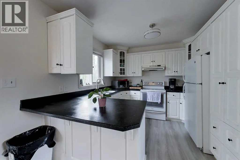 A great family home in the heart of Slave Lake's SE quadrant, close to the new spray park and outdoor ice rink. This 1200 sq ft home was built in 1996 with a floorplan that's pleasing to the whole family. Step inside this bilevel that has a large landing at the entry and up the steps to a vaulted spacious living room. The dining room has a bay window/garden door to the newer deck. The white kitchen has a window overlooking the backyard which is fully fenced and landscaped with towering aspen trees for privacy. Completing the main floor are two bedrooms, a 4 pc bath and primary suite that includes a 3 pc ensuite and walk-in closet. This room is large enough for a king bed and has two good sized windows on the east side of the home. The lower level offers more bedrooms, a 3 pc bathroom, family room and large utility/laundry room. A favorable feature from the lower level is an access door to the 23x24 heated garage. This property is priced to sell and is available for a quick possession. (id:27476)