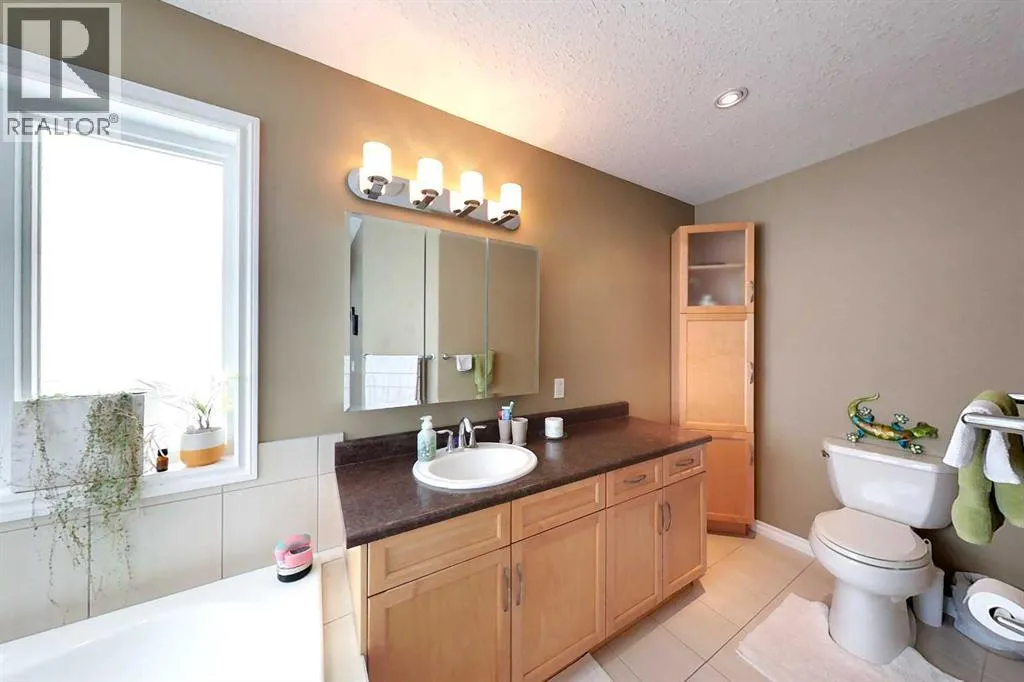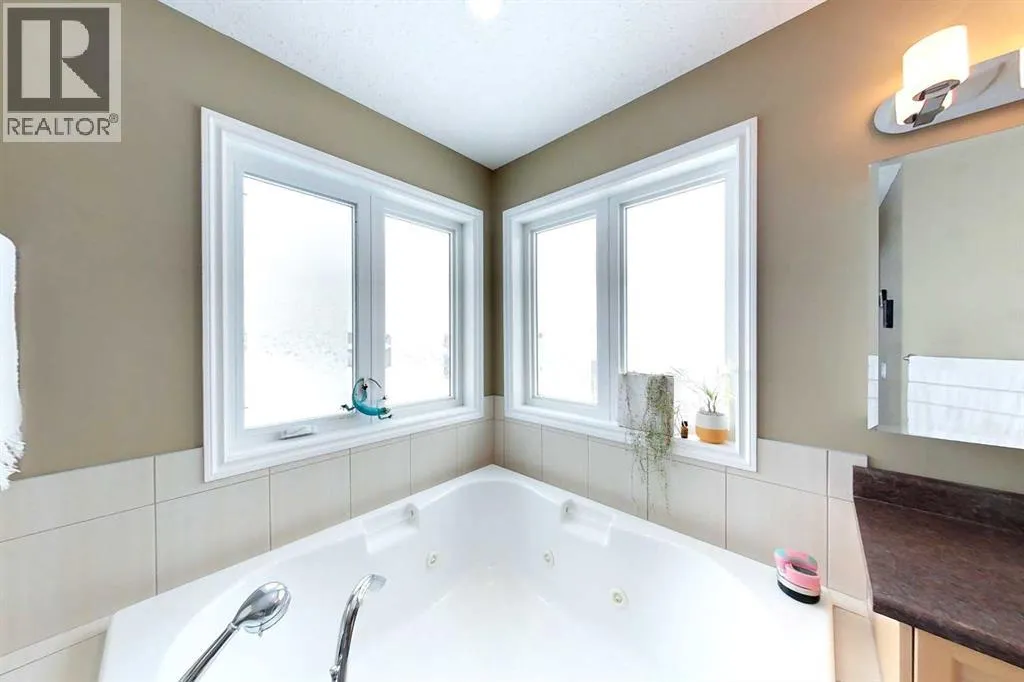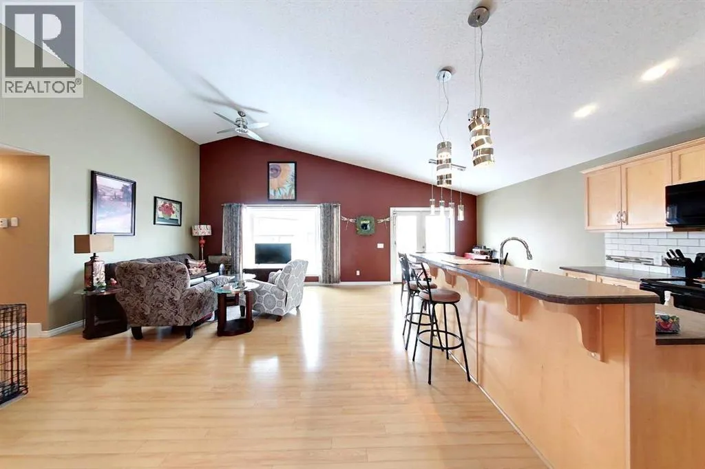 WOW is the first thing you will say as you walk through the door of this beautiful modified bi-level home. With the tall ceilings and open concept layout this home has so much room for you and your family to grow in. Tiled entrance with closet and garage access in the foyer. On the main floor you will find a beautiful kitchen with a large island, tons of cupboard space and pantry, black appliances. The vaulted ceiling on the main floor is through the dining area and good sized living room with garden doors leading out to the deck and landscaped back yard. 2 bedrooms and a 4 piece bathroom finish off the main floor. Go up the stairs to the master bedroom featuring a walk in closet and 4 pc ensuite that has the separate jetted tub and shower. Down to the basement you will find 2 more bedrooms, another 4 pc bath, office, laundry room, the utility room and a large family room complete with a wood fireplace for those cold winter nights. Attached to the home is a double garage! This well kept home has so much to offer and is ready to move in! (id:27476)
