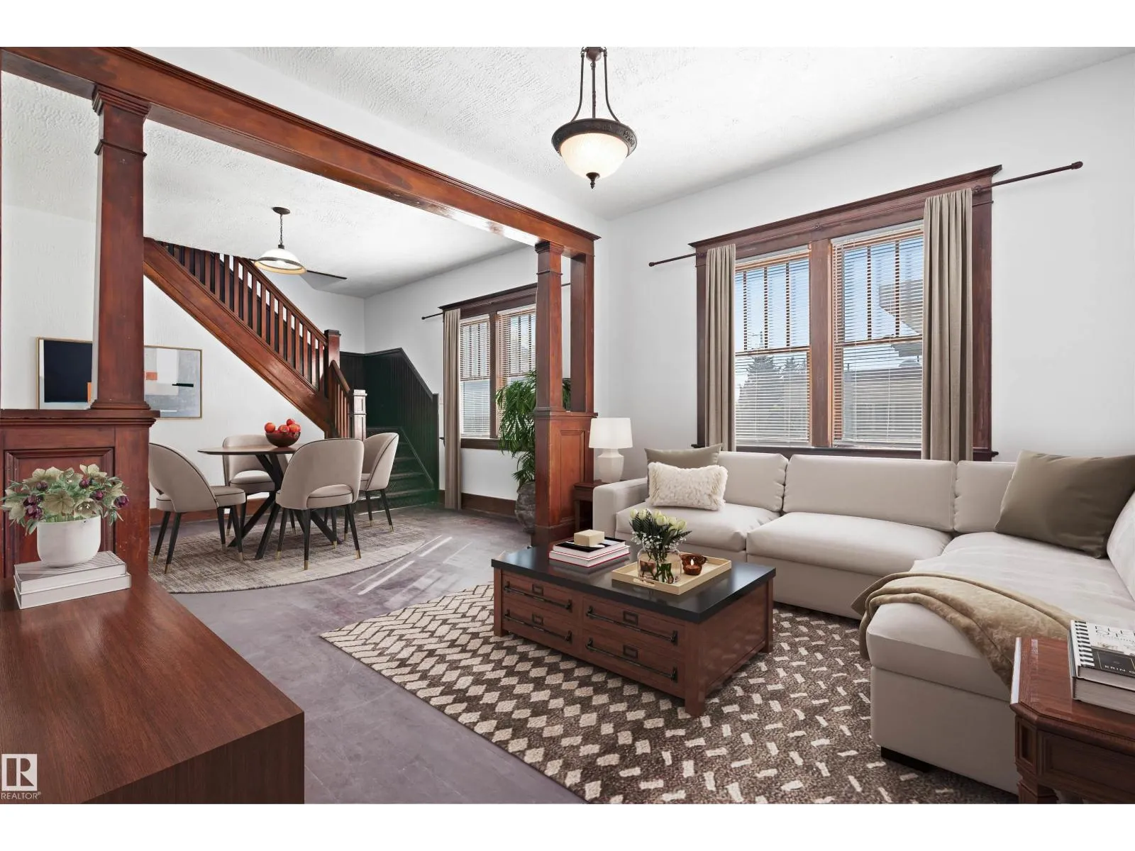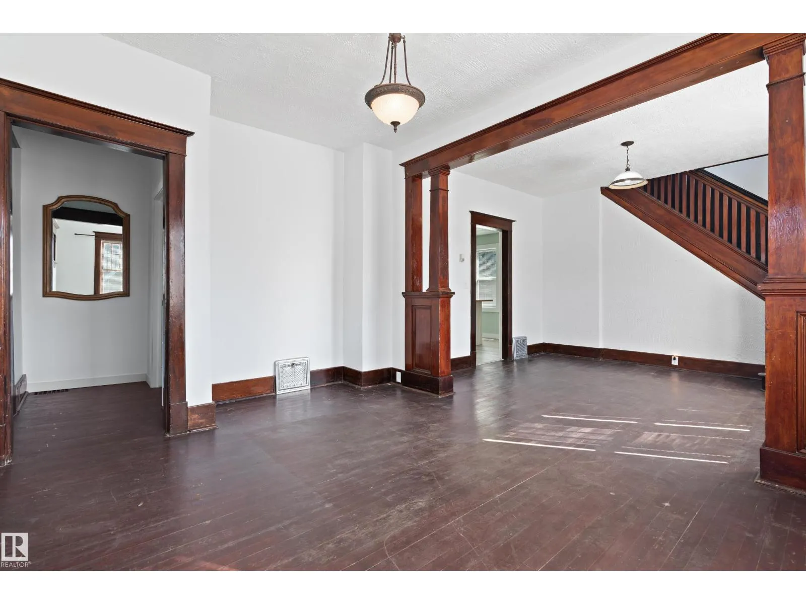 Welcome to the Keen House, a Beautiful, Craftsman Style Heritage Home built in 1931, Designated a Municipal Historic Resource by the Quaint, Small Town of Smoky Lake! Noted Features: High Gable Roof, Stucco Clad Exterior, Shed Dormers on front & rear, Enclosed Porch w/off facade entry from side steps, sitting rooms, hardwood flooring, wainscotting, columns & pilasters architrave & treillage, Doric column & railing on stairway, moulded trim, flat, single light transom on 2nd floor above bdrm. door. Main & Second Flr Bathrooms & Kitchen are NEW: 2023-2025, Electrical Panel upgraded to 100 amp service, Exterior paint NEW - Aug 2025, Chimney was repaired & a leak was fully remediated & repaired, Roof redone w/ new shingles in 2017, Gas HWT 2023, Pex Plumbing lines throughout, Sewer scoped & cleaned in 2022, Newer Windows in Kitchen, 3 new supports under porch. Courtyard, cute landscaping, fully fenced, space for Garage if desired, Backyard ARTISAN STUDIO!! AMAZING MOVE-IN READY, SMALL TOWN HOME w/HISTORY! (id:27476)
