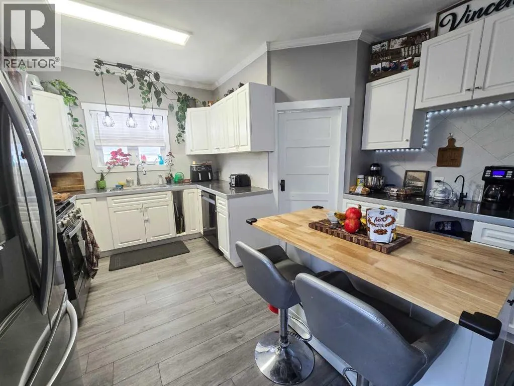 This beautifully updated character home blends original charm with meaningful modern upgrades and a layout that truly works. The spacious main living area features soaring ceilings, abundant natural light, and preserved woodwork that adds warmth and personality throughout the home. The main floor offers a very large primary bedroom with an updated 3-piece ensuite, a convenient half bath, and an additional flexible room ideal as an office, nursery, or playroom. The kitchen was completely renovated in 2024 with modern cabinetry, stainless steel appliances, and generous counter space, creating a bright and functional heart of the home. Upstairs, the charming loft provides two bedrooms, a bonus room, and a beautifully redone bathroom with double vanities and a walk-in shower. Major exterior improvements include a new roof, shingles, soffit, fascia and eaves, along with a new deck. The home also features updated insulation, wiring, windows, furnace, hot water tank, fresh paint, trim and flooring. New lighting and ceiling fans have been installed throughout. Outside, the fully fenced yard sits on a massive lot with ample parking and RV space, all paired with very affordable property taxes. The unfinished basement remains ready for future development or storage. Located within walking distance to Spirit River Regional Academy and shopping, this property offers small-town comfort with everyday convenience. Spirit River continues to grow, featuring a hospital, medical clinic, seniors lodge and retirement community, and is only 45 minutes from Grande Prairie or 55 minutes from Dawson Creek. A home where character, space, and practical updates come together in a community designed for easy living. (id:27476)