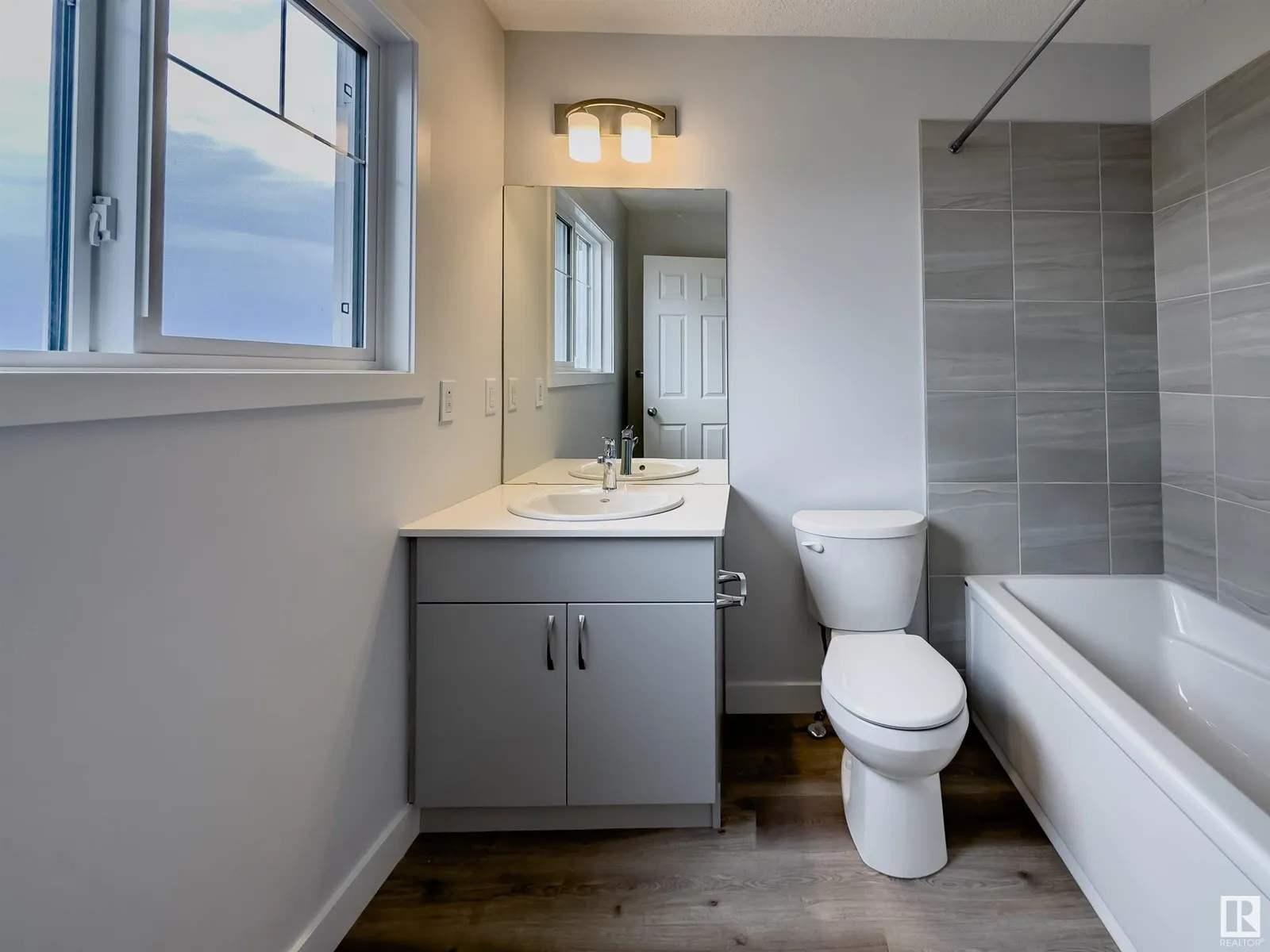 Welcome to this brand unit row house unit the “Glenmore” Built by the award winning builder Pacesetter homes and is located in one of Spruce Grove's newest communities of Copperhaven. With over 1,350 square Feet, this opportunity is perfect for a young family or young couple. Your main floor is complete with upgrade luxury Vinyl plank flooring throughout the great room and the kitchen. Highlighted in your new kitchen are upgraded cabinets, upgraded counter tops and a tile back splash. Finishing off the main level is a 2 piece bathroom. The upper level has 3 bedrooms and 2 bathrooms. This home also comes completed with front and back landscaping and a double car garage. *** This home is under construction and will be complete by December of this year , the photos used are from the same model that was just recently built a few doors down and colors may vary*** (id:27476)