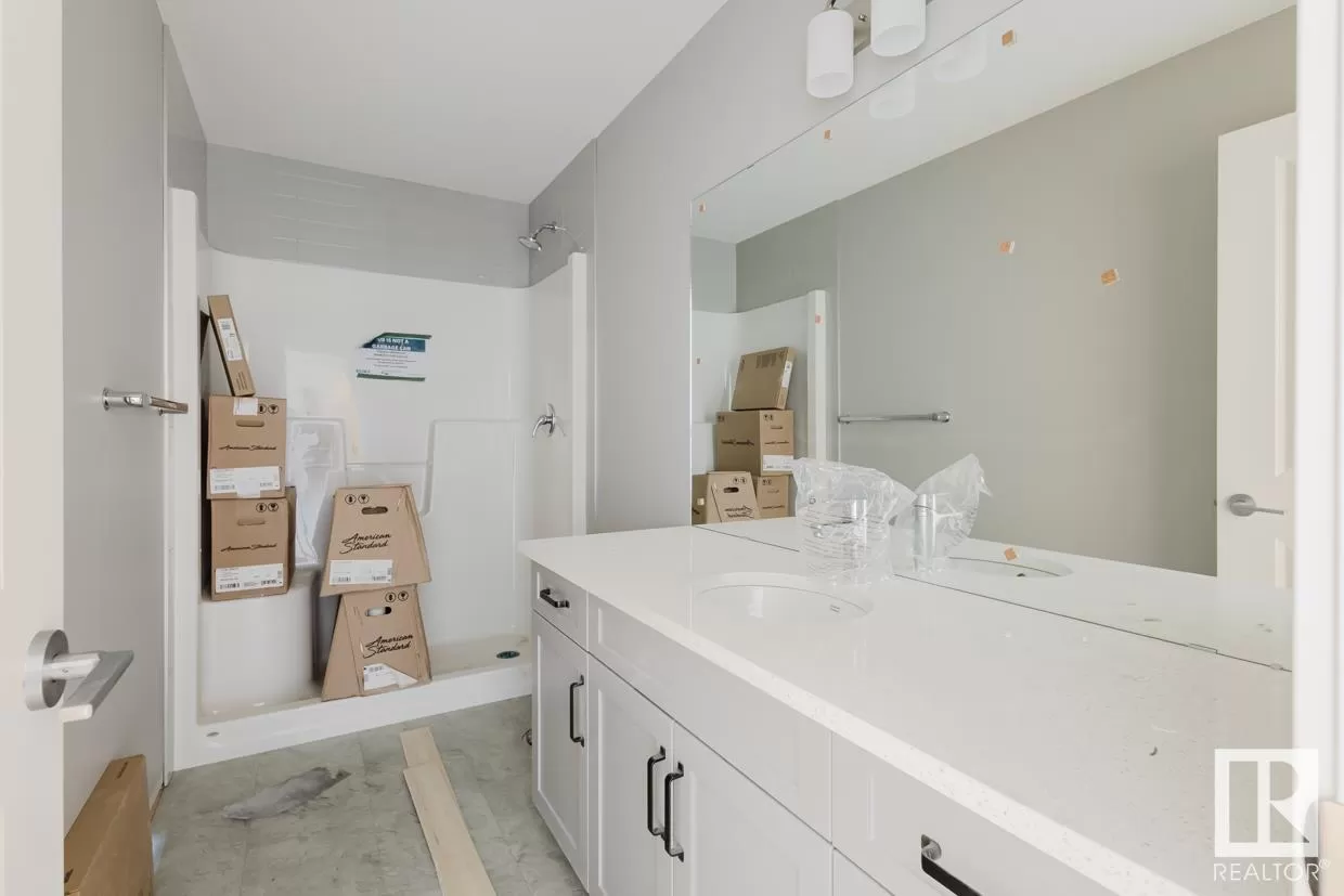 FULL BED & BATH ON MAIN! Award-winning Crystal Creek Homes presents this stunning two-storey 4 bed, 3 bath detached home in the highly desirable community of Prescott in Spruce Grove. This home offers a perfect blend of modern style and comfort on an generous pie shaped lot. The open-concept main floor features a spacious living room with fireplace, modern kitchen, pantry, and dining area. The main floor also includes a bedroom and a full bathroom, perfect for guests or additional living space. Upstairs, you'll find a versatile bonus room, convenient walk-in laundry, a 4-piece bathroom, and 3 generously sized bedrooms. The primary suite boasts a walk-in closet and a private ensuite with shower. This home also comes with a $5,000 appliance credit, a separate side entrance to the basement, and a triple detached garage! Don't miss your opportunity to make it yours. QUICK POSSESSION! First 26 photos are of the same model (interior colors differ) rest are of the home. (id:27476)