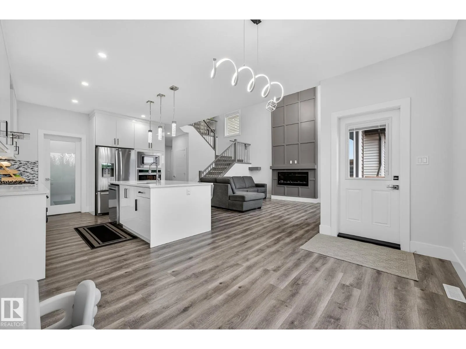 Exquisite home in McLaughlin community, BACKING ON TRAIL! This home features bright spacious rooms, 9' ceilings on all levels and upgrades! The kitchen offers quartz countertops, stainless steel appliances with gas stove, walk through pantry and ample cabinets that overlook the dining and living rooms with feature wall & fireplace, oversized windows and opened ceiling to the second floor. An inviting office, mudroom and guest bath complements the main floor. Upstairs presents a spacious bonus room with fireplace, king sized primary bedroom with walk-in closet and luxurious 5pc ensuite. Two additional generous sized bedrooms with walk-in closets are complemented with a 4pc bath and laundry room. The unfinished basement and side entrance offers endless possibilities for future suite, rec room or extra bedrooms. Enjoy the back deck, landscaped yard and direct access to a walking trail. Located in a family friendly community within walking distance of parks, Tri Leisure Centre & amenities! (id:27476)