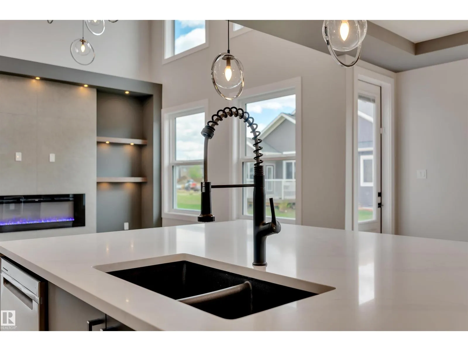 Built by Sunnyview Homes, the stunning property offers high end finishes throughout. Features include a small veranda at the entryway, TRIPLE car garage with OVERSIZED driveway situated on a HUGE lot. Mudroom with plenty of storage space. Double doors lead to a main floor bedroom with a full bathroom and tiled shower wall. The chef's kitchen has two-toned cabinets, quartz waterfall island, pull out organizers, under cabinet lighting and a sleek bar with pot lights and glass cabinets. Walk through panty, MDF shelving-full of upgrades! Open to below living room features a dropped ceiling with grand chandelier, custom accent wall with electric fireplace, glass railings, step lighting, and extra pot lights throughout. Upstairs includes a primary suite with indent ceiling and rope lighting, a feature wall, 5 piece en-suite and WIC. Plus good sized bonus room, 3 additional bedrooms, 2 bathrooms and laundry room. Separate side entrance to the basement with three large windows. Property is under construction. (id:27476)