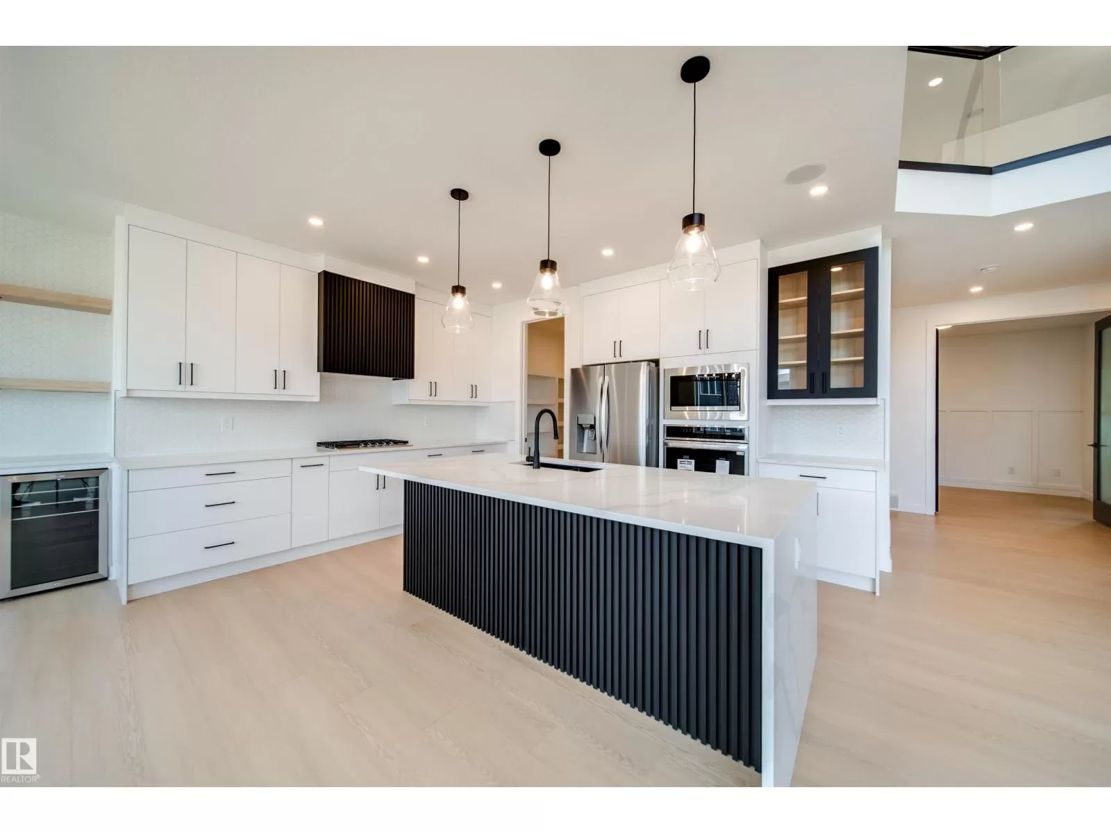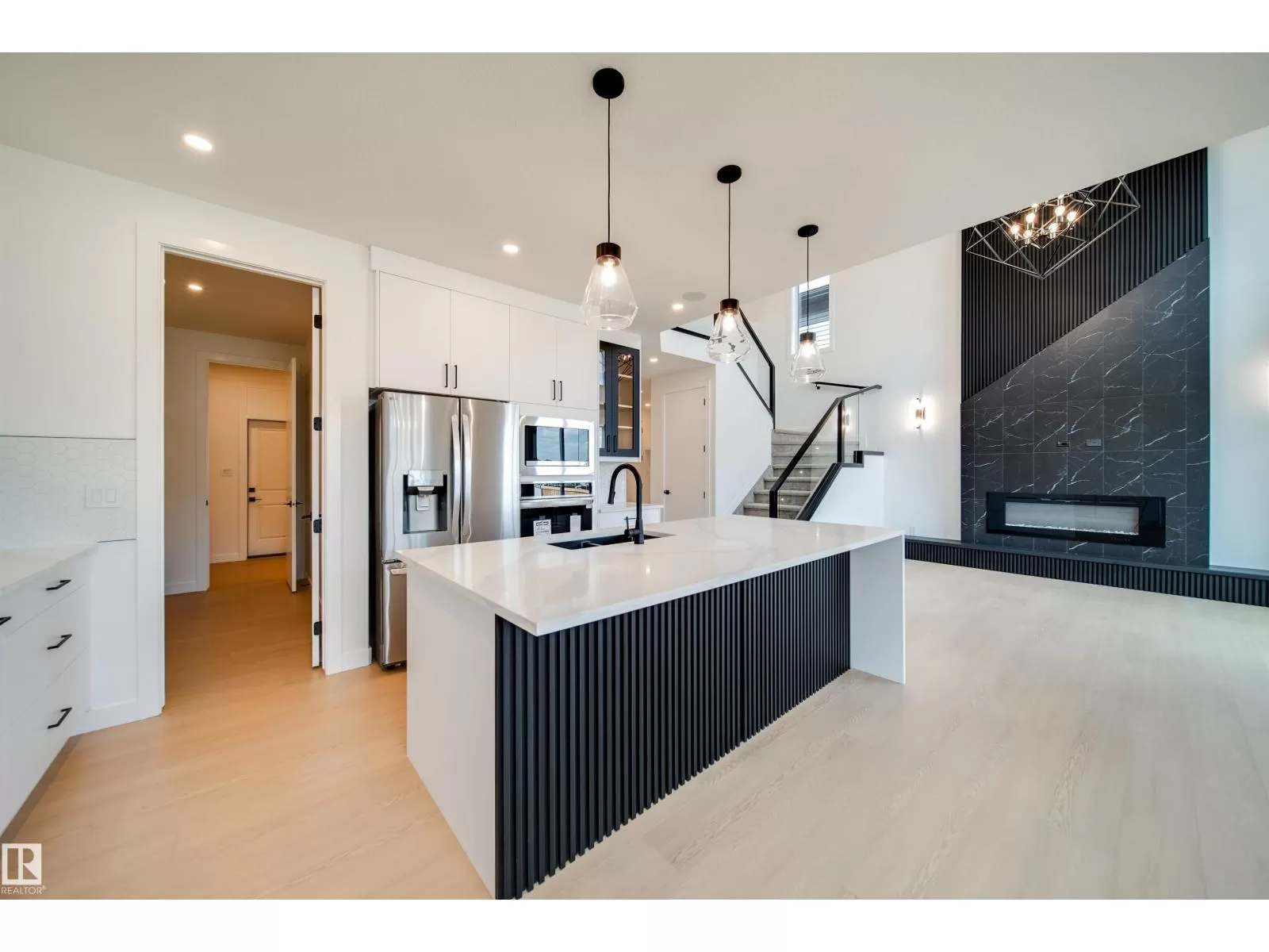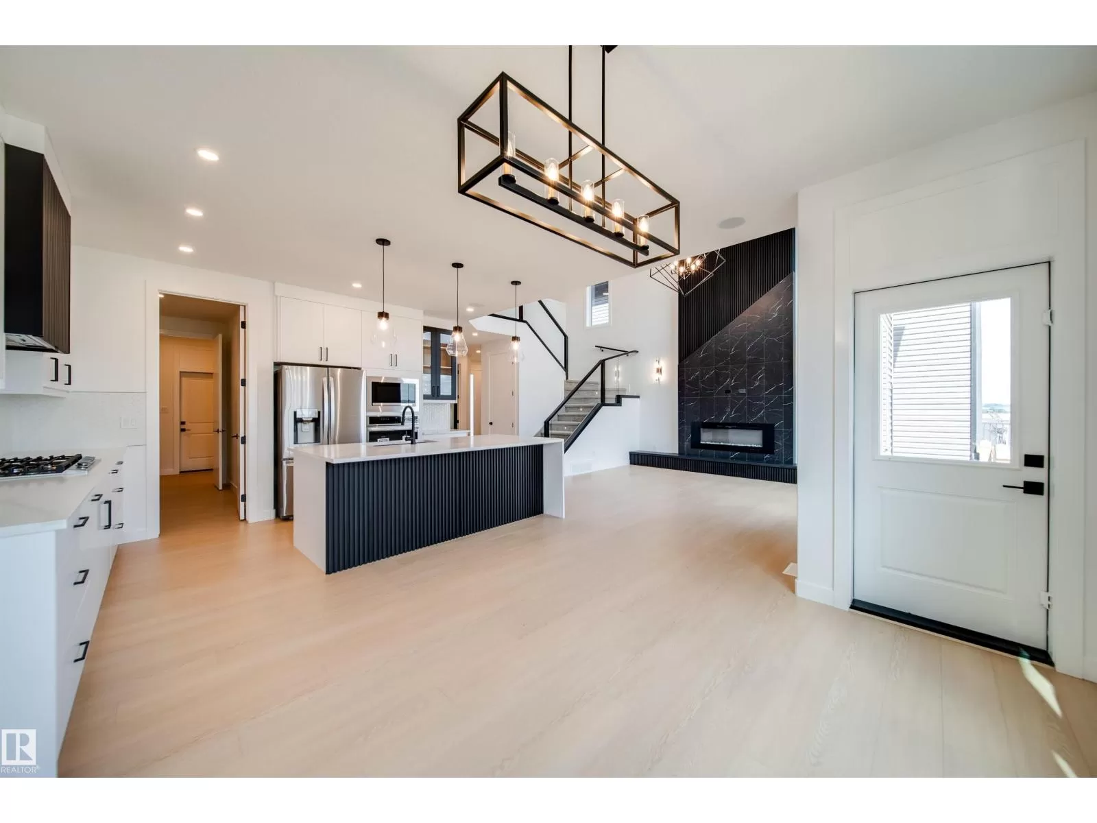 Welcome to this impressive 2-storey custom-built home by VIBRANT HOMES! Spanning 2,625 sq. ft., this home features 5 spacious bedrooms and 3 full bathrooms. The main floor offers 8' doors a large bedroom and a full bathroom, complimented by a coffered ceiling and an open-to-below family room. A striking feature wall sets the tone, complete with a modern electric fireplace. The custom kitchen boasts waterfall quartz countertops, two-tone ceiling-height cabinets, and an extended layout overlooking the bright and airy nook. A convenient walk-through pantry offers ample storage space, along with a mudroom. Upstairs, the luxurious primary bedroom includes a spa-inspired 5-piece ensuite and a walk-in closet. You'll also find 3 additional generously-sized bedrooms, a 4-piece bathroom, a laundry room, and an expansive bonus room. The OVERSIZED TRIPLE CAR GARAGE provides plenty of space for all your needs. The basement features a separate side entrance, presenting great potential for an income generating suite. (id:27476)