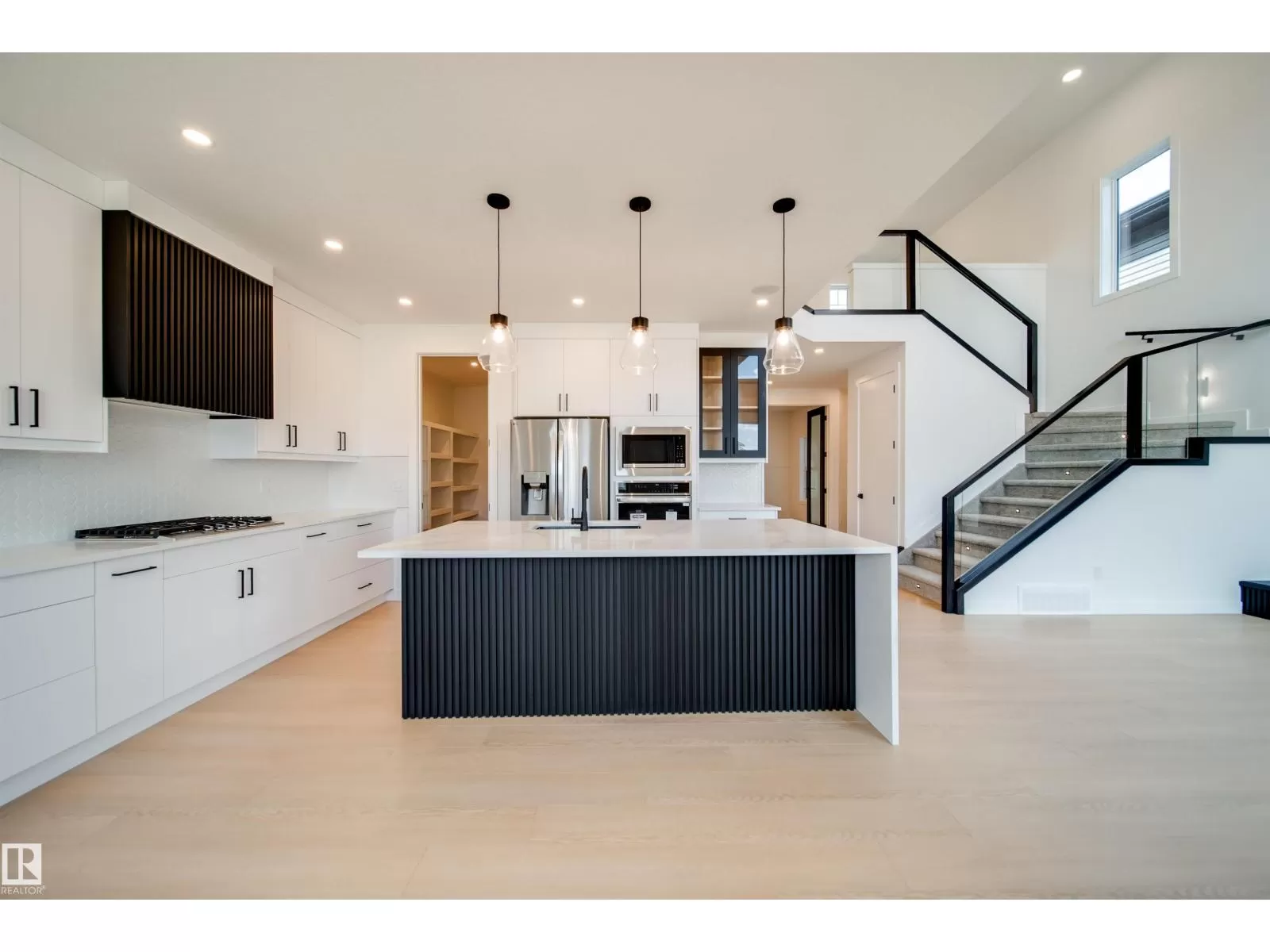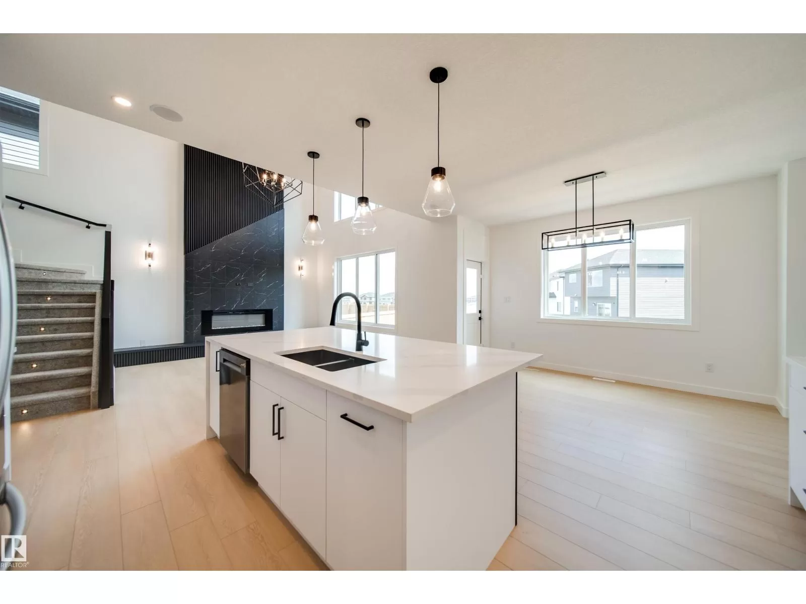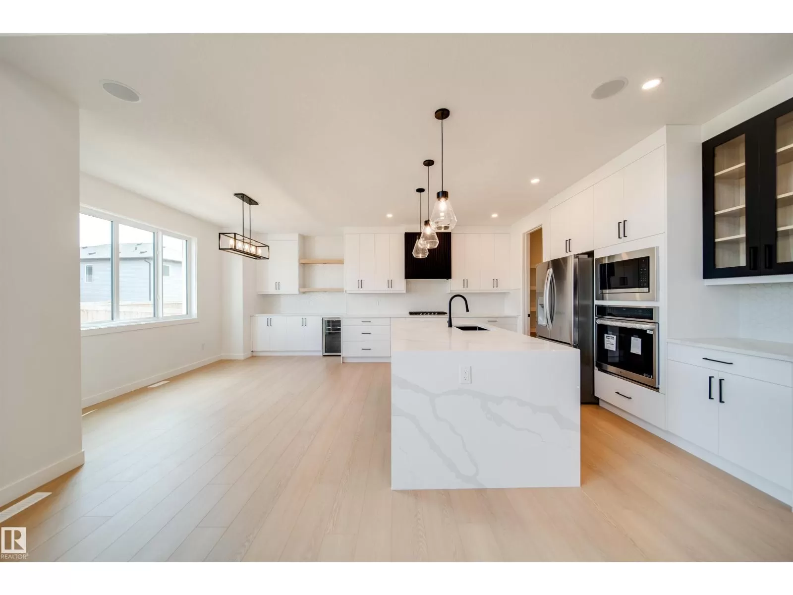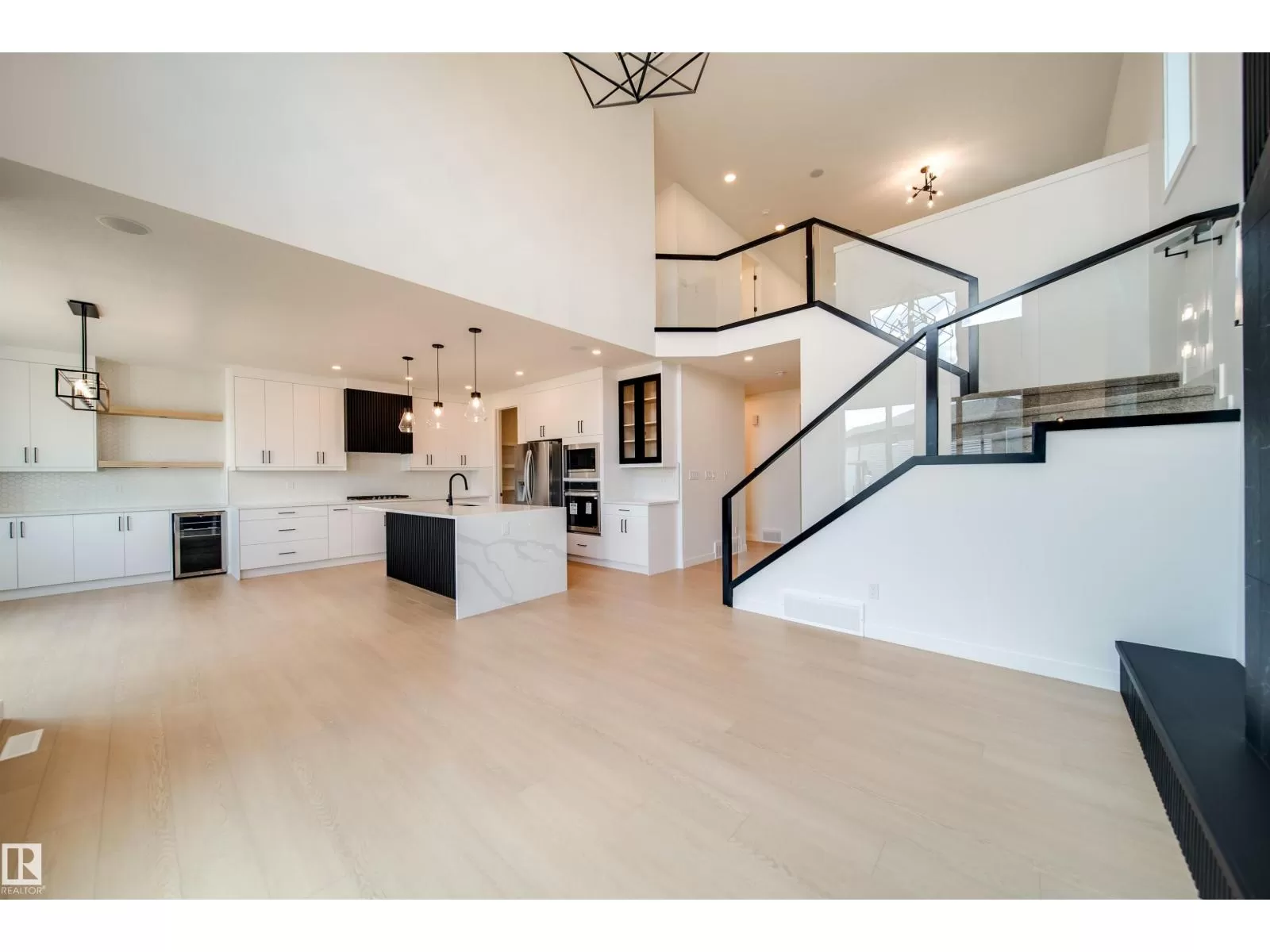 Welcome to this impressive 2-storey custom-built home by VIBRANT HOMES! Spanning 2,625 sq. ft., this home features 5 spacious bedrooms and 3 full bathrooms. The main floor offers 8' doors a large bedroom and a full bathroom, complimented by a coffered ceiling and an open-to-below family room. A striking feature wall sets the tone, complete with a modern electric fireplace. The custom kitchen boasts waterfall quartz countertops, two-tone ceiling-height cabinets, and an extended layout overlooking the bright and airy nook. A convenient walk-through pantry offers ample storage space, along with a mudroom. Upstairs, the luxurious primary bedroom includes a spa-inspired 5-piece ensuite and a walk-in closet. You'll also find 3 additional generously-sized bedrooms, a 4-piece bathroom, a laundry room, and an expansive bonus room. The OVERSIZED TRIPLE CAR GARAGE provides plenty of space for all your needs. The basement features a separate side entrance, presenting great potential for an income generating suite. (id:27476)