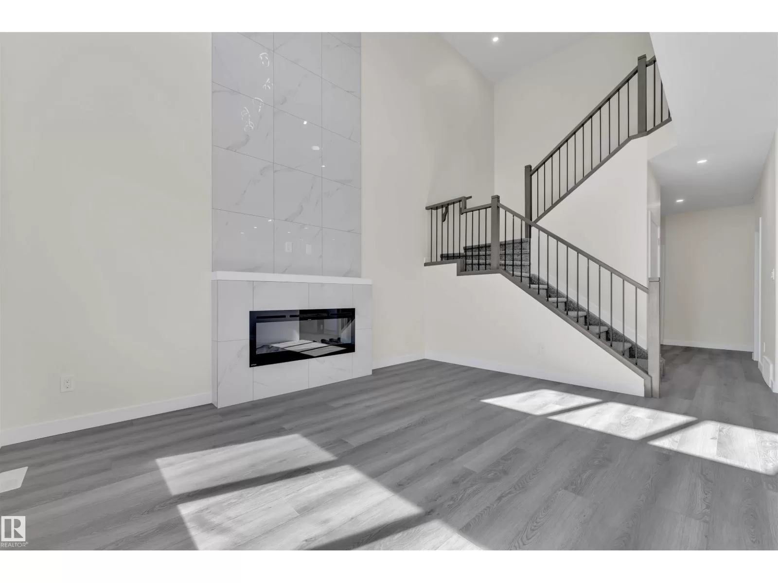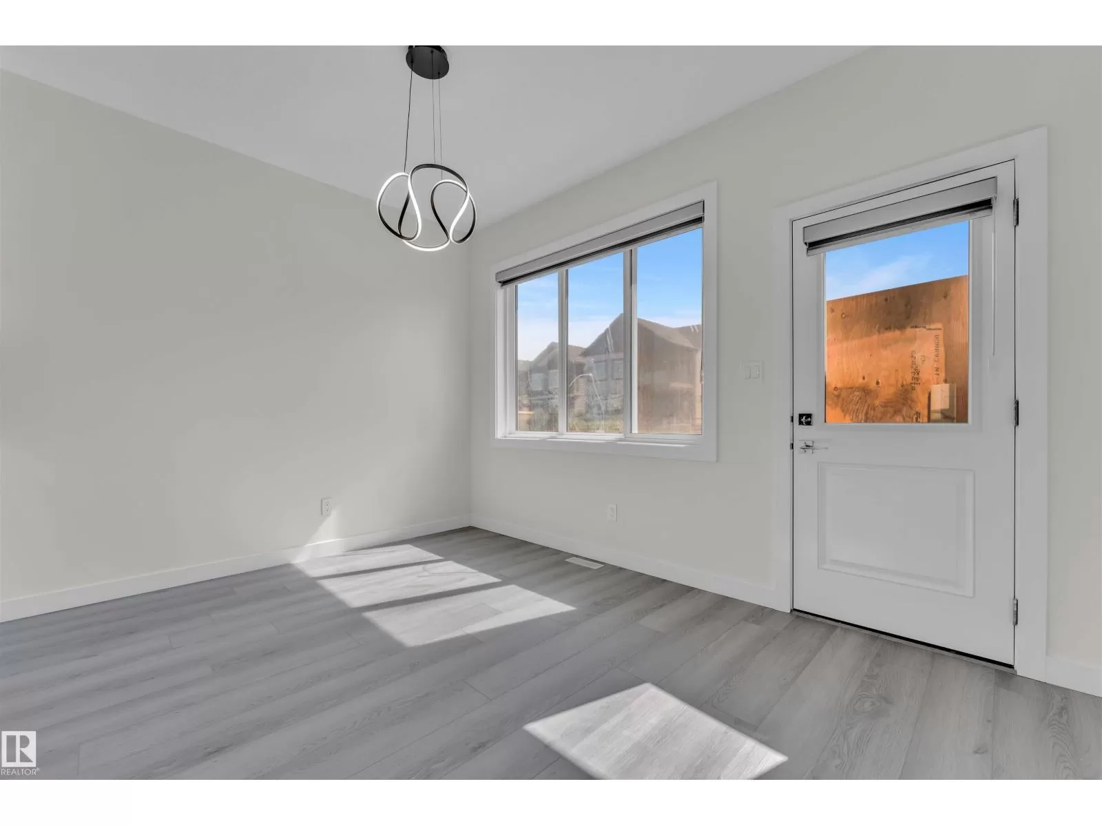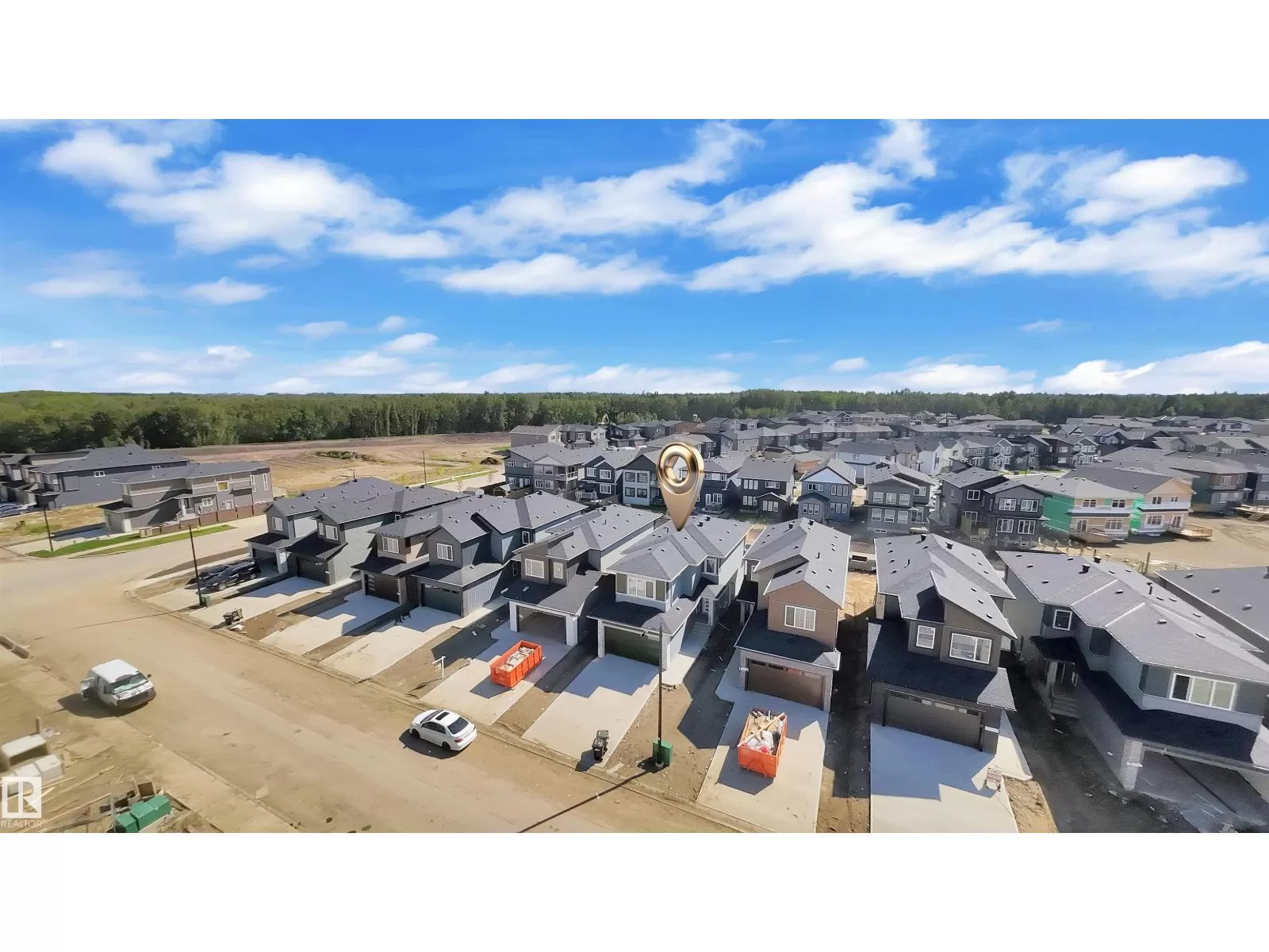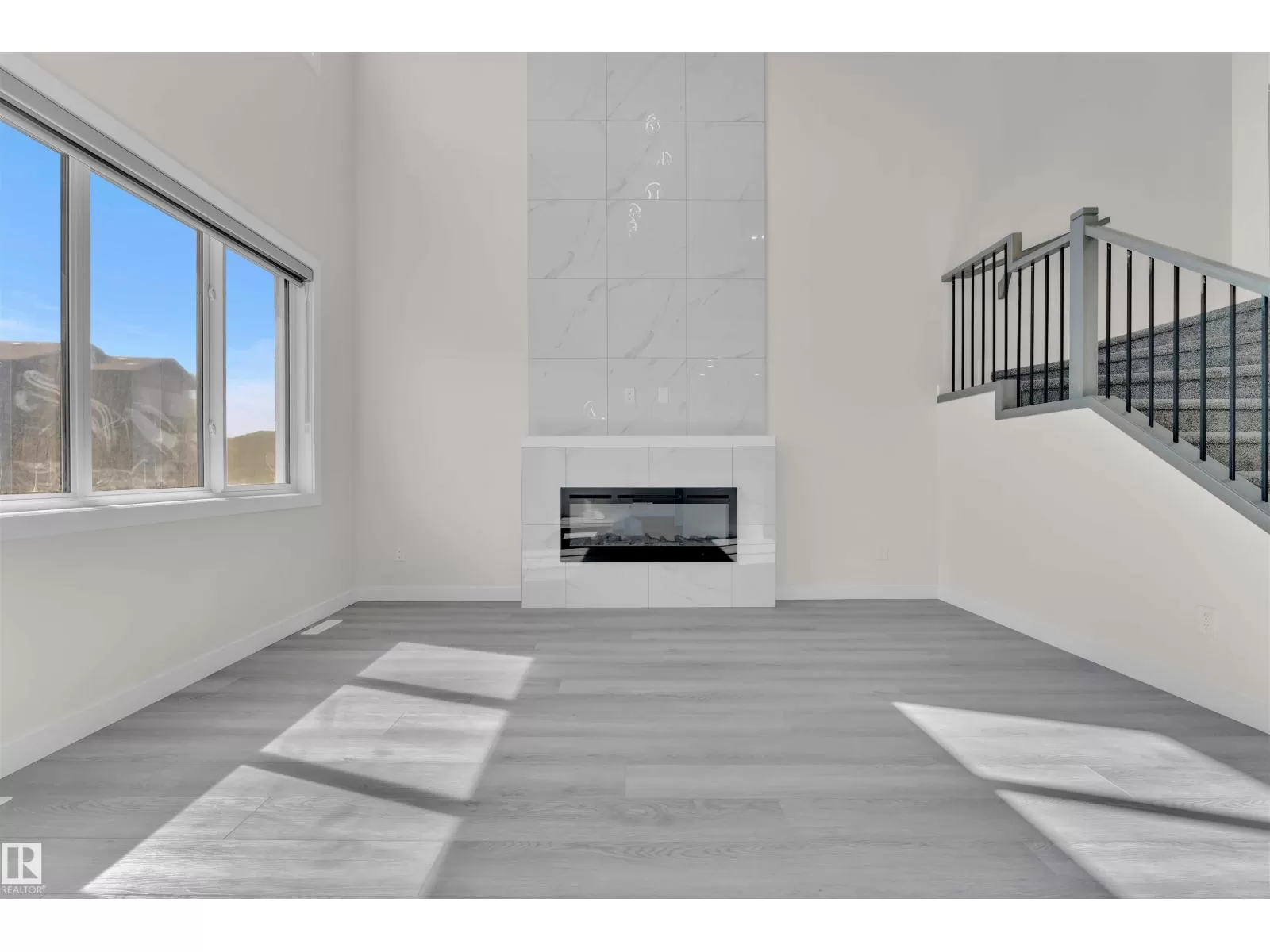 Detached front double car garage home on a regular lot in Fenwyck, backing onto a walking trail. This open-concept layout features a main floor bedroom with closet and full bath, a modern kitchen with quartz countertops and center island, plus a separate spice kitchen. The living room boasts open-to-below ceilings, an electric fireplace, and tile feature wall. Dining nook opens to the backyard. Vinyl flooring throughout main and upper floors, with elegant spindle railings. Upstairs includes a bonus room, laundry, and three bedroomsâprimary with ensuite, walk-in closet, and indent ceiling. Basement has separate side entrance and two windows. Includes all appliances and blinds on main and upper floors. Fenwyck is one of the most sought-after communities, surrounded by 80 acres of preserved forest, offering peaceful natural living near city convenience. Just 11 minutes from Edmonton with direct access to Hwy 16A via Pioneer Roadâideal for first-time buyers or families seeking their forever home. (id:27476)