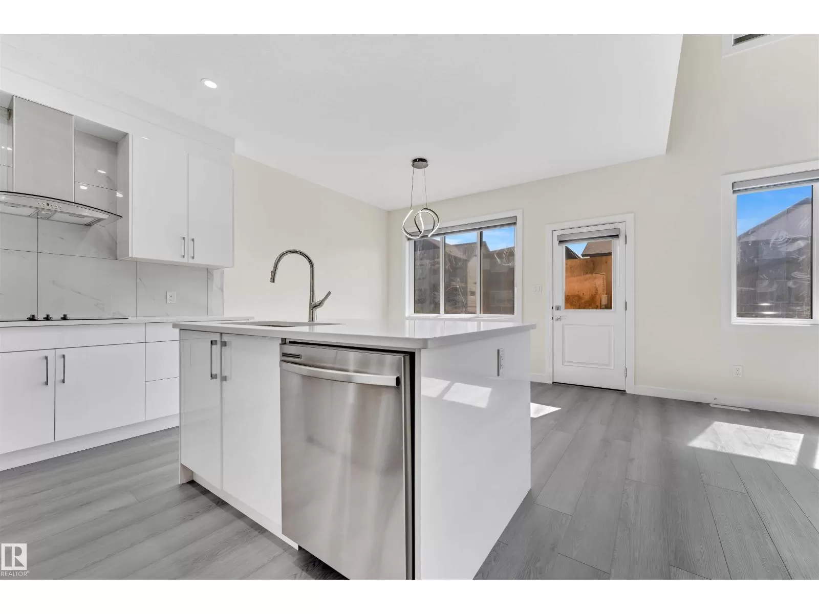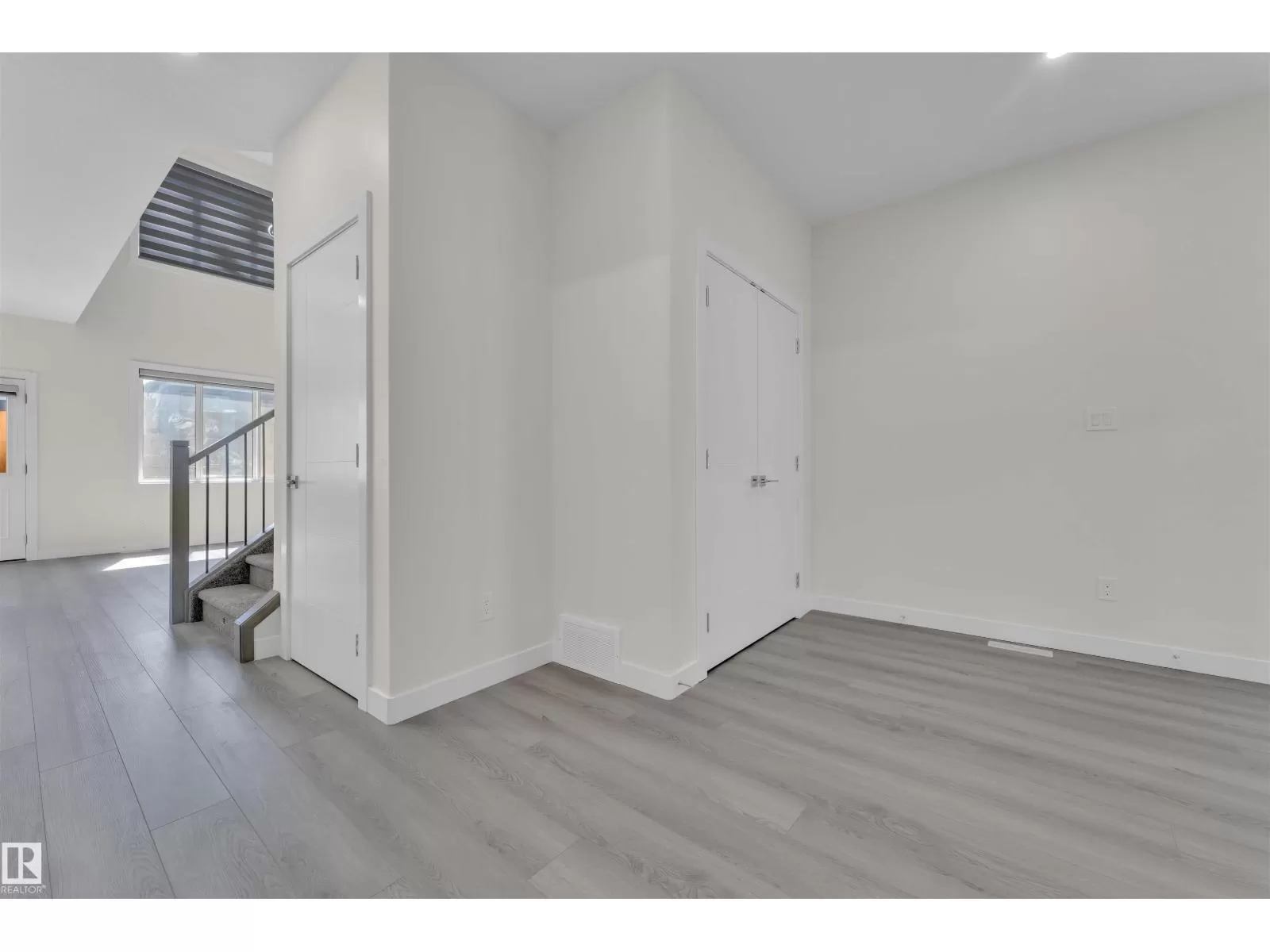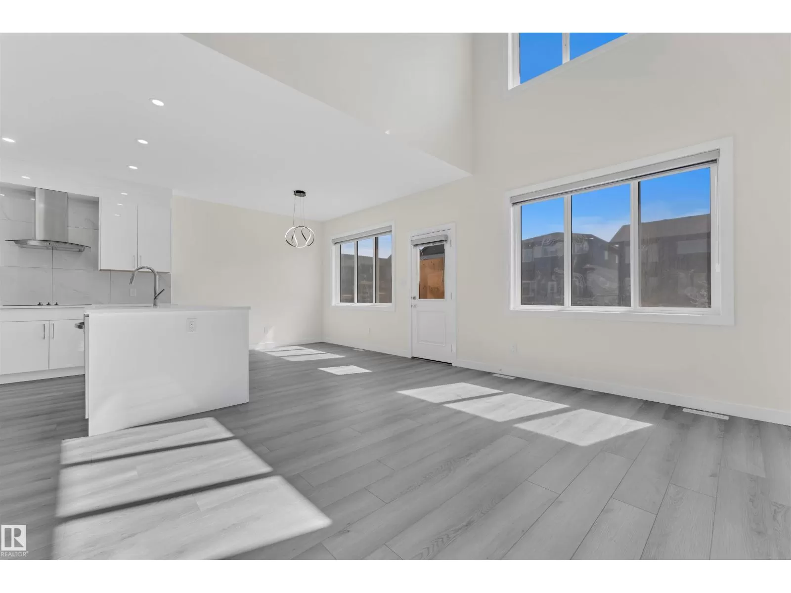 Detached front double car garage home on a regular lot in Fenwyck, backing onto a walking trail. This open-concept layout features a main floor bedroom with closet and full bath, a modern kitchen with quartz countertops and center island, plus a separate spice kitchen. The living room boasts open-to-below ceilings, an electric fireplace, and tile feature wall. Dining nook opens to the backyard. Vinyl flooring throughout main and upper floors, with elegant spindle railings. Upstairs includes a bonus room, laundry, and three bedroomsâprimary with ensuite, walk-in closet, and indent ceiling. Basement has separate side entrance and two windows. Includes all appliances and blinds on main and upper floors. Fenwyck is one of the most sought-after communities, surrounded by 80 acres of preserved forest, offering peaceful natural living near city convenience. Just 11 minutes from Edmonton with direct access to Hwy 16A via Pioneer Roadâideal for first-time buyers or families seeking their forever home. (id:27476)