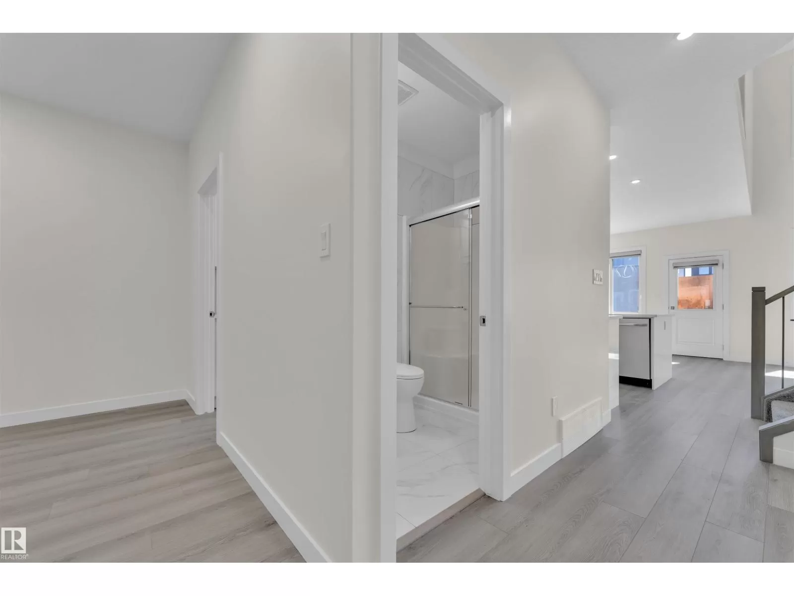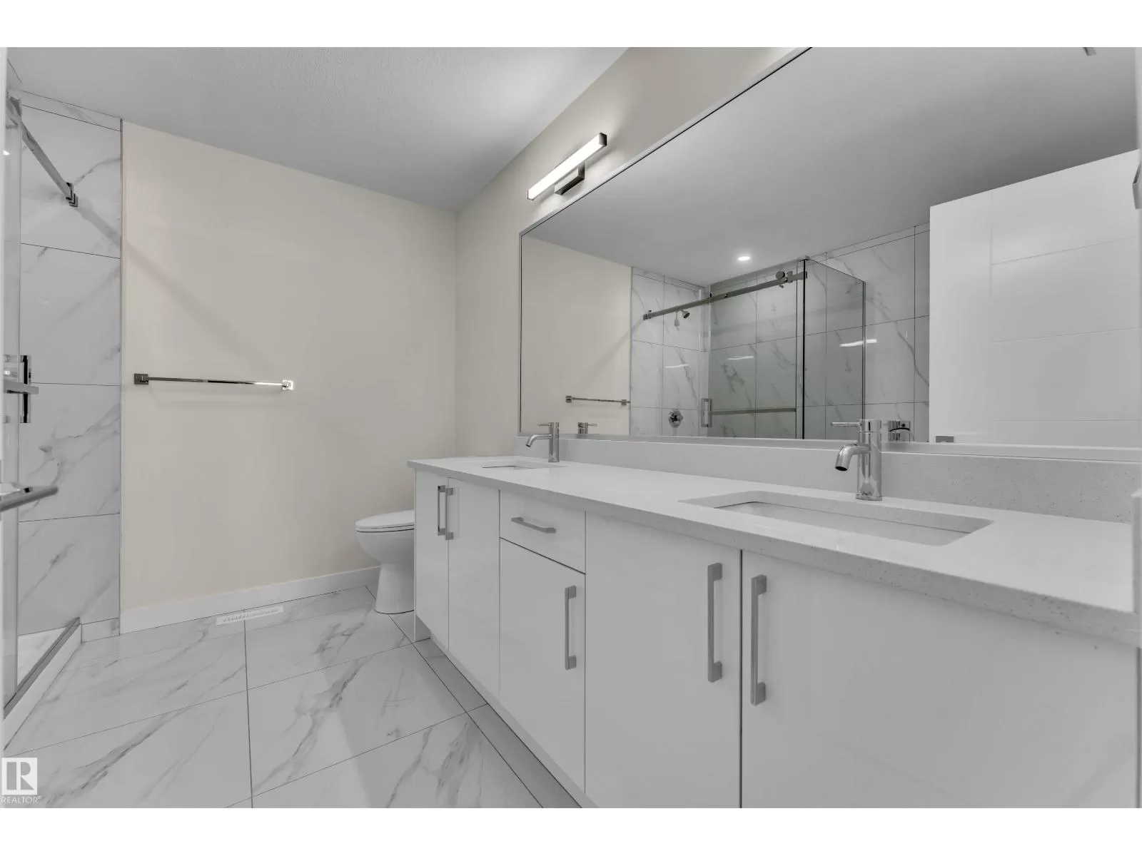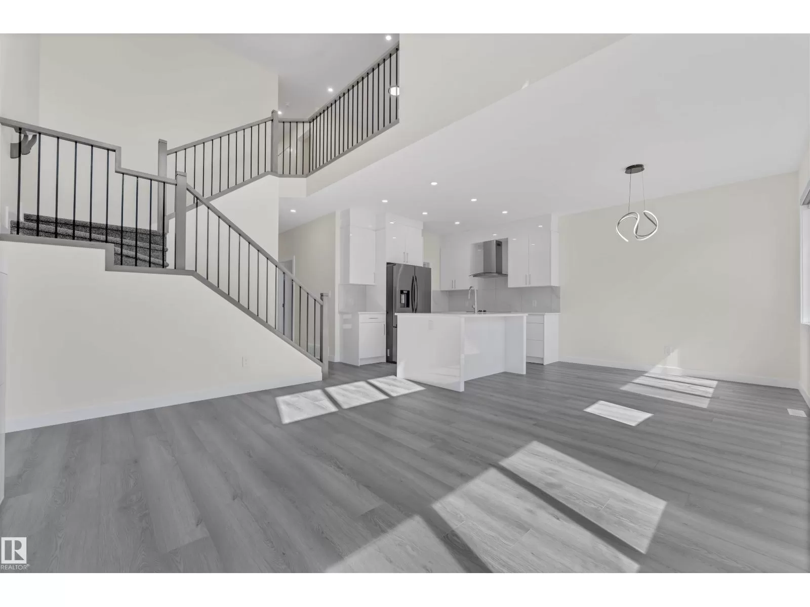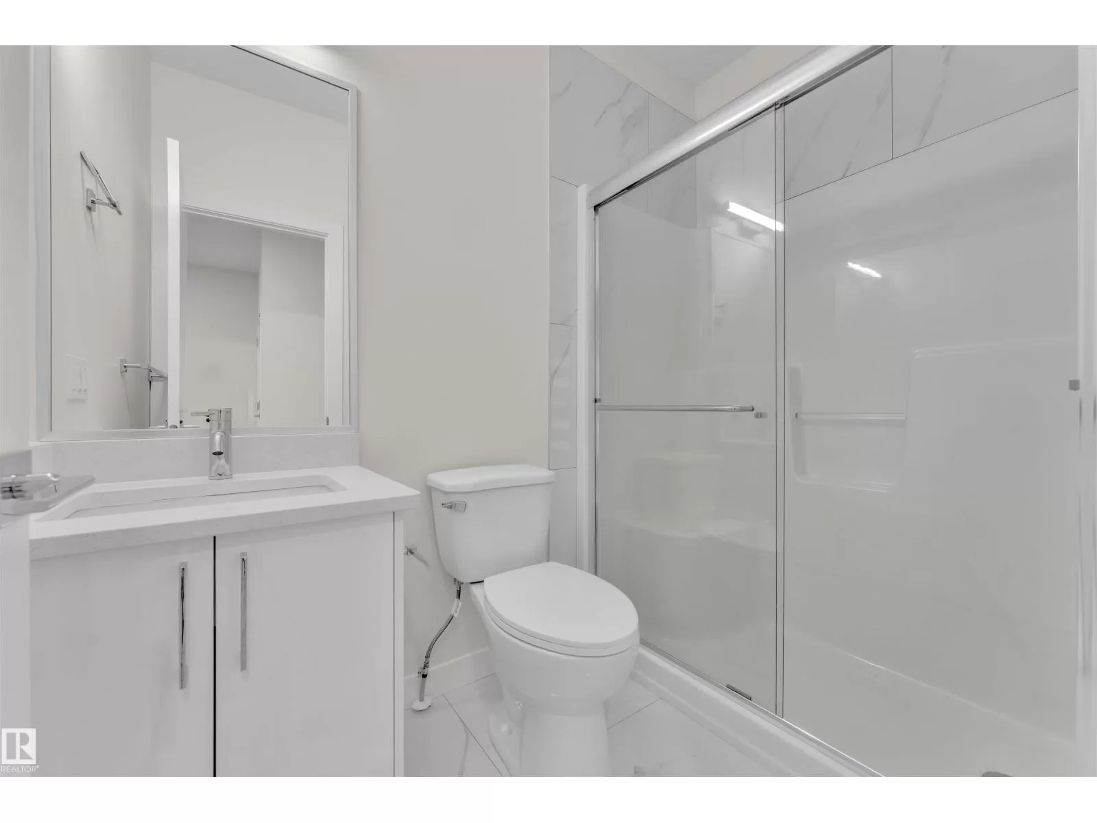 Detached front double car garage home on a regular lot in Fenwyck, backing onto a walking trail. This open-concept layout features a main floor bedroom with closet and full bath, a modern kitchen with quartz countertops and center island, plus a separate spice kitchen. The living room boasts open-to-below ceilings, an electric fireplace, and tile feature wall. Dining nook opens to the backyard. Vinyl flooring throughout main and upper floors, with elegant spindle railings. Upstairs includes a bonus room, laundry, and three bedroomsâprimary with ensuite, walk-in closet, and indent ceiling. Basement has separate side entrance and two windows. Includes all appliances and blinds on main and upper floors. Fenwyck is one of the most sought-after communities, surrounded by 80 acres of preserved forest, offering peaceful natural living near city convenience. Just 11 minutes from Edmonton with direct access to Hwy 16A via Pioneer Roadâideal for first-time buyers or families seeking their forever home. (id:27476)
