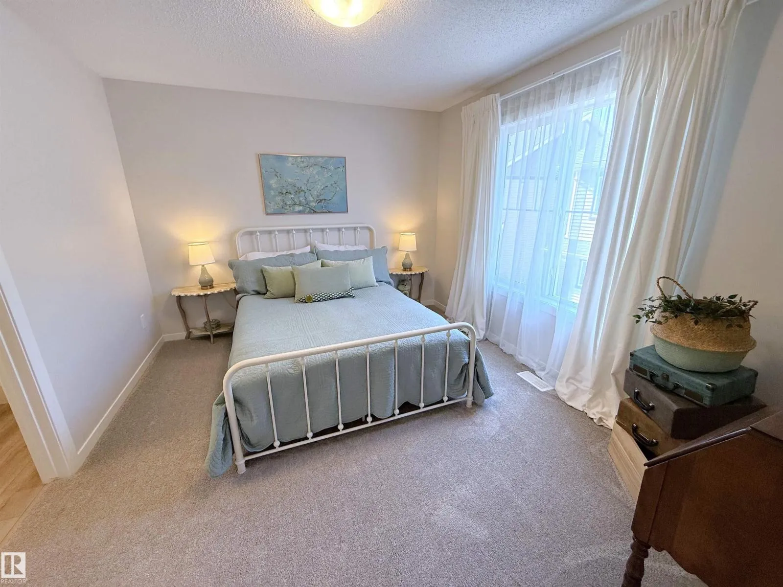 ELEGANCE & CONVENIENCE combine in this 2 bed 2.5 bath EXECUTIVE-STYLE condo with attached heated & insulated double garage (18Wx20L), right next to Heritage Grove Parkâs extensive trail system. This 2024-built 1,277 square foot 2-storey showcases PREMIUM BUILDER UPGRADES including central air conditioning and luxury vinyl plank flooring. Further enhancements feature custom draperies and stylish light fixtures throughout. On the main level: gourmet kitchen with upgraded cabinetry, quartz countertops, premium sink & fixtures, dining area, 2-pc powder room and a bright living room with balcony overlooking the courtyard. Upper level offers TOP FLOOR LAUNDRY and TWO PRIMARY SUITES, each with walk-in closet & full ensuite. Fantastic location near many amenities including the Tri Leisure Centre, with easy access to Jennifer Heil Way & Hwy 16A. Home includes remainder of new home warranty. (id:27476)