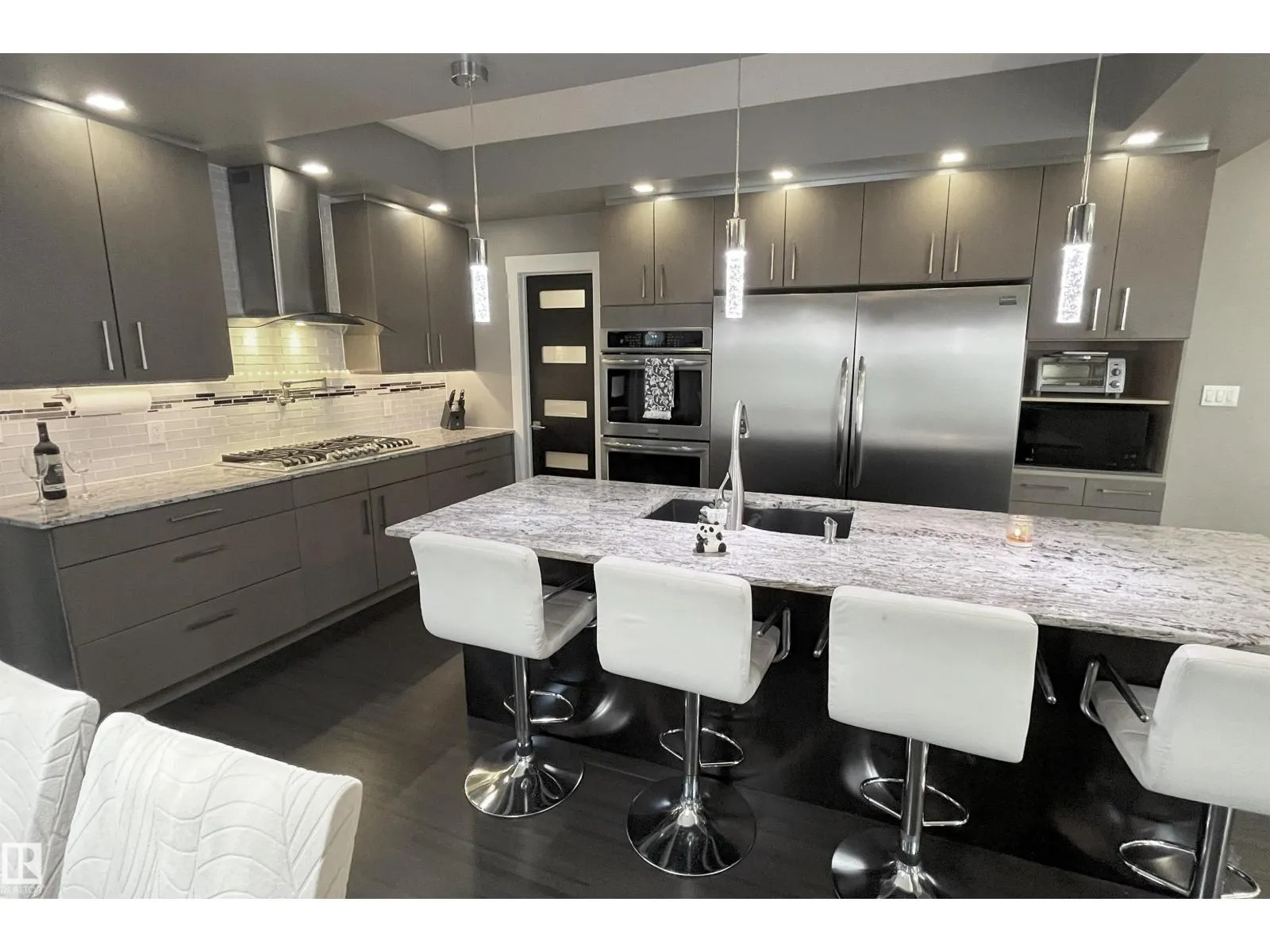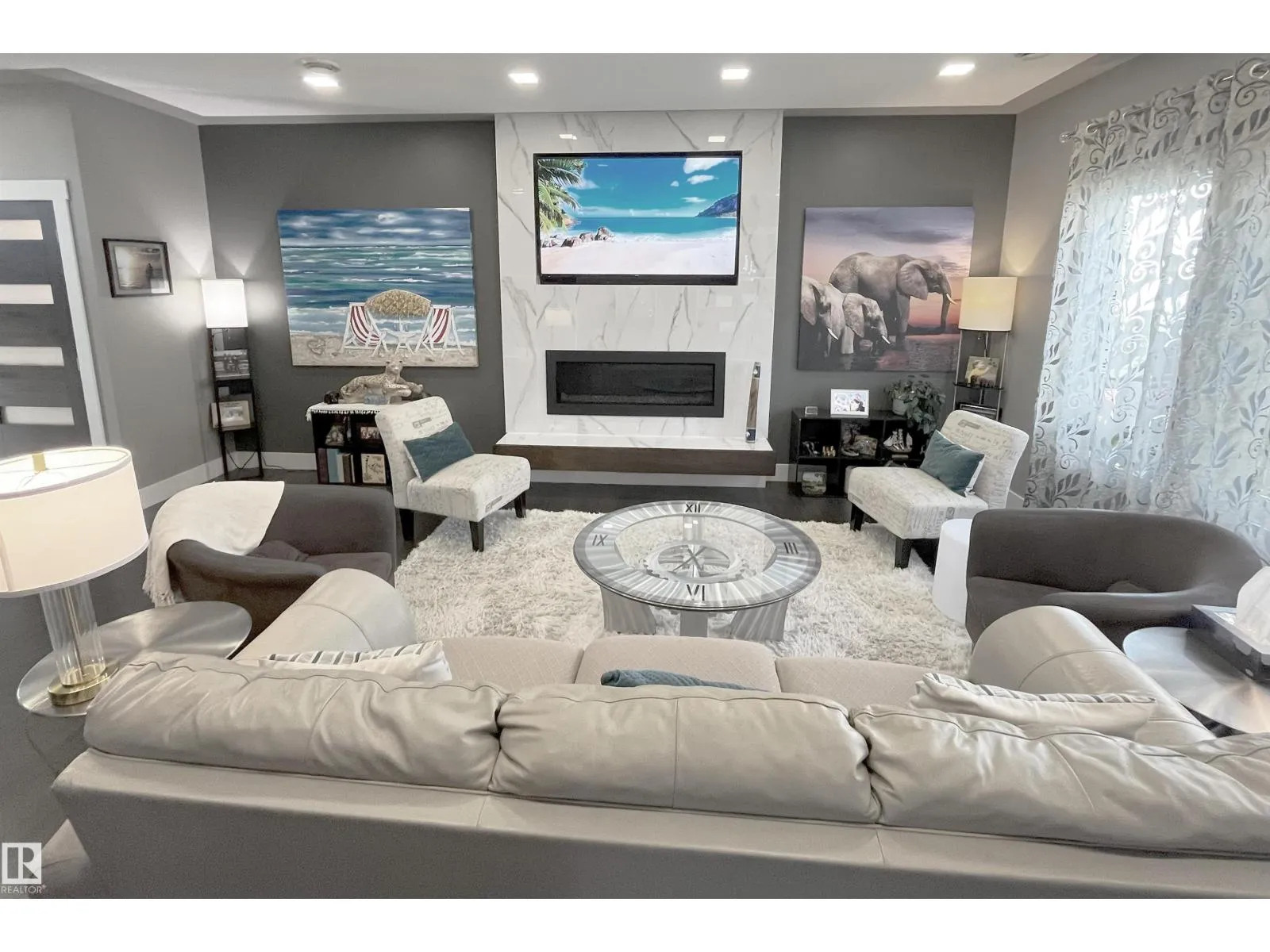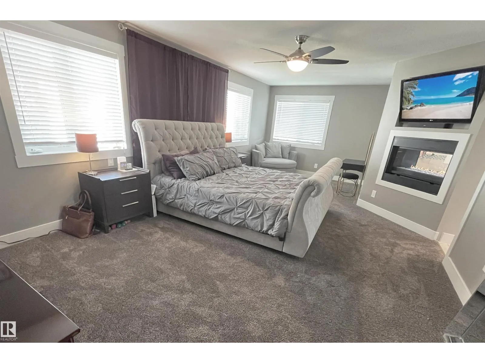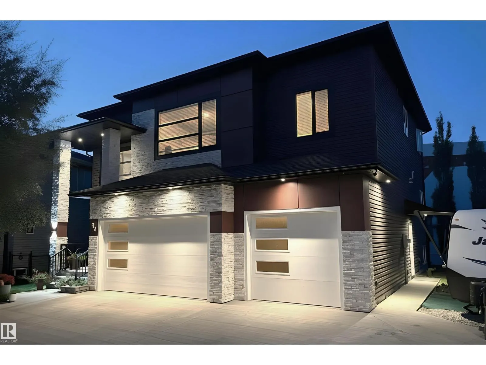 Modern 2,756 sq. ft. two-storey with 1,000 sq. ft. legal basement suite. Main level offers 9 ft. and 12 ft. ceilings, open dining area, and office with storage that could serve as a 7th bedroom. The kitchen includes 7 appliances: fridge, freezer, 2 ovens, gas range, microwave, dishwasher, plus a large walk-through pantry. Upstairs, the primary suite features a fireplace, 4-piece ensuite, walk-in closet with direct laundry access. A second bedroom includes a 3-piece ensuite and walk-in closet, while two additional bedrooms also have walk-in closets. Highlights include high-efficiency furnaces, A/C, HRV, large covered deck, and oversized heated triple garage with 12 ft. ceilings. The legal basement suite has 2 bedrooms, private entrance, large windows, full kitchen with appliances, in-suite laundry, and separate furnace. Exterior features year-round RV parking pad, driveway for up to 7 vehicles, and powered garden shed. (id:27476)