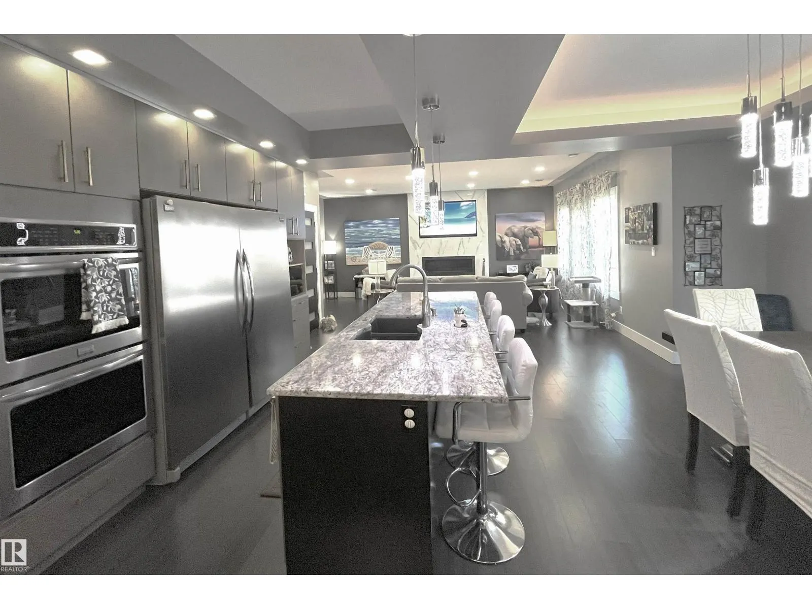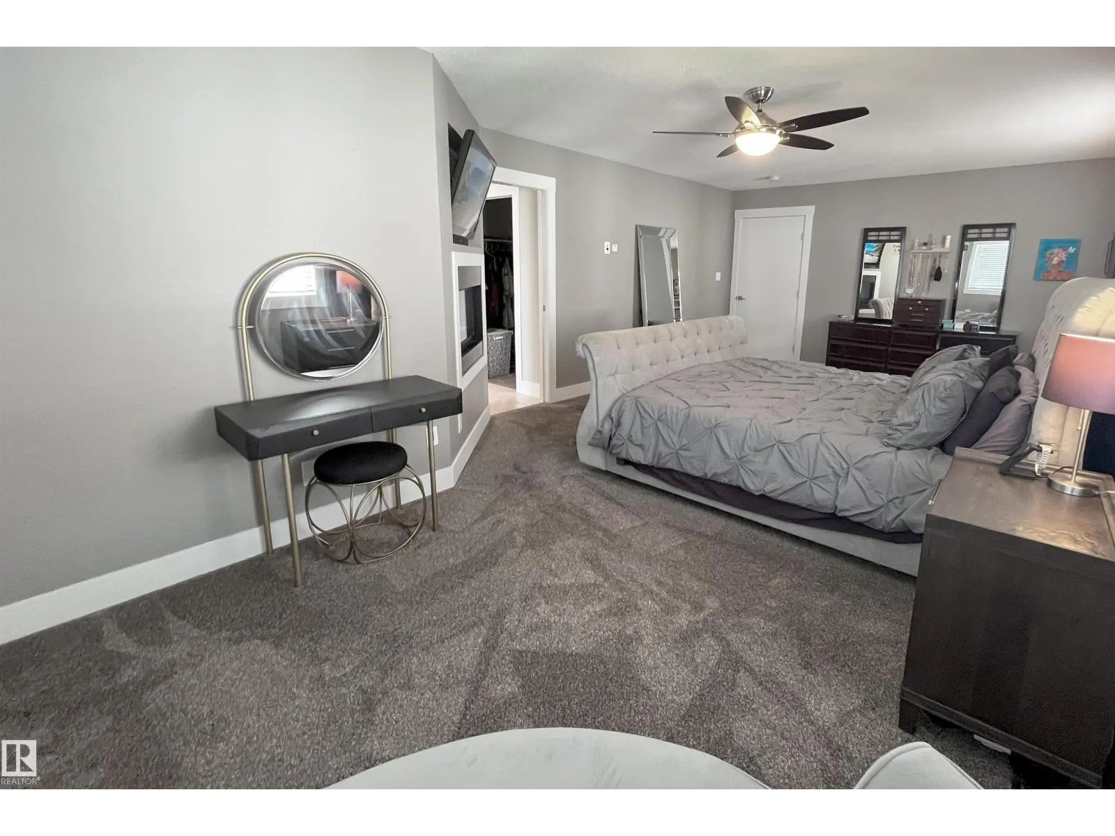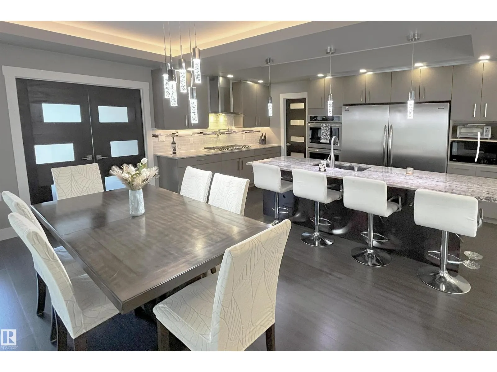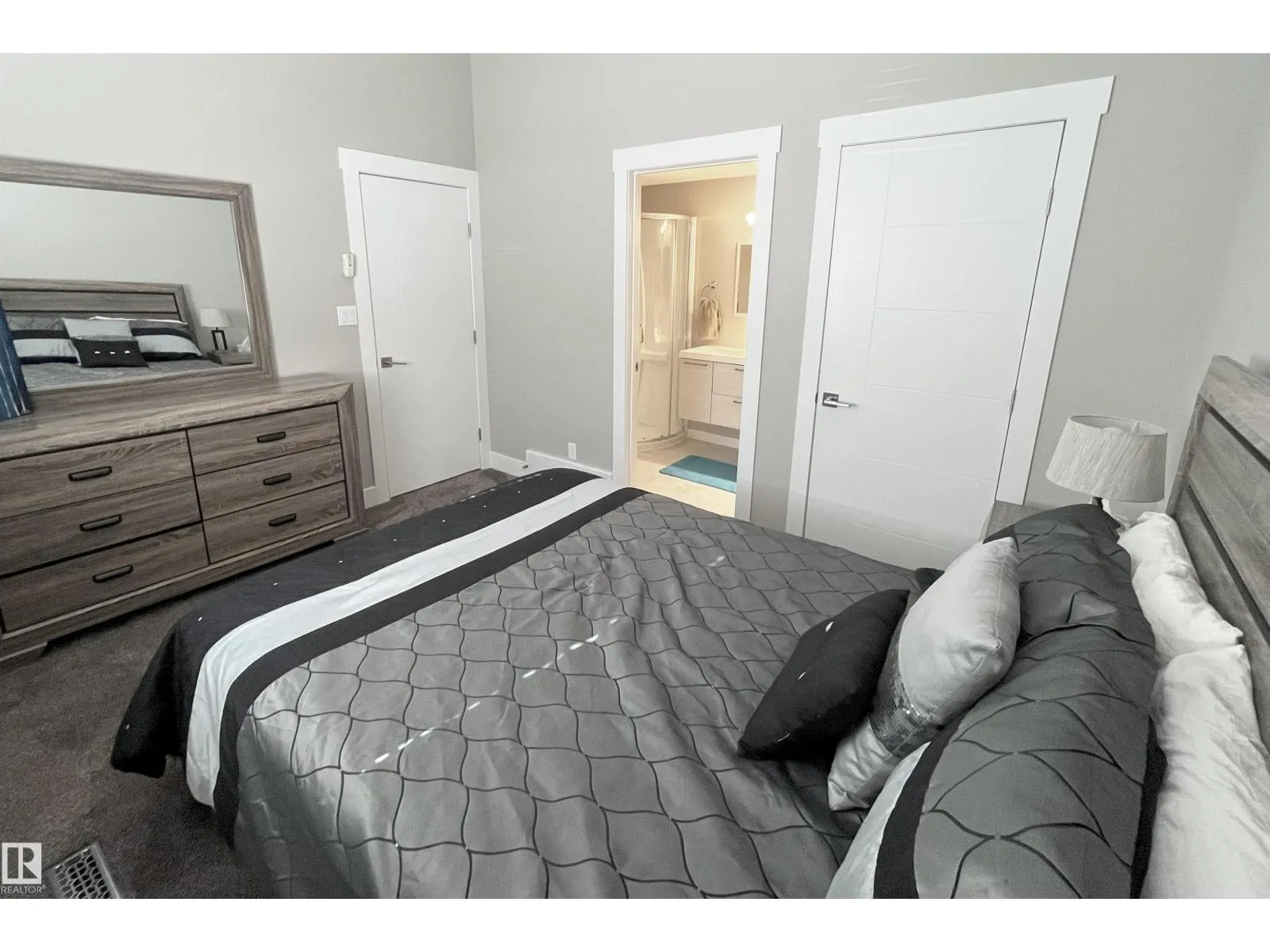 Modern 2,756 sq. ft. two-storey with 1,000 sq. ft. legal basement suite. Main level offers 9 ft. and 12 ft. ceilings, open dining area, and office with storage that could serve as a 7th bedroom. The kitchen includes 7 appliances: fridge, freezer, 2 ovens, gas range, microwave, dishwasher, plus a large walk-through pantry. Upstairs, the primary suite features a fireplace, 4-piece ensuite, walk-in closet with direct laundry access. A second bedroom includes a 3-piece ensuite and walk-in closet, while two additional bedrooms also have walk-in closets. Highlights include high-efficiency furnaces, A/C, HRV, large covered deck, and oversized heated triple garage with 12 ft. ceilings. The legal basement suite has 2 bedrooms, private entrance, large windows, full kitchen with appliances, in-suite laundry, and separate furnace. Exterior features year-round RV parking pad, driveway for up to 7 vehicles, and powered garden shed. (id:27476)