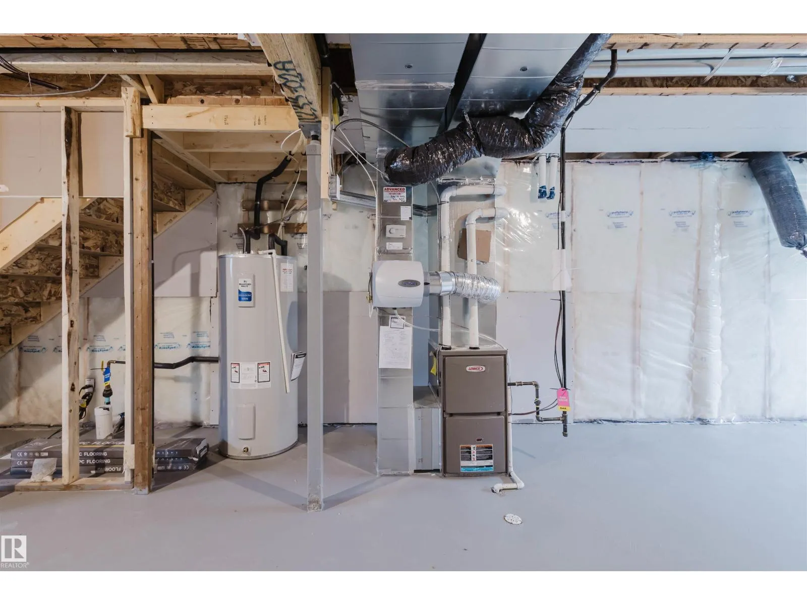 Discover Your Dream Home in Copperhaven, Spruce Grove. This 3 bedroom, 2.5 bathroom duplex offers an open-concept main floor with soaring 9â ceilings, and half bath. The upgraded kitchen boasts quartz countertops, upgraded cabinets, a pantry, gas line to stove, and a waterline to the fridge for added convenience. Upstairs, youâll find a versatile flex area, a spacious laundry room, a full 4-piece bathroom, and 3 generously sized bedrooms. The master suite is a private retreat, complete with a walk-in closet and ensuite. The separate side entrance and legal suite rough in's are an added bonus! Other features include FULL LANDSCAPING, APPLIANCES INCLUDED (may not be as pictured), unfinished basement, high-efficiency furnace, and triple-pane windows. Buy with confidence. Built by Rohit. QUICK POSSESSION! Photos may differ from actual property. No shower wands. (id:27476)