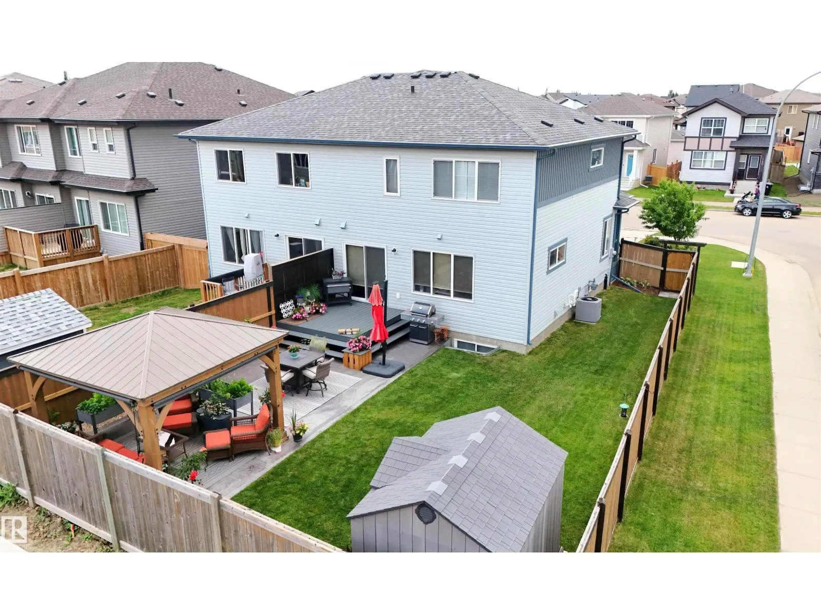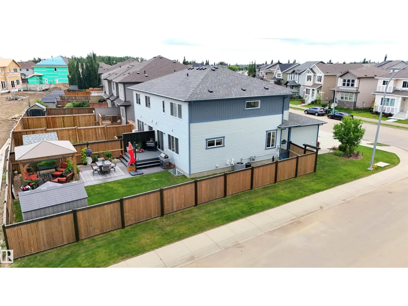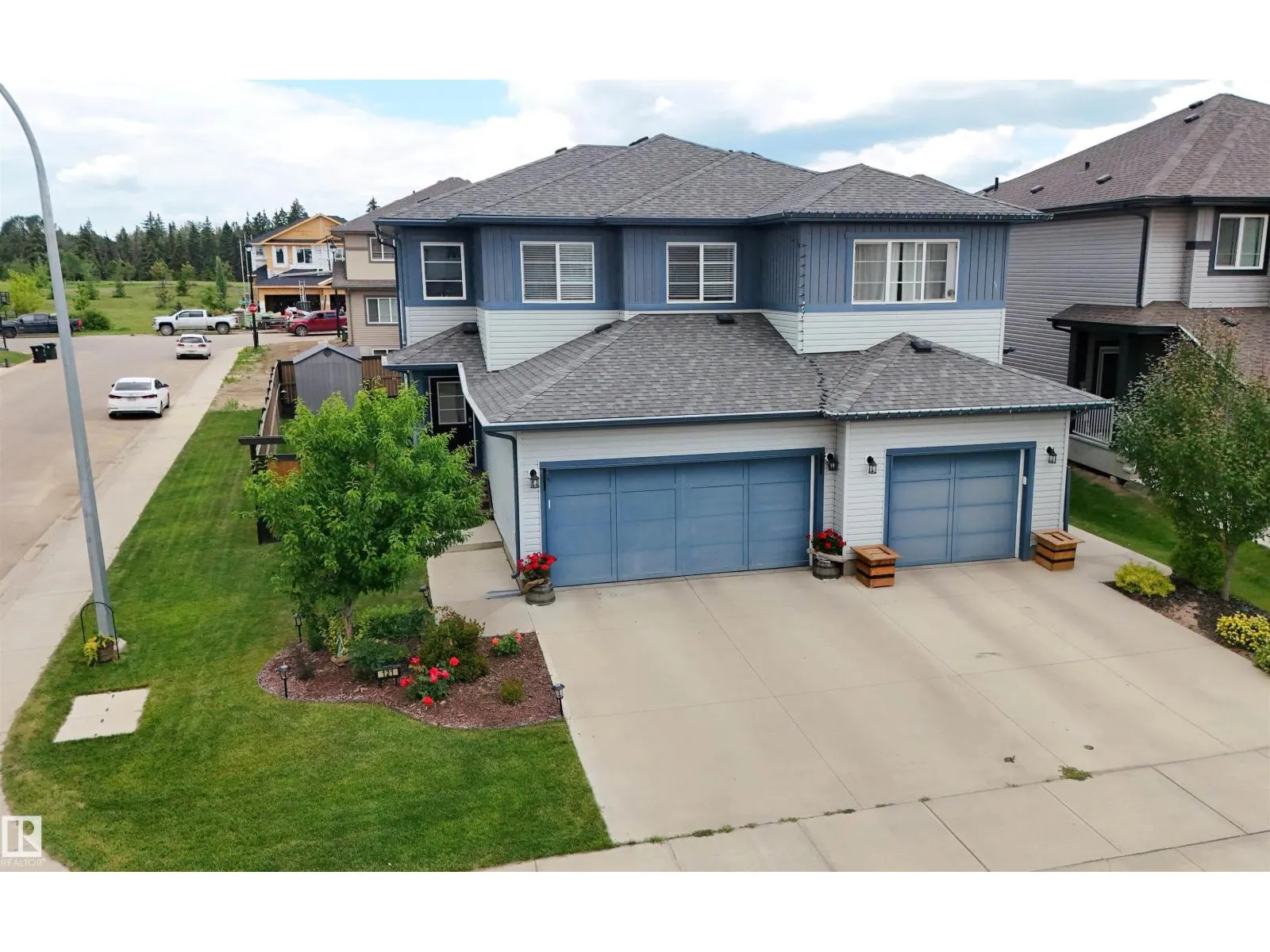 2018-built half duplex with attached double garage (19Wx24L, insulated) steps to walking trails & Atim Creek Natural Area in Harvest Ridge. This beautiful 1,600 square foot (plus full basement) home features central air conditioning, TOP FLOOR LAUNDRY room and a fantastic open floor plan. On the main level: 2-piece powder room, spacious living room, dining room with deck access and gourmet kitchen with granite counters, eat-up island and corner pantry. Upstairs: 2 full bathrooms and 3 bedrooms including the ownerâ suite with walk-in closet and 4-piece ensuite. Finished basement with 4-piece bathroom and a large family room that is pre-wired with projector lines. Fantastic back yard; fully fenced, landscaped, deck, huge patio with gazebo & storage shed. No condo fees or HOA fees. Great location near schools, Tri Leisure Centre and easy access to Yellowhead Highway. Must see! (id:27476)