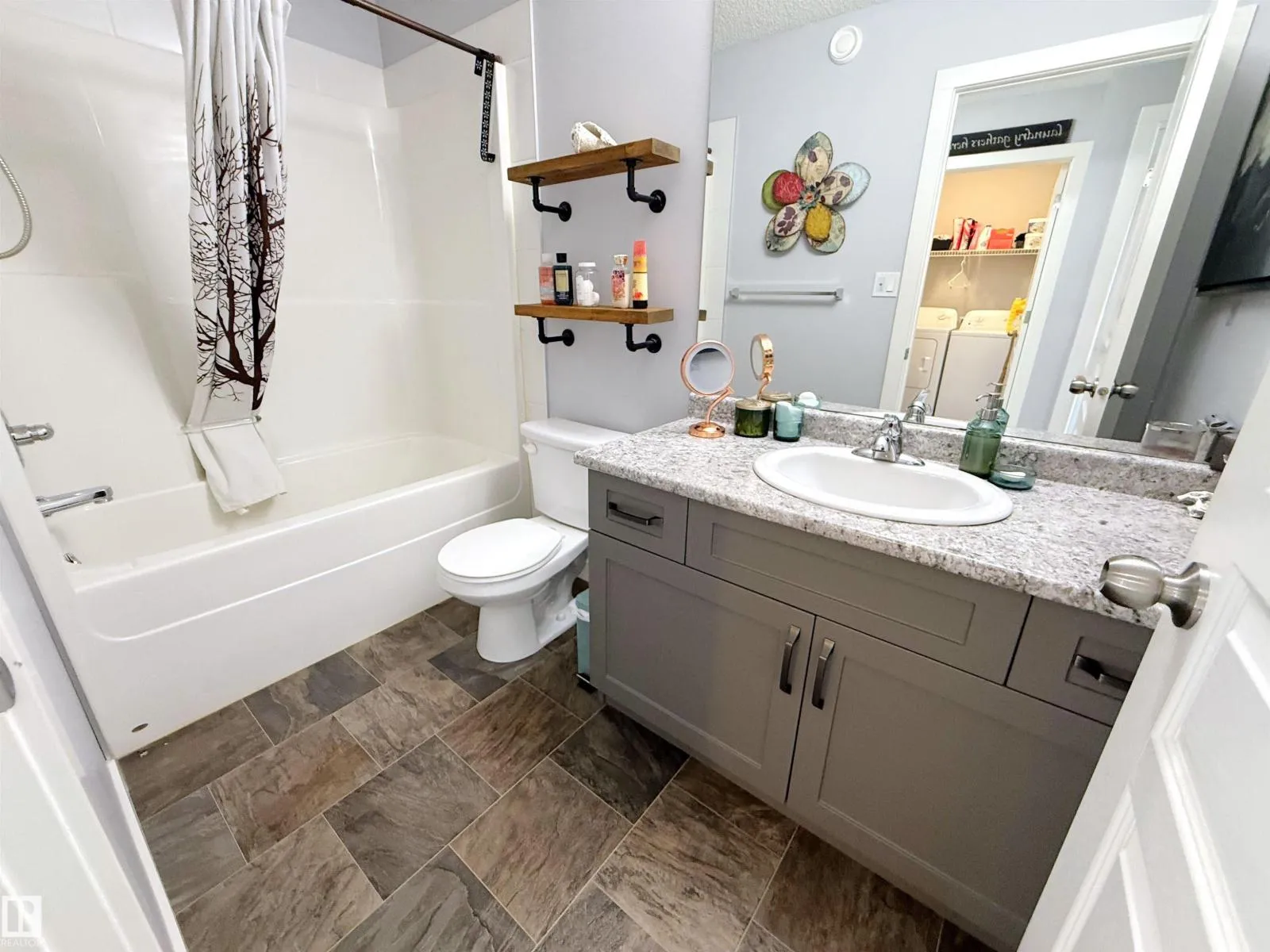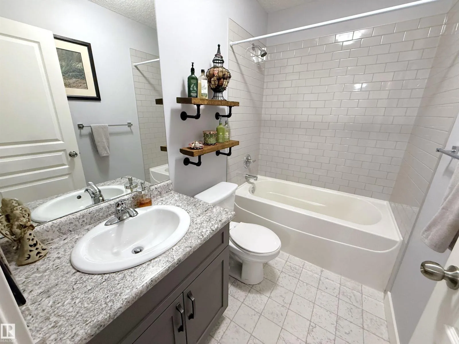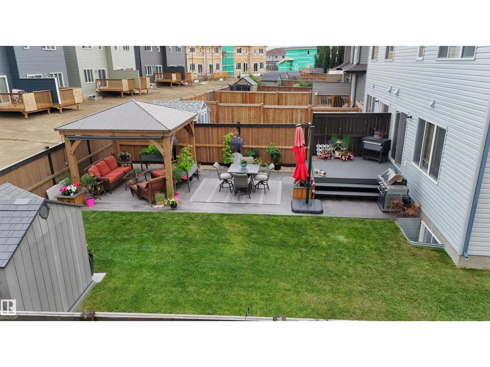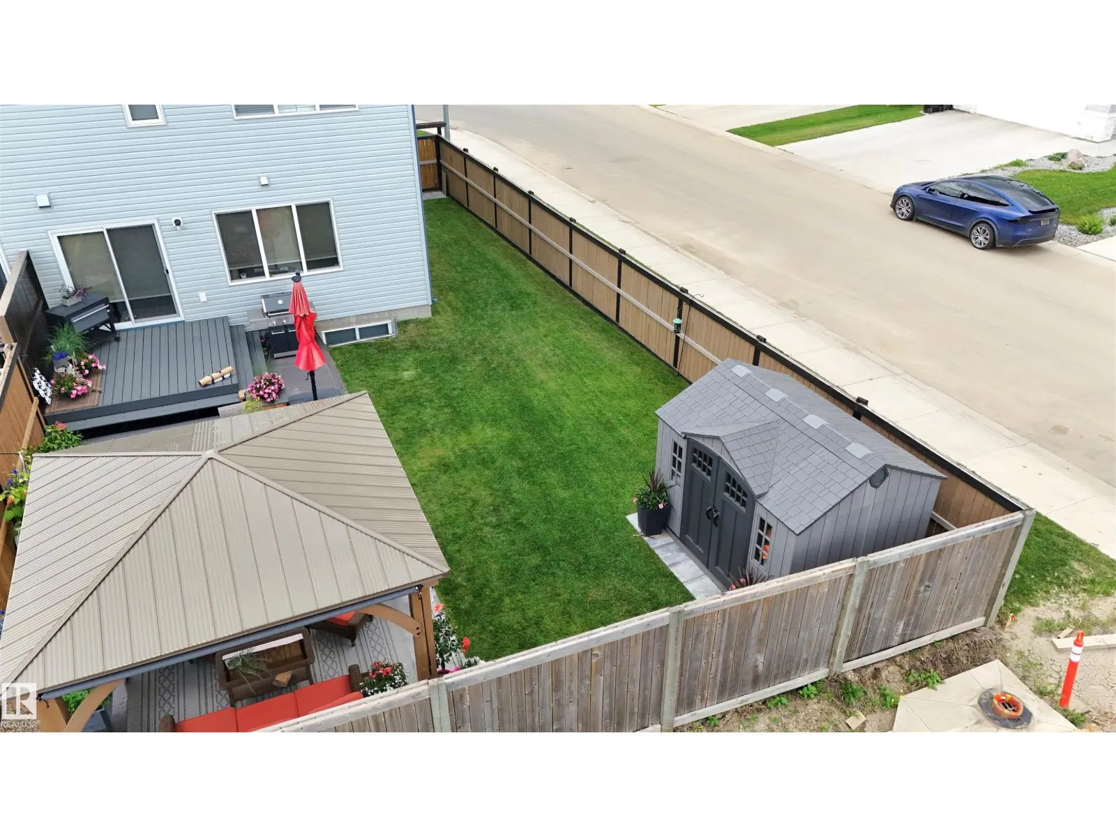 2018-built half duplex with attached double garage (19Wx24L, insulated) steps to walking trails & Atim Creek Natural Area in Harvest Ridge. This beautiful 1,600 square foot (plus full basement) home features central air conditioning, TOP FLOOR LAUNDRY room and a fantastic open floor plan. On the main level: 2-piece powder room, spacious living room, dining room with deck access and gourmet kitchen with granite counters, eat-up island and corner pantry. Upstairs: 2 full bathrooms and 3 bedrooms including the ownerâ suite with walk-in closet and 4-piece ensuite. Finished basement with 4-piece bathroom and a large family room that is pre-wired with projector lines. Fantastic back yard; fully fenced, landscaped, deck, huge patio with gazebo & storage shed. No condo fees or HOA fees. Great location near schools, Tri Leisure Centre and easy access to Yellowhead Highway. Must see! (id:27476)