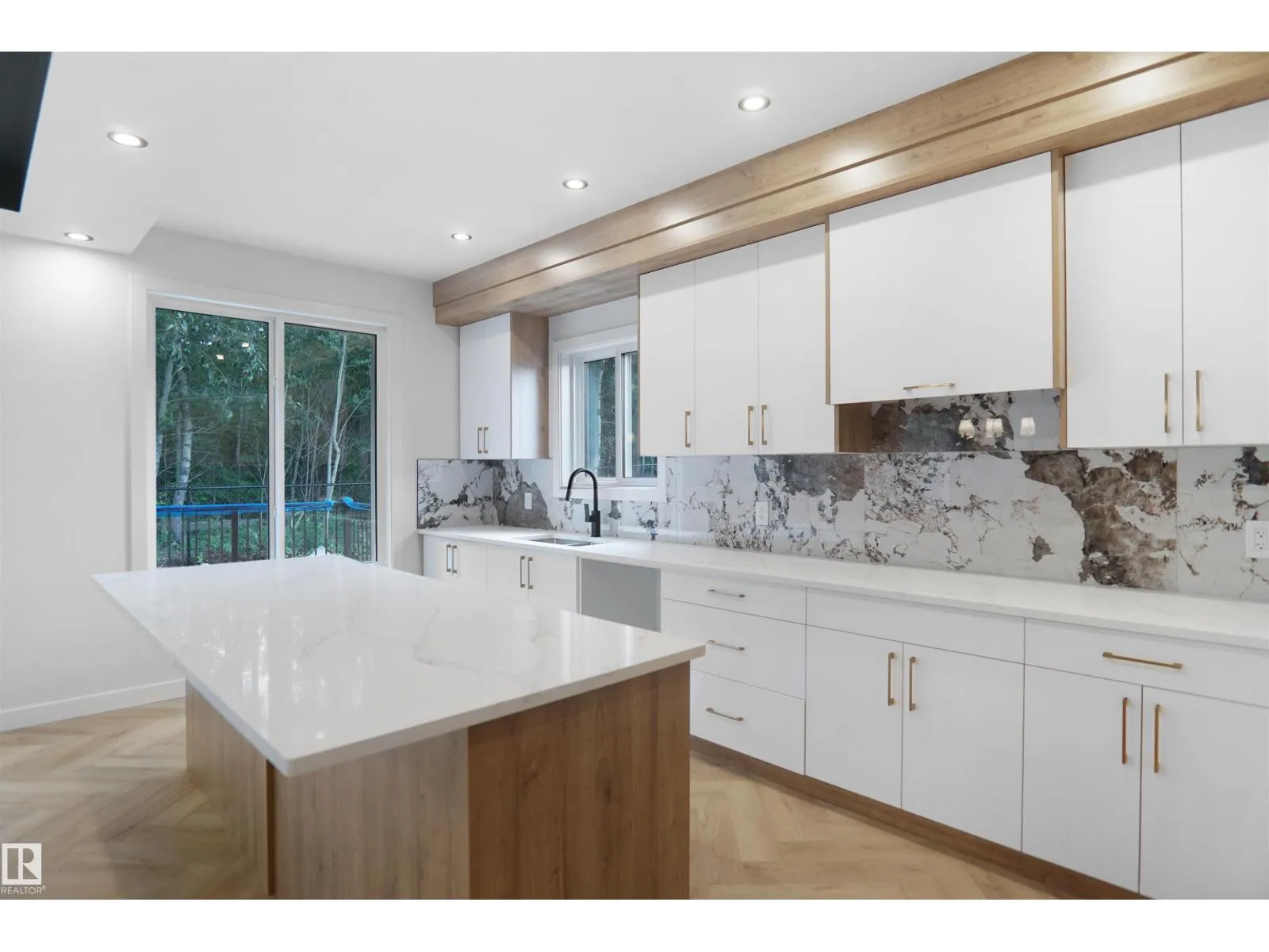 UPGRADED HOME BACKING GREENSPACE IN THE COMMUNITY OF MCLAUGHLIN! This home boasts 28 ft Long Deck with 4 bedrooms, 3 full baths, bonus room & 9ft ceilings on all three levels. Main floor offers vinyl plank flooring, bedroom/den, family room with 18ft ceiling, fireplace. Kitchen, with modern high cabinetry, quartz countertops, island & BUTLERS PANTRY/SPICE KITCHEN, is made for cooking family meals and entertaining. Spacious dinning area with ample sunlight is perfect for get togethers. The 3 piece bath finishes the main level. Walk up stairs to master bedroom with 5 piece ensuite & spacious walk in closet, 2 bedrooms with walk in closets, full bath, laundry and bonus room. Unfinished basement with separate entrance and roughed in bathroom is waiting for creative ideas. Public transit to Edmonton, & more than 40 km of trails, your dream home home awaits. Includes: DECK/TRIPLE PANE WINDOWS/ WIRELESS SPEAKERS/ GAS HOOKUP ON DECK (id:27476)