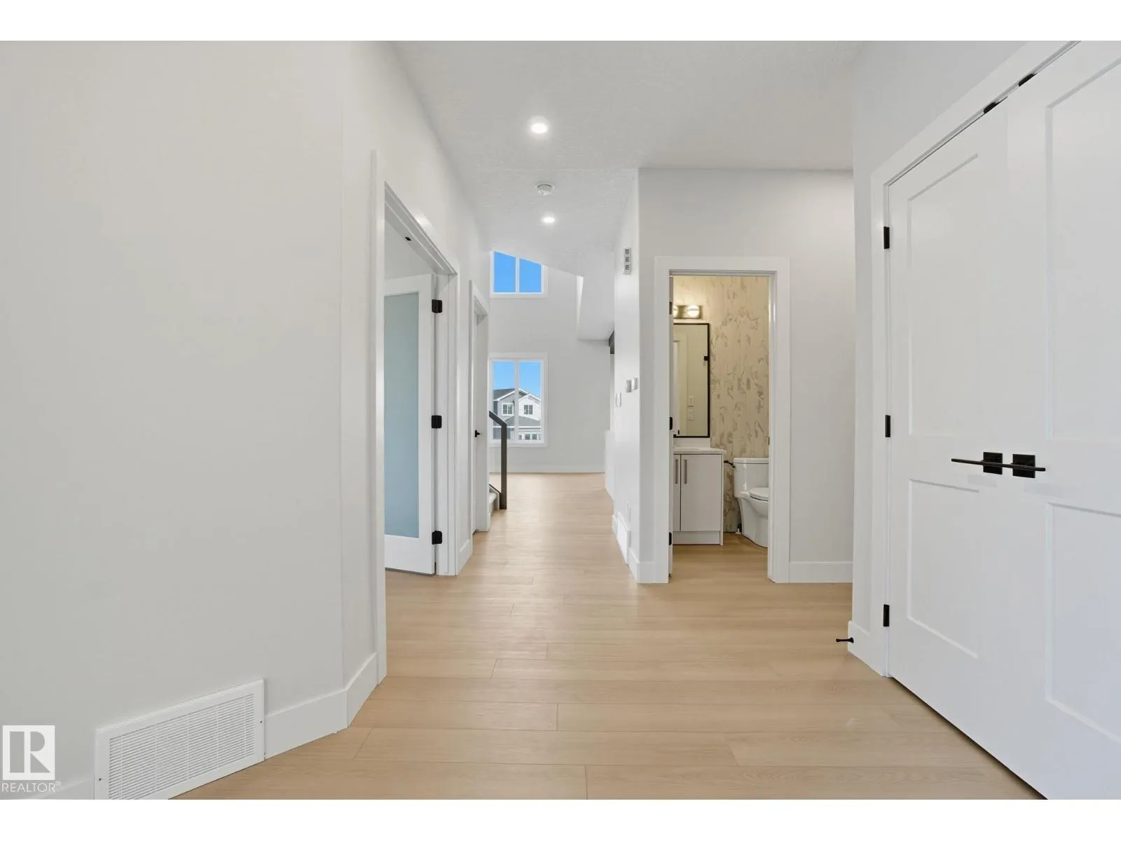 Fully upgraded Sunnyview Home with 4 bedrooms and 3 full bathrooms. TRIPLE car garage w/huge driveway. This stunning home offers a main floor bedroom and full bathroom. The spacious open to below great room features a beautiful accent wall with electric fireplace. The upgraded kitchen boasts sleek ceiling height cabinetry, a walkthrough pantry and a nook with a built-in beverage station. The mudroom offers double coat closets w/a built in bench. A glass railing staircase with maple handrail and step lighting leads to the upper level central bonus room. The primary suite showcases a coffered ceiling and barn door entry to a spa like en-suite with double vanity, jacuzzi, custom glass-enclosed shower, and a WIC with MDF shelving. 2 additional bedrooms share a 4-piece bathroom. Finished with modern upgrades and quality craftsmanship throughout. Features, 3 gas lines, quartz, designer lighting pkg, plush carpet, accent walls, garage w/drain and hot/cold water lines. SEPARATE side entrance to the basement. (id:27476)