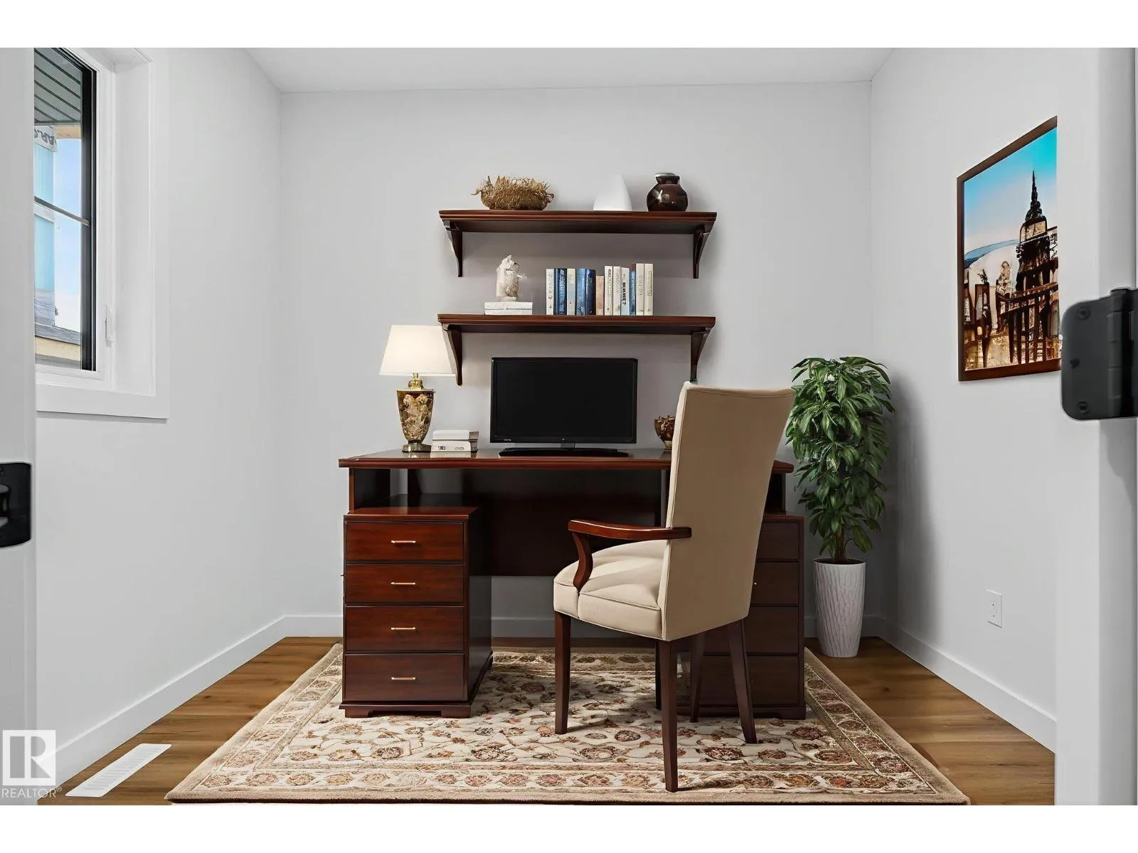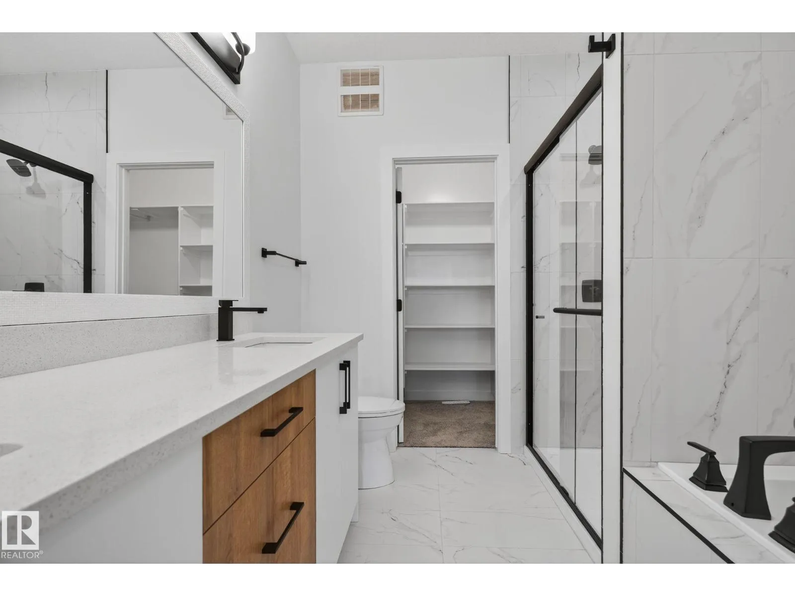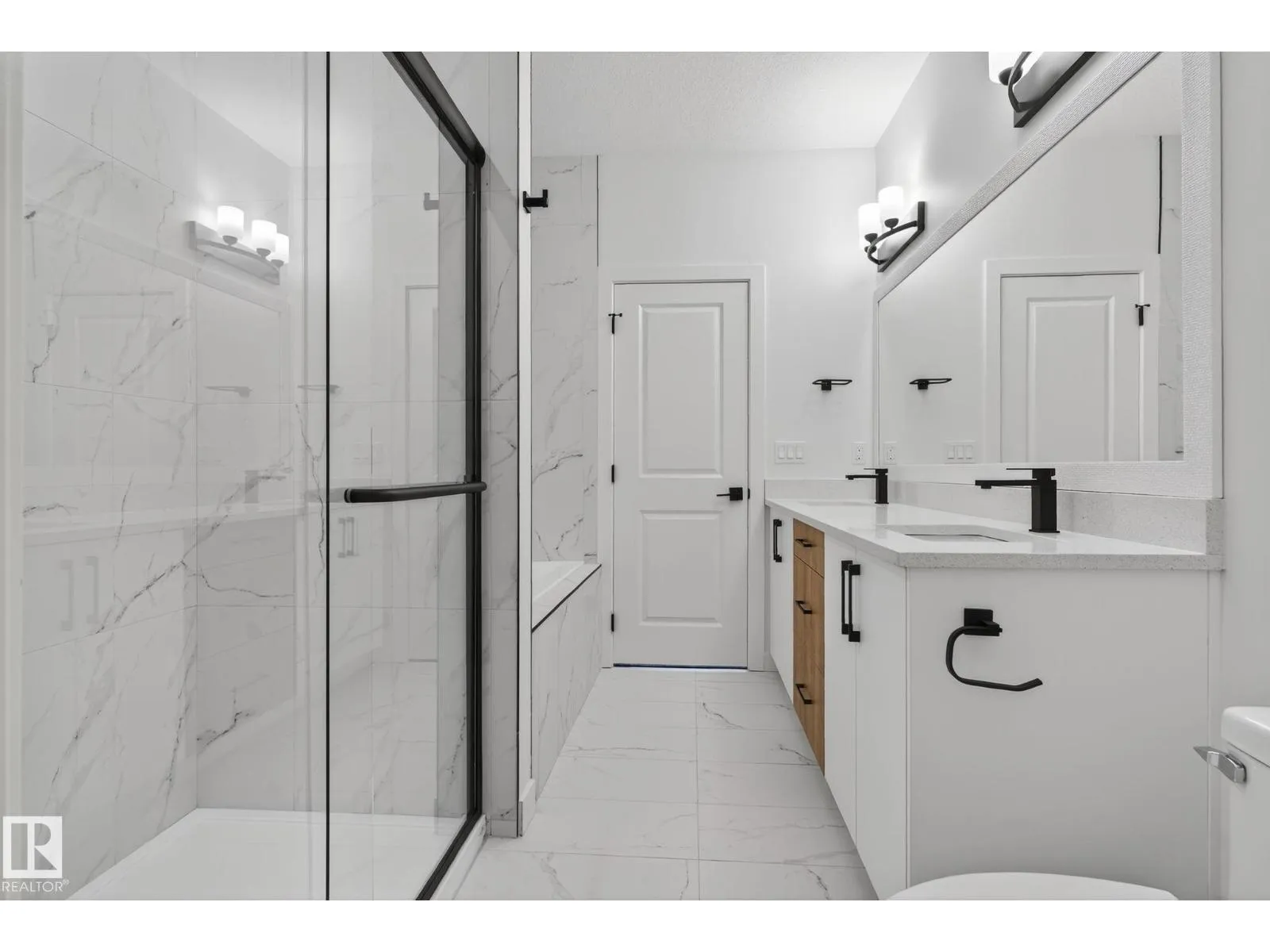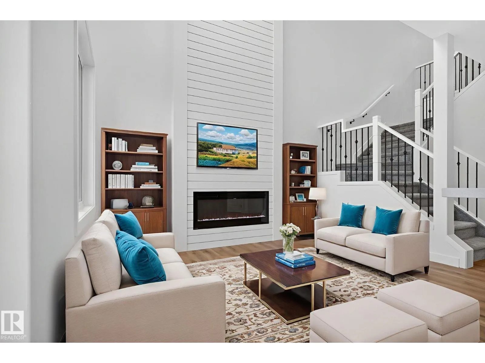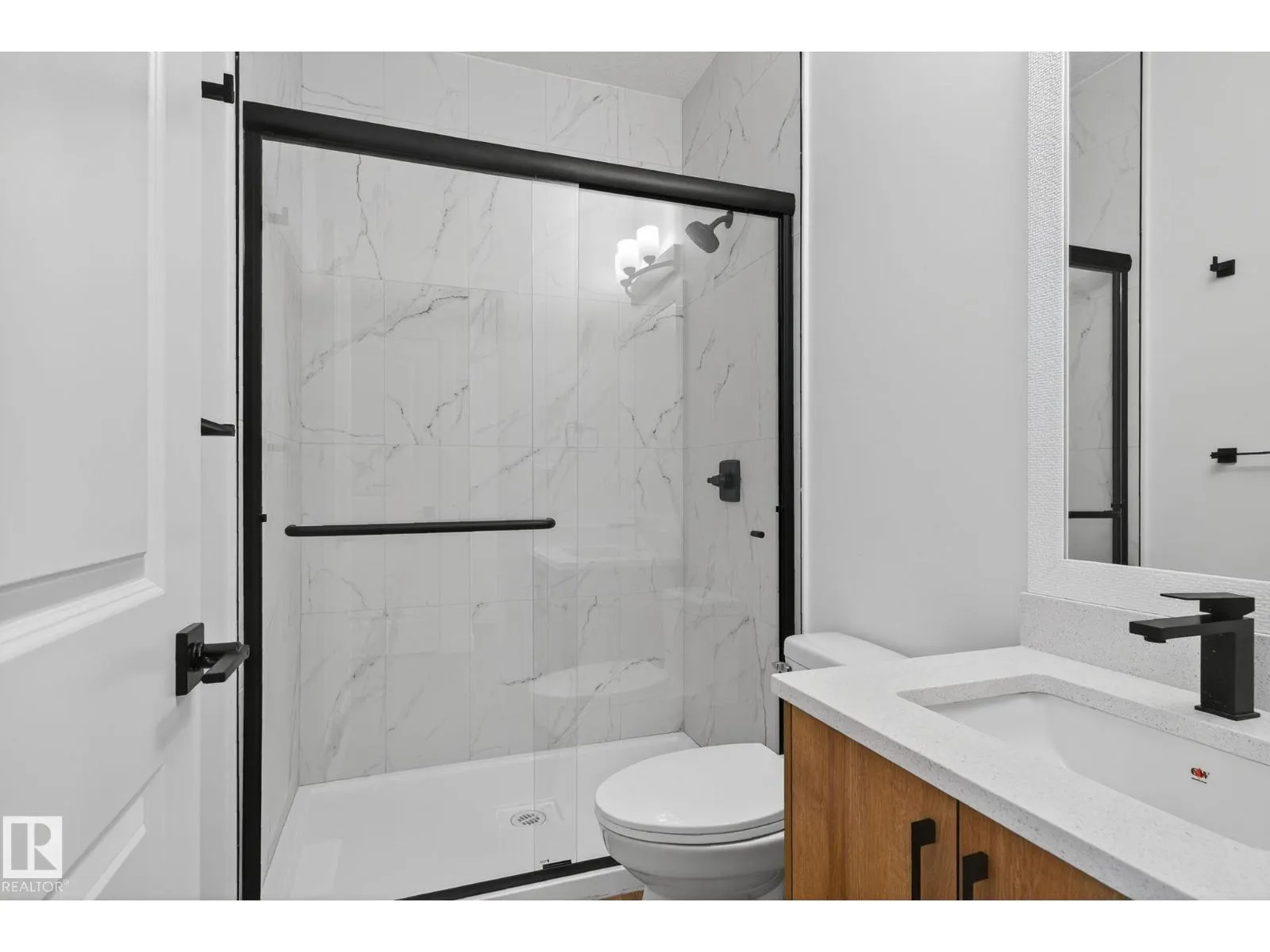Welcome to this stunning 1726 sq. ft. half duplex in the sought-after community of Fenwyck, Spruce Grove â masterfully crafted by Victory Homes. Double attached garage with oversized driveway. Main floor den with full bathroom. The open-concept layout is highlighted by the open-to-above living room, complete with an electric fireplace with feature wall and large windows that flood the space with natural light. Kitchen with central island, ceiling-height cabinets and quartz countertops. Upstairs, enjoy the added comfort of a bonus room, ideal for family lounging or a media area. The spacious primary suite includes a 5-piece ensuite with a double vanity, tiled shower, bathtub, and complete with a walk-in closet. Additional 2 well-sized bedrooms, a 3-piece bathroom, and laundry complete this floor. Separate side entrance to the basement. Backing onto green space. Close to amenities. (id:27476)