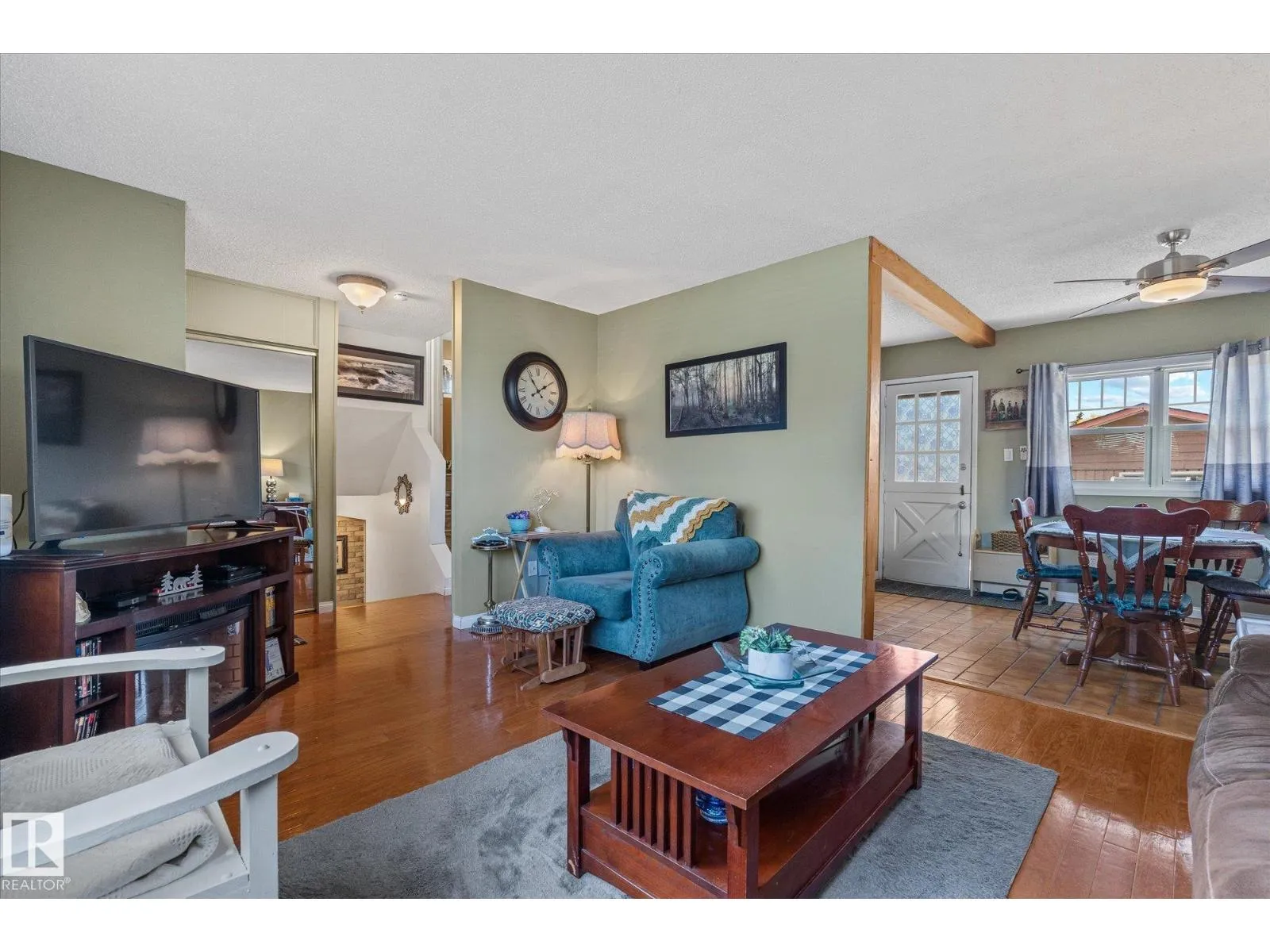 Welcome to Brookside Crescent â an ideal location for families, just a 10-minute walk from six schools, multiple playgrounds, and Spruce Groveâs popular Central Park featuring new bike trails, a skate park, BMX track, large playground, splash park, and the Grant Fuhr Arena. This cozy four-level split home offers a functional layout with two bedrooms and a full four-piece bath upstairs. The main floor features a bright living room with hardwood floors, a dining area, and a well-laid-out kitchen with access to the west-facing fenced backyard and oversized double garage. The lower third level includes two additional bedrooms and a convenient two-piece bath, while the fourth level offers a spacious family room, laundry and utility area, and plenty of storage. Warm, welcoming, and close to everything, this home combines comfort and convenience in one of Spruce Groveâs most family-friendly neighborhoods. (id:27476)