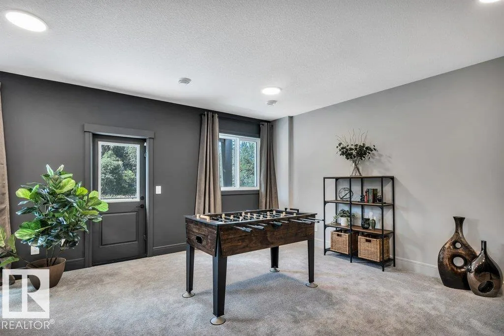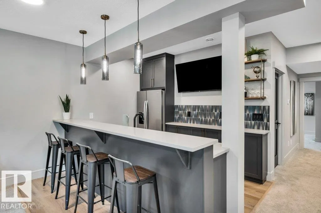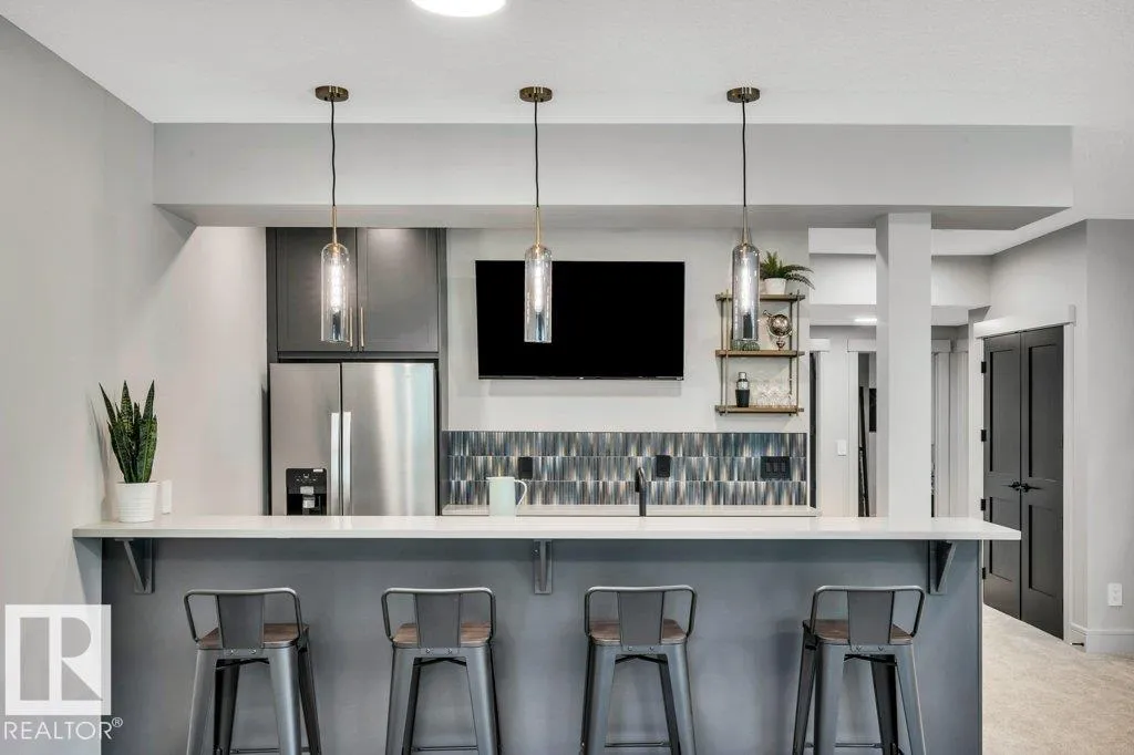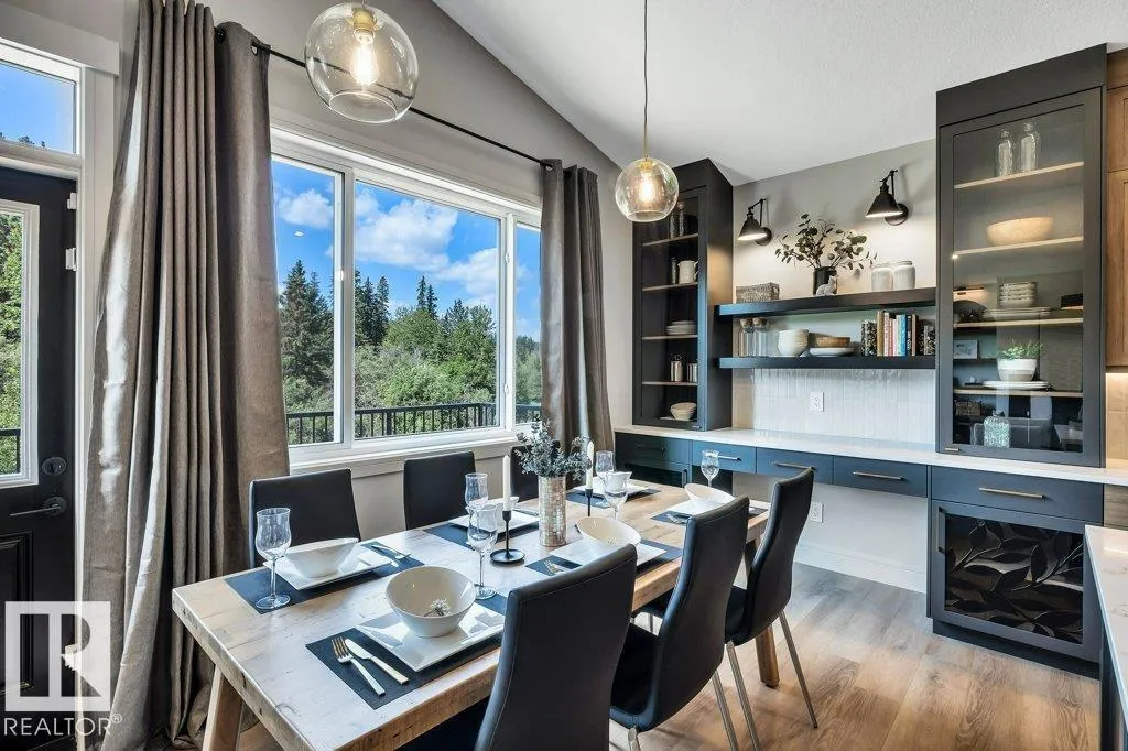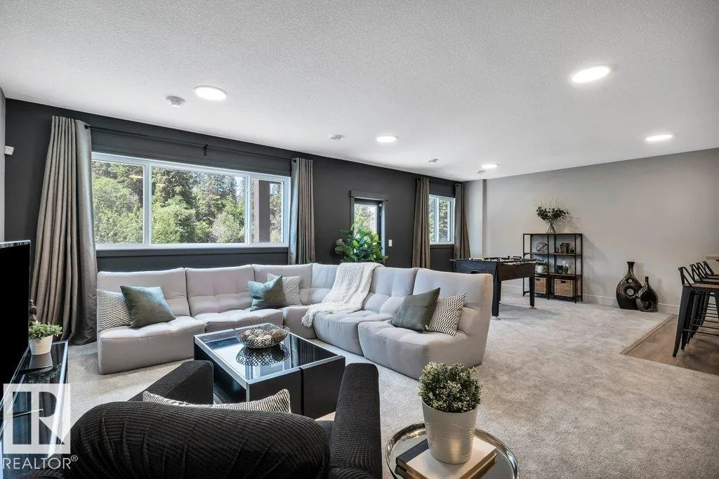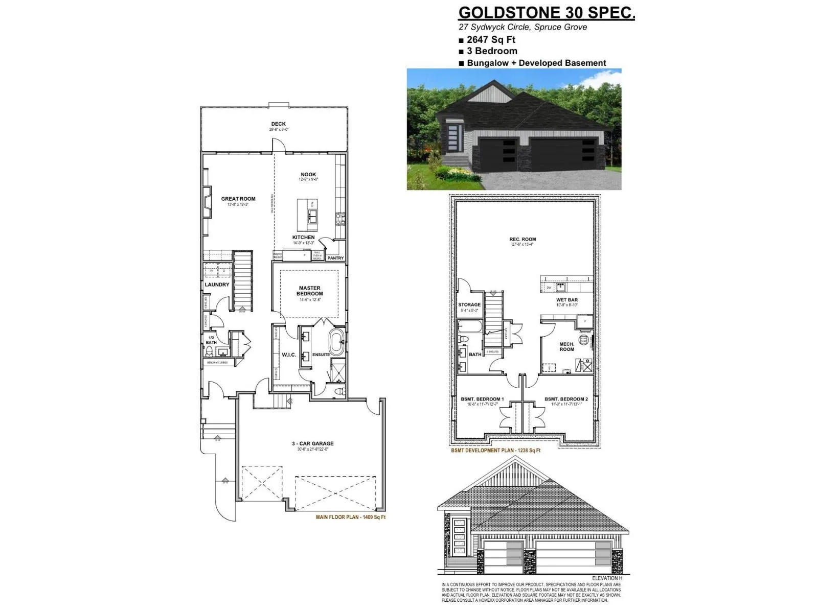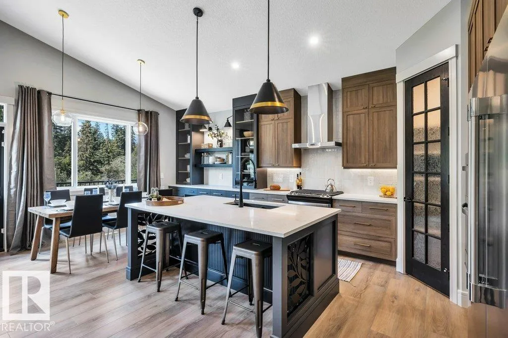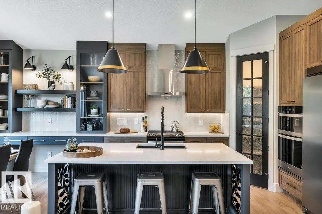 Luxury awaits in this stunning bungalow built by Homexx Corporation. The Goldstone floor plan welcomes you with a grand entryway, vaulted ceilings, and an open-concept layout ideal for entertaining. The chef-inspired kitchen overlooks the spacious living area with custom built-ins, a dry bar, and a cozy gas fireplace. The primary suite offers a large walk-through closet and a spa-like five-piece ensuite with soaker tub and separate shower. Completing the main floor are a convenient laundry room with extra shelving and a stylish two-piece bath. A beautiful staircase leads to the lower level, featuring a large family room with wet bar, two bedrooms, a four-piece bath, and ample storage. Enjoy the private backyard setting backing onto trees with a large deck, perfect for relaxing or entertaining. Additional features include a triple-car garage, 200 amp service, custom milled interior finish, quartz countertops, custom cabinetry, and designer lightingâall showcasing the craftsmanship Homexx is known for. (id:27476)