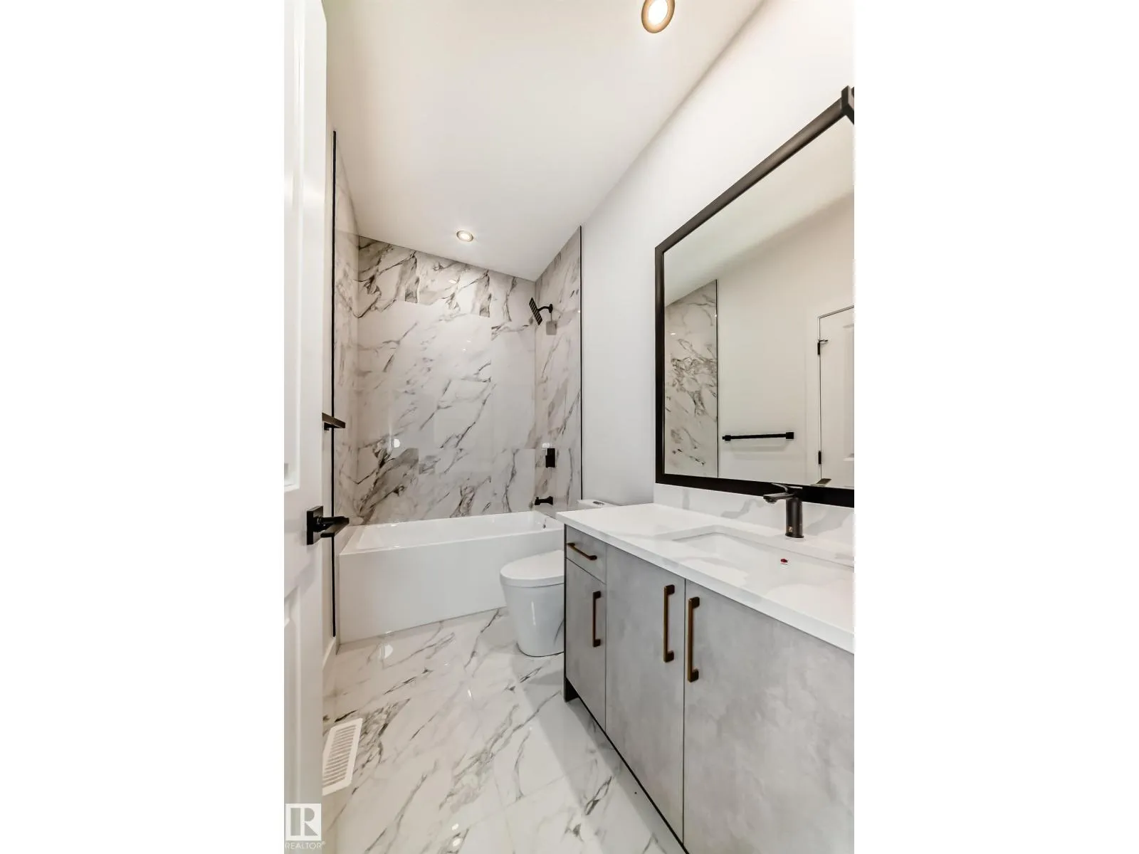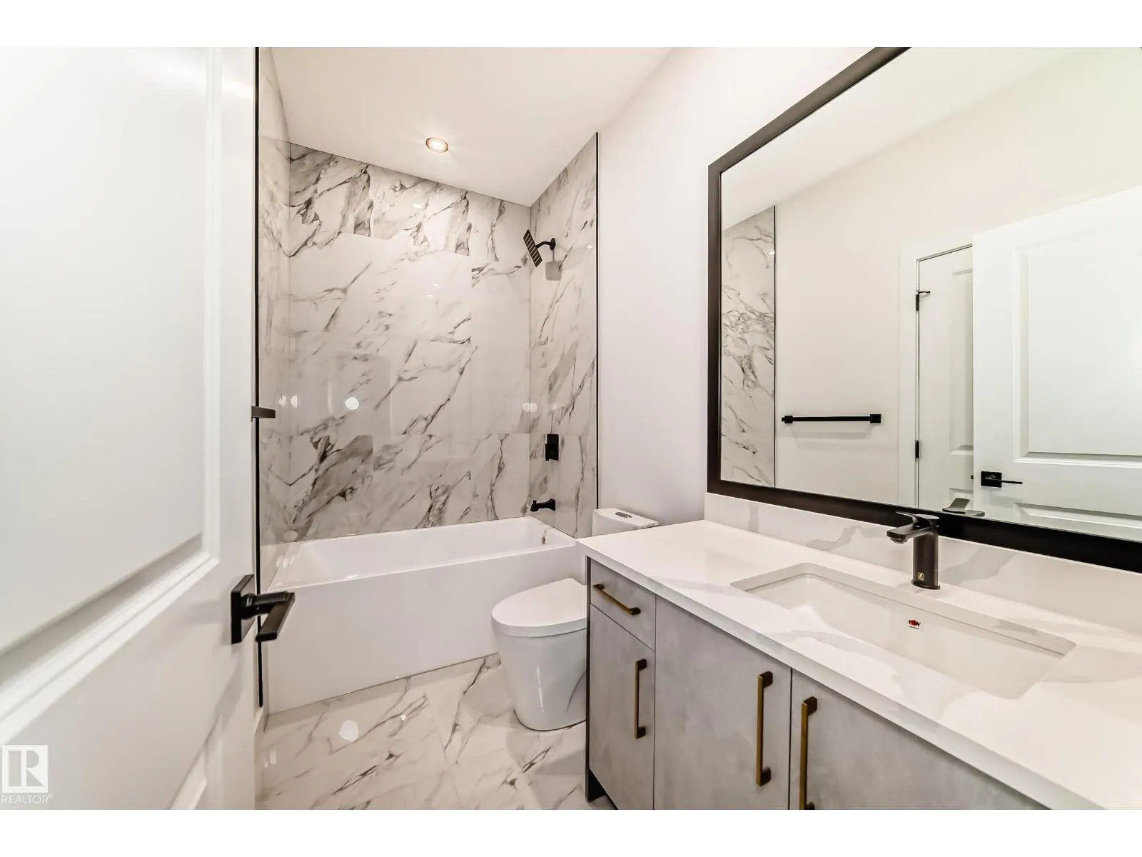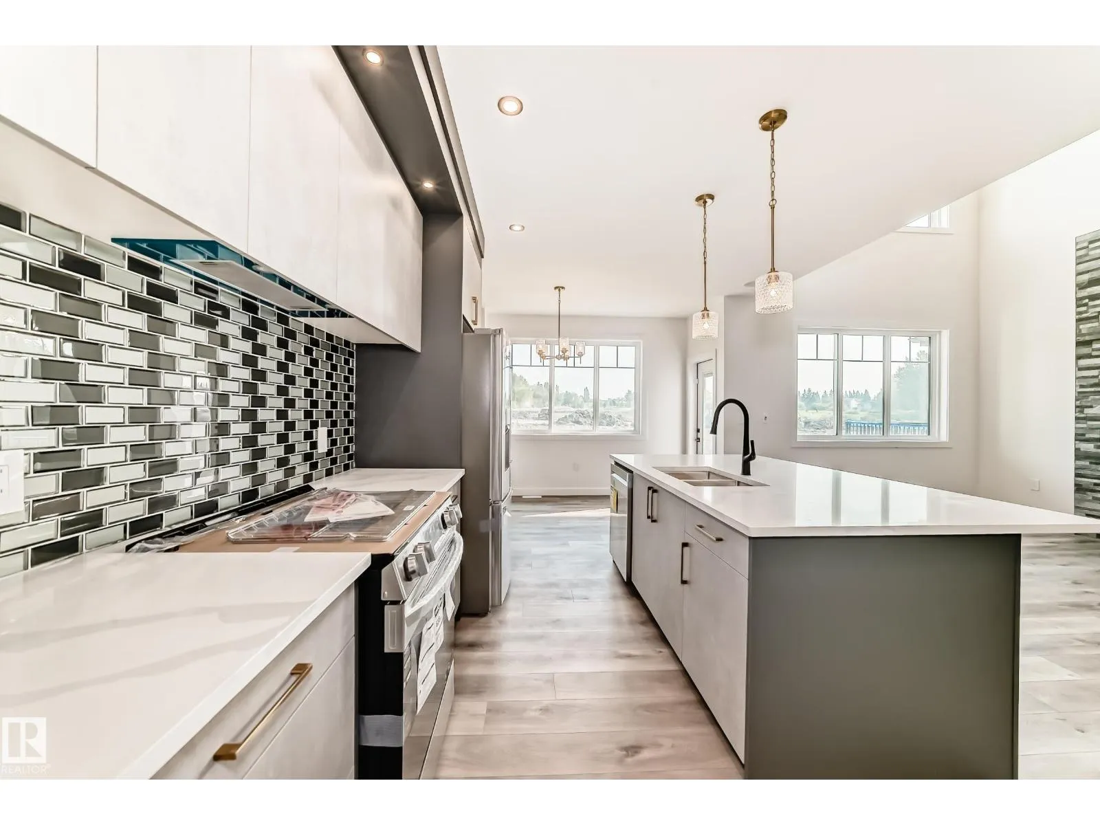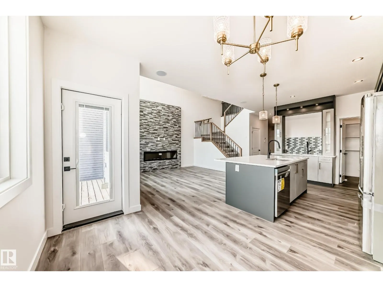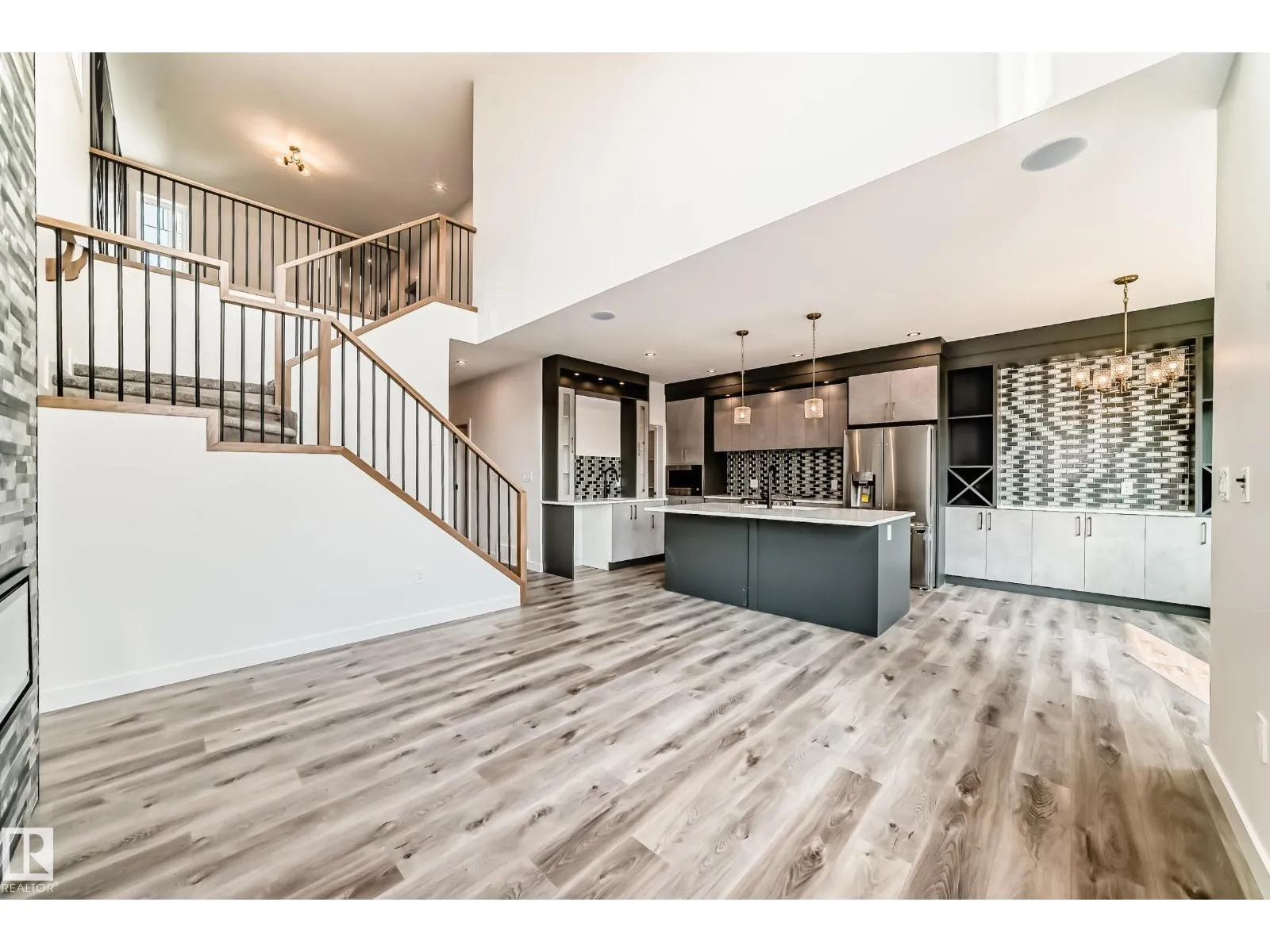 UPGRADED HOME IN THE COMMUNITY OF MCLAUGHLIN! This home boasts 2236 sq/ft with 4 bedrooms, 3 full baths, bonus room & 9ft ceilings on all three levels. Main floor offers vinyl plank flooring, bedroom/den, family room with 18ft ceiling, fireplace. Kitchen, with modern high cabinetry, quartz countertops, island, wet bar, & walk-in pantry, is made for cooking family meals and entertaining. Spacious dinning area with ample sunlight is perfect for get togethers. The 3 piece bath finishes the main level. Walk up stairs to master bedroom with 5 piece ensuite/spacious walk in closet, 2 bedrooms, full bath, laundry computer station, and bonus room. Unfinished basement with separate entrance and roughed in bathroom is waiting for creative ideas. Public transit to Edmonton, & more than 40 km of trails, your dream home home awaits. Includes:DECK/TRIPLE PANE WINDOWS/ WIRELESS SPEAKERS/ GAS HOOKUP ON DECK. (id:27476)