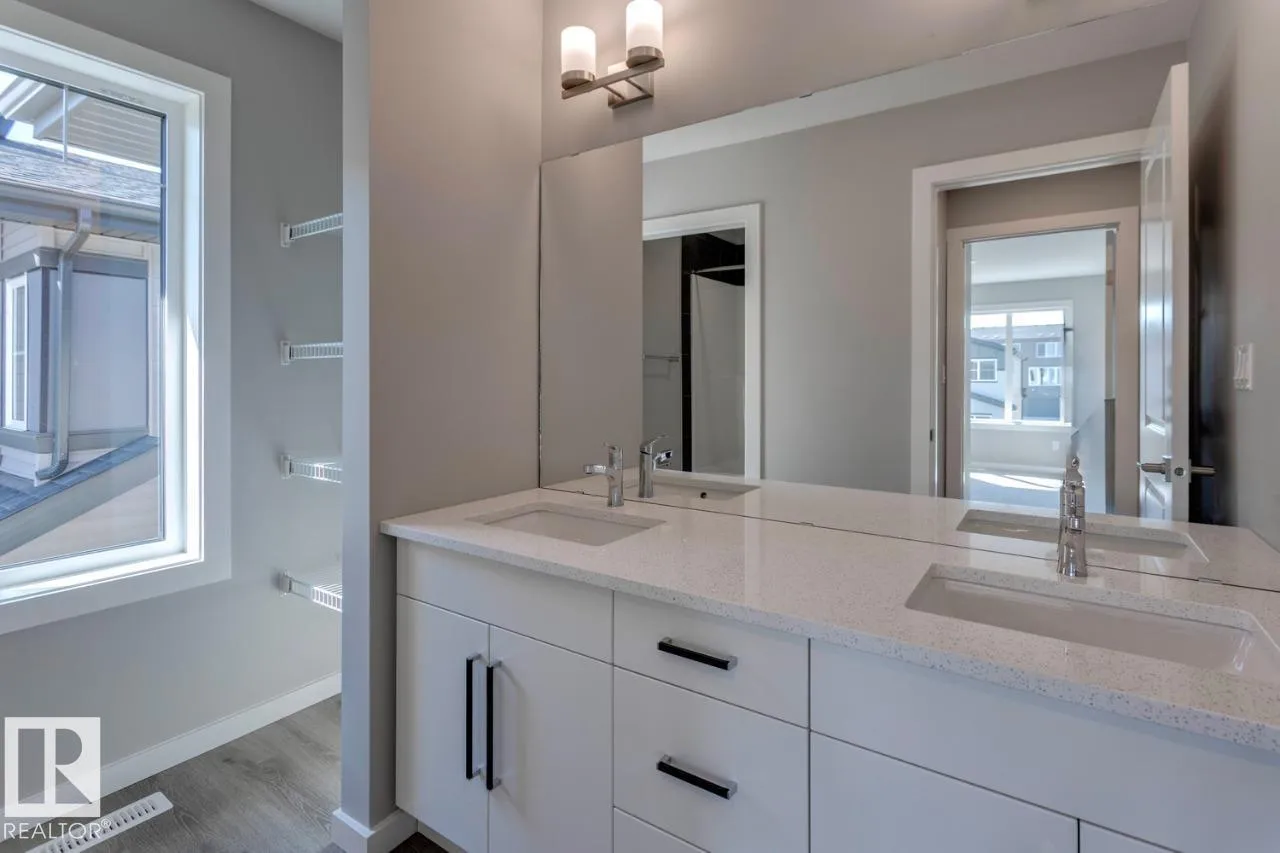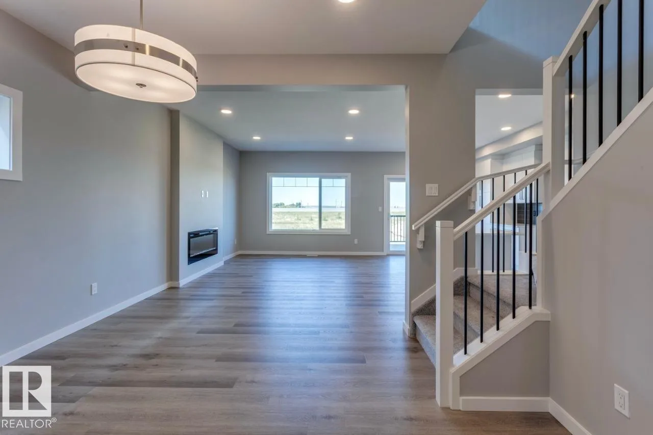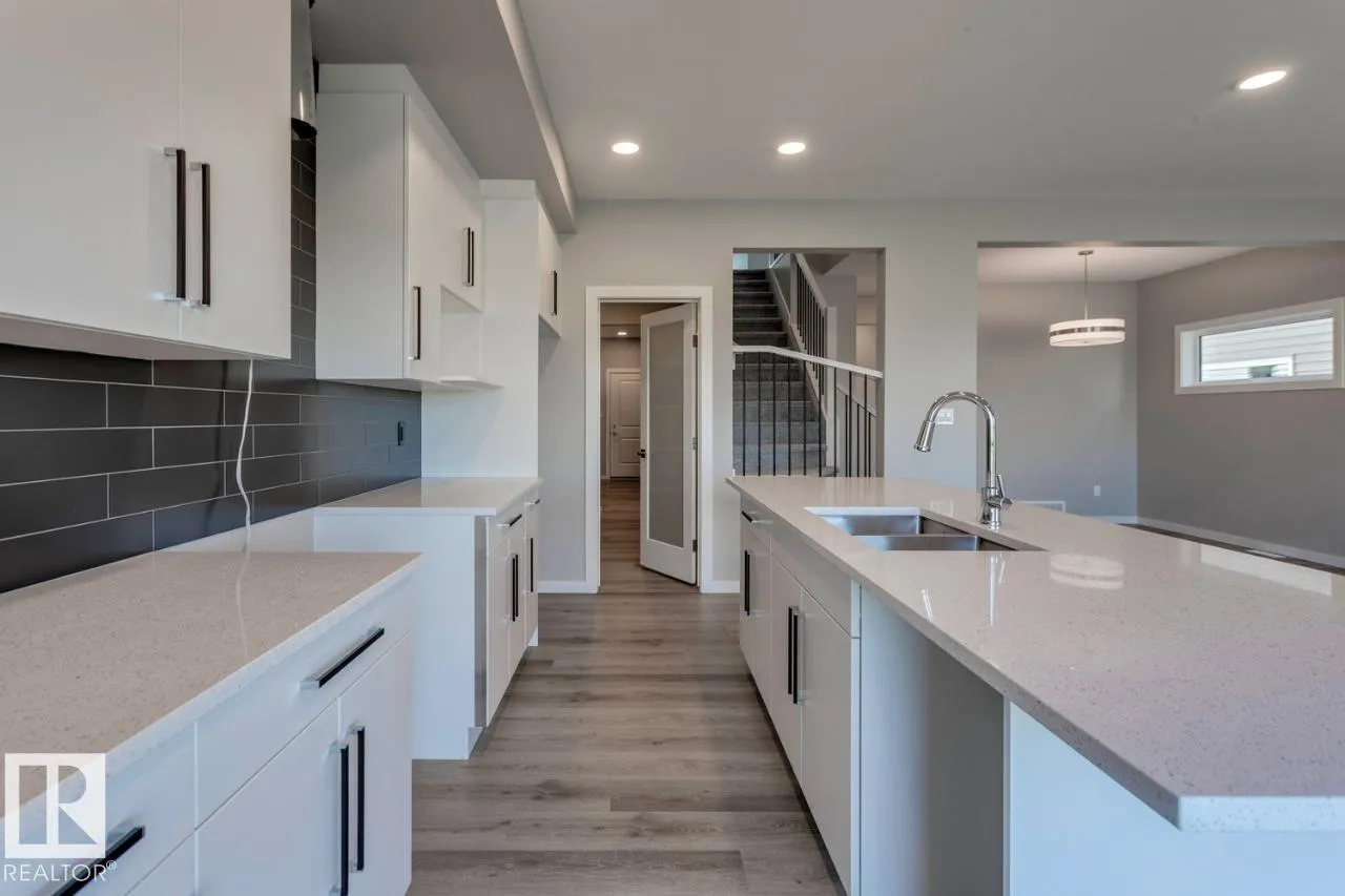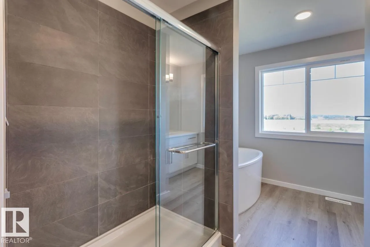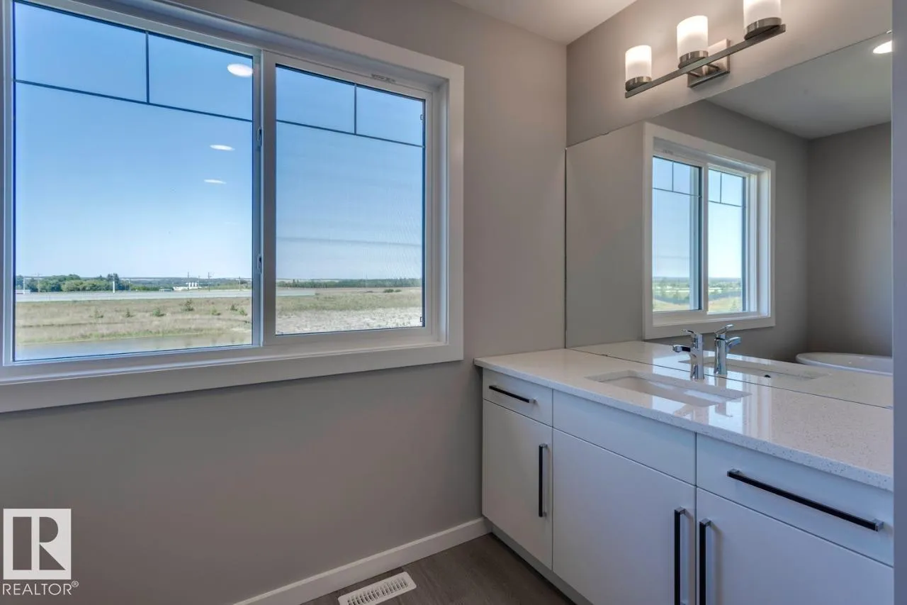 This stunning WALK-OUT home is located in an amenity-rich community, within walking distance of Spruce Grove's new Civic center and quick access to Highway 16. It offers a spacious layout with views overlooking a serene pond- NO neighbors behind you! Featuring a double front attached garage and a walk out deck. The open concept kitchen, complete with quartz counters, ample cabinetry and overlooks a cozy great room with a sleek 50 linear fireplace. Bedroom on main floor. Additional highlights include luxurious primary bedroom with This stunning WALK-OUT home is located in an amenity-rich community, within walking distance of dual vanities and a smart home system for added convenience. A double sided walk-in closet with direct access to the laundry room. Enjoy stylish finishes throughout, including luxury vinyl plank flooring and advanced stain-resistant carpet. With extra windows throughout, the home is filled with natural light, creating a bright and welcoming atmosphere in every room. (id:27476)