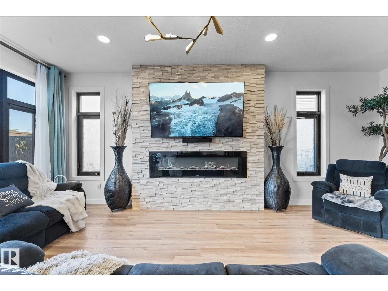 Welcome to 9 Brunwyck in Fenwyck. With almost 2800 sq ft of luxurious living space, this stunning home is perfect for the family w/4 spacious bdrms & a ton of upgrades. Custom quartz kitchen boasts floor-to-ceiling 2-tone cabinetry, under-cabinet lighting, single-level waterfall island, premium vinyl flooring, walk-through pantry, black SS appliances, soft-close drawers, & beautiful mosaic backsplash. Stunning stone-surround fireplace in LR. Dining area provides access to spacious deck w/glass railings. On main floor, you'll find a grand entrance, half bath, & 8-ft doors that add to overall appeal. Upstairs, there are 3 generous sized bdrms, bonus rm, office space & laundry rm. King-sized primary has luxurious ensuite w/standalone tub & custom shower. Fully developed bsmt has fully equipped kitchenette, bdrm & spacious area for family time. Triple-pane windows, surround sound throughout, stair lighting, garage w/epoxy flooring & drain, beautiful landscaping, hot tub & gazebo, & A/C. It wonât last long! (id:27476)